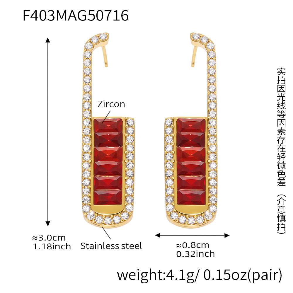 B廠【F403】不鏽鋼長方形耳石漸層綠滿鑽耳環 18k金時尚搭搭珠寶飾品 25.07-4