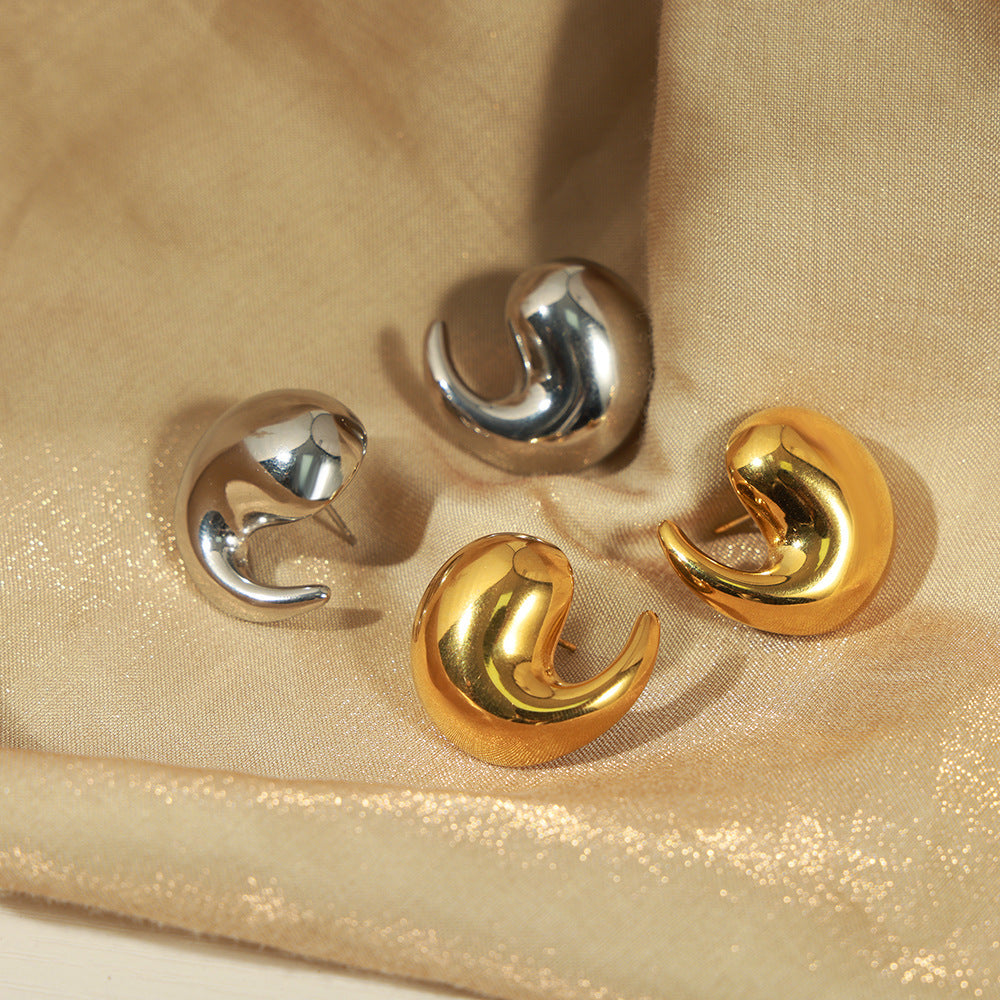 B廠【F411】高級設計感胖乎乎水滴耳環鍍18k金質感亮面耳扣時尚百搭幾何耳飾 24.01-2