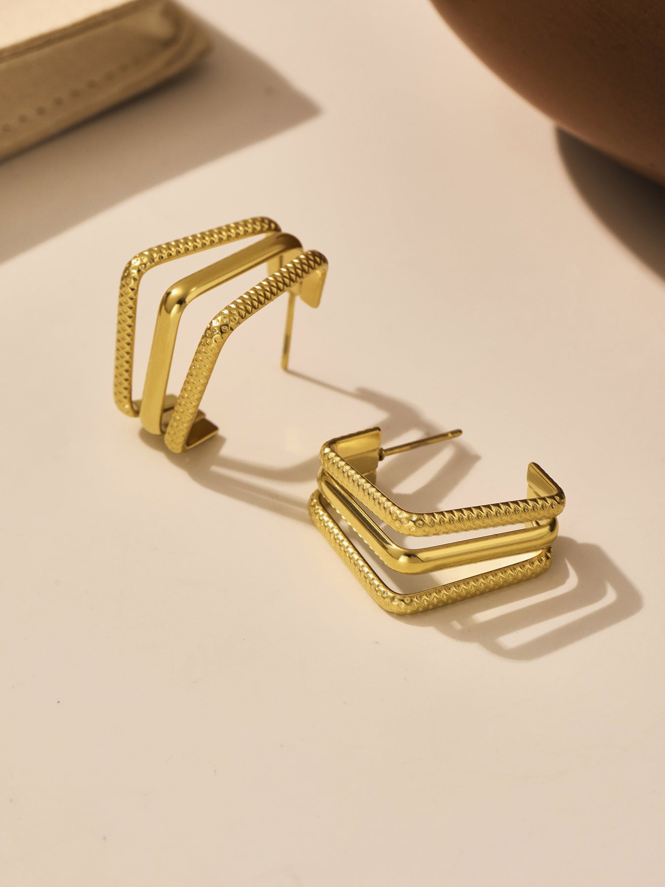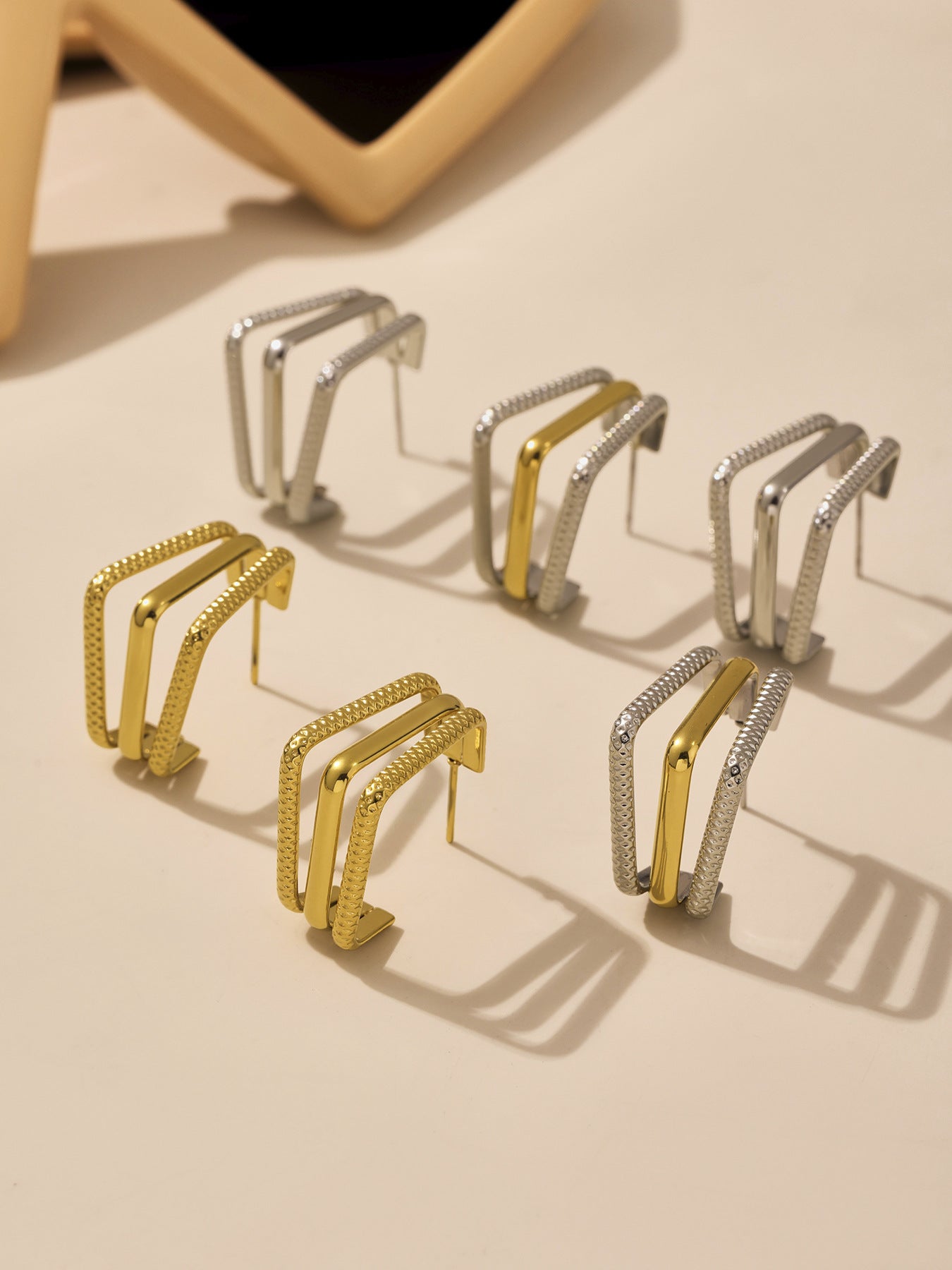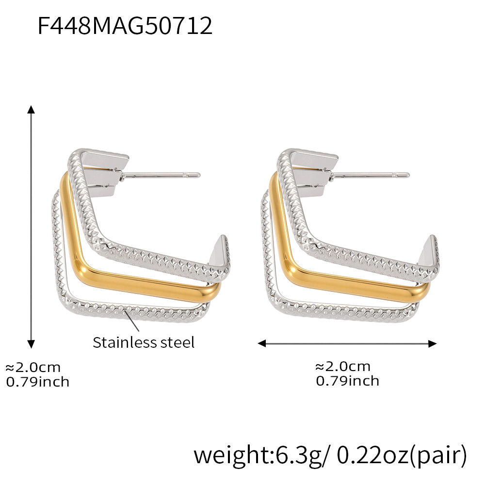 B廠【F438】不鏽鋼幾何C型三層拼色耳環時尚百搭個性氣質鍍18k真金耳飾 25.07-3