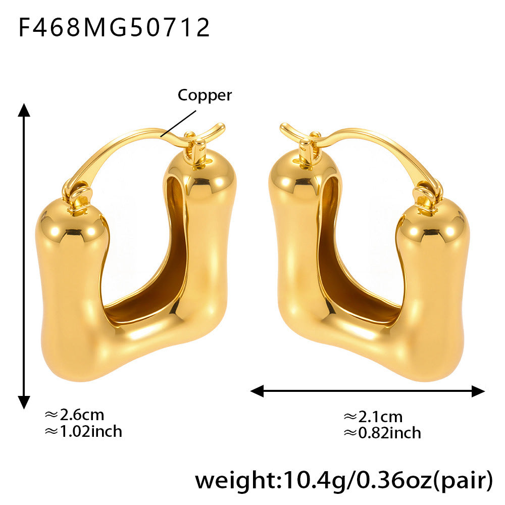 B廠【F468】銅材質幾何U型空心耳環時尚百搭個性氣質首飾鍍18k真金耳飾 25.07-3