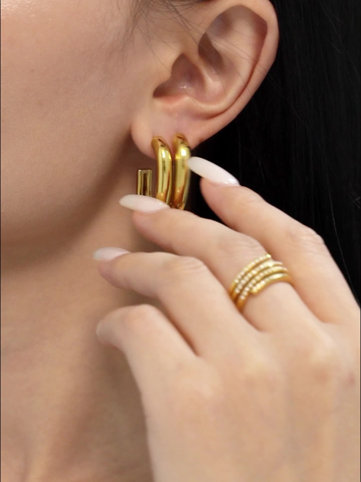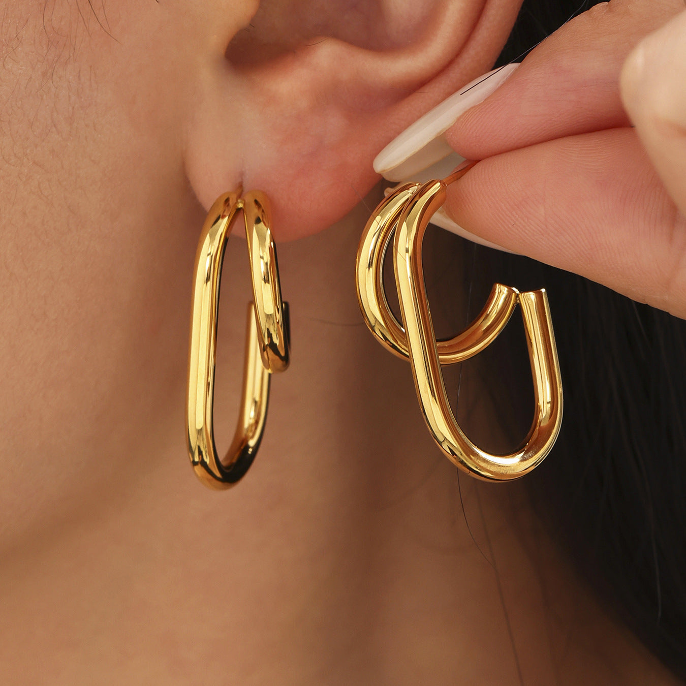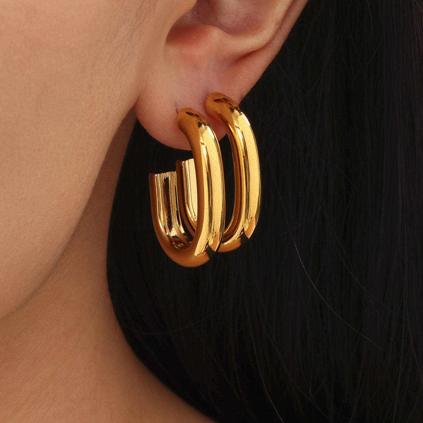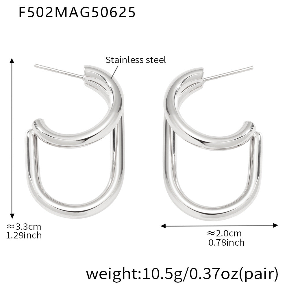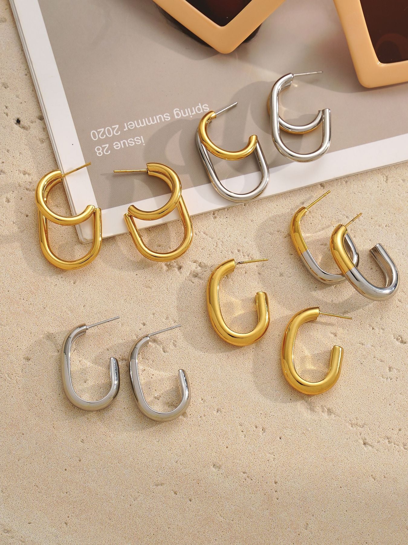 B廠【F502】歐美熱銷飾品不鏽鋼雙色間電C型耳環時尚精緻女神耳環保色 25.07-1
