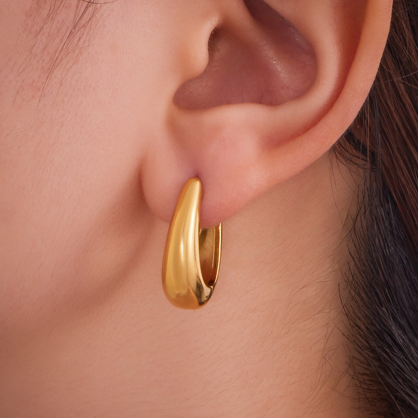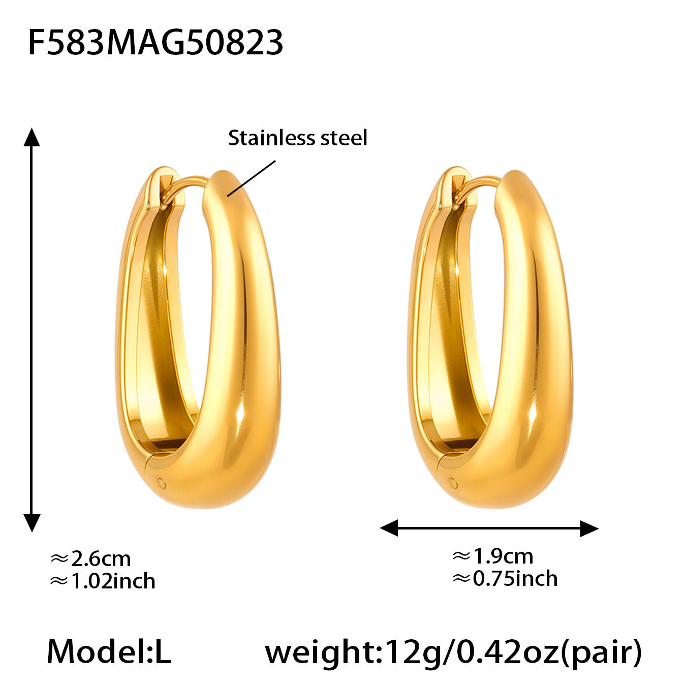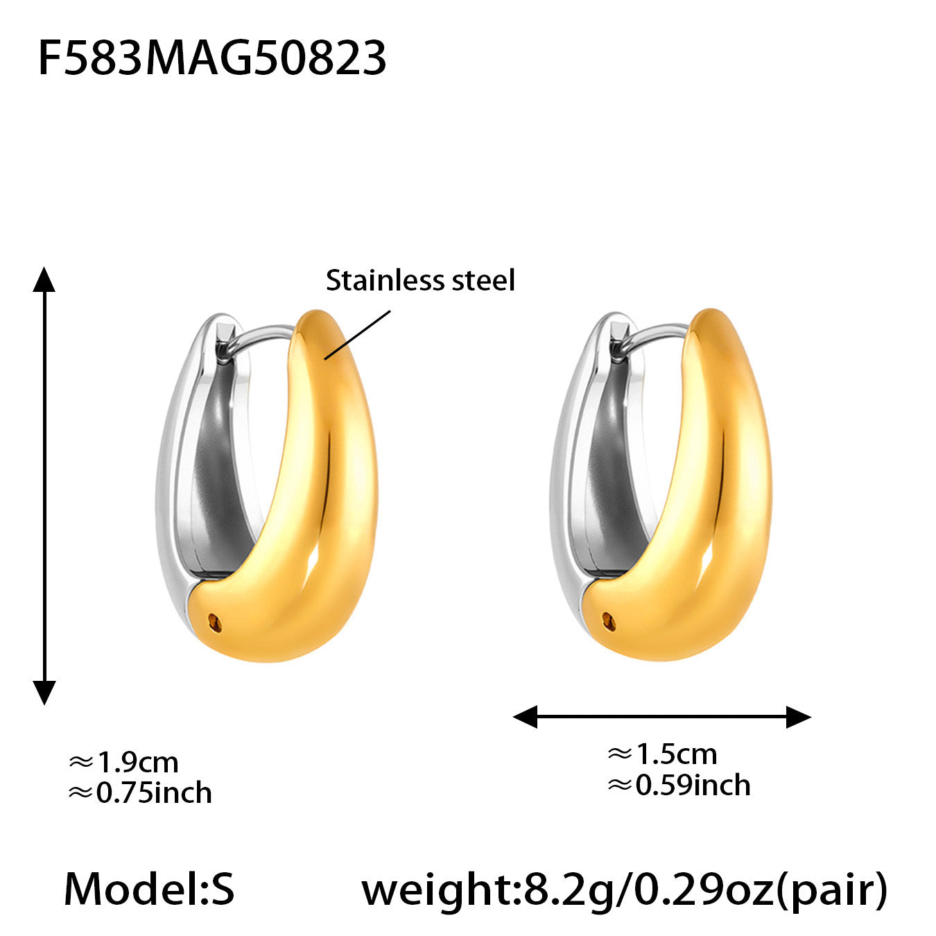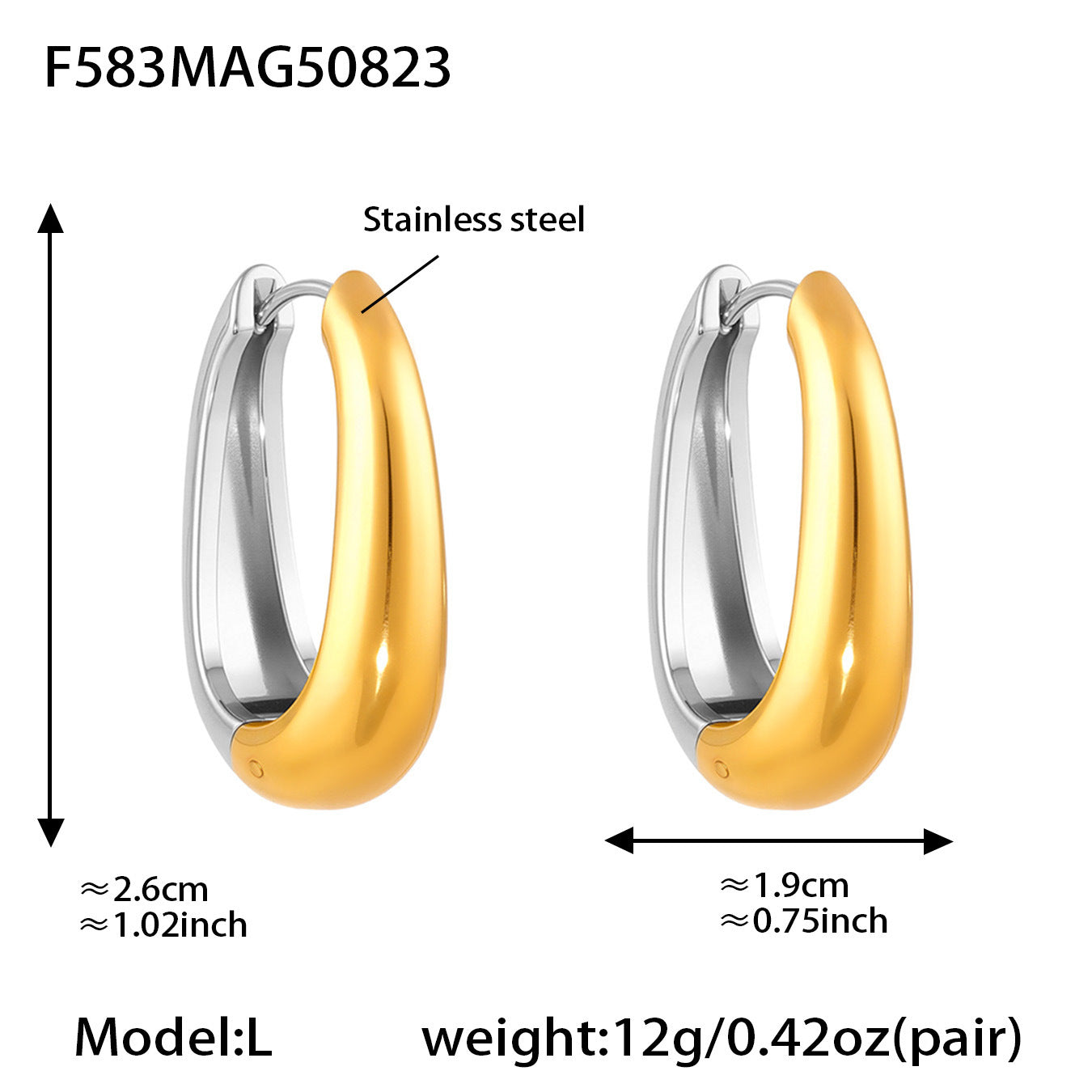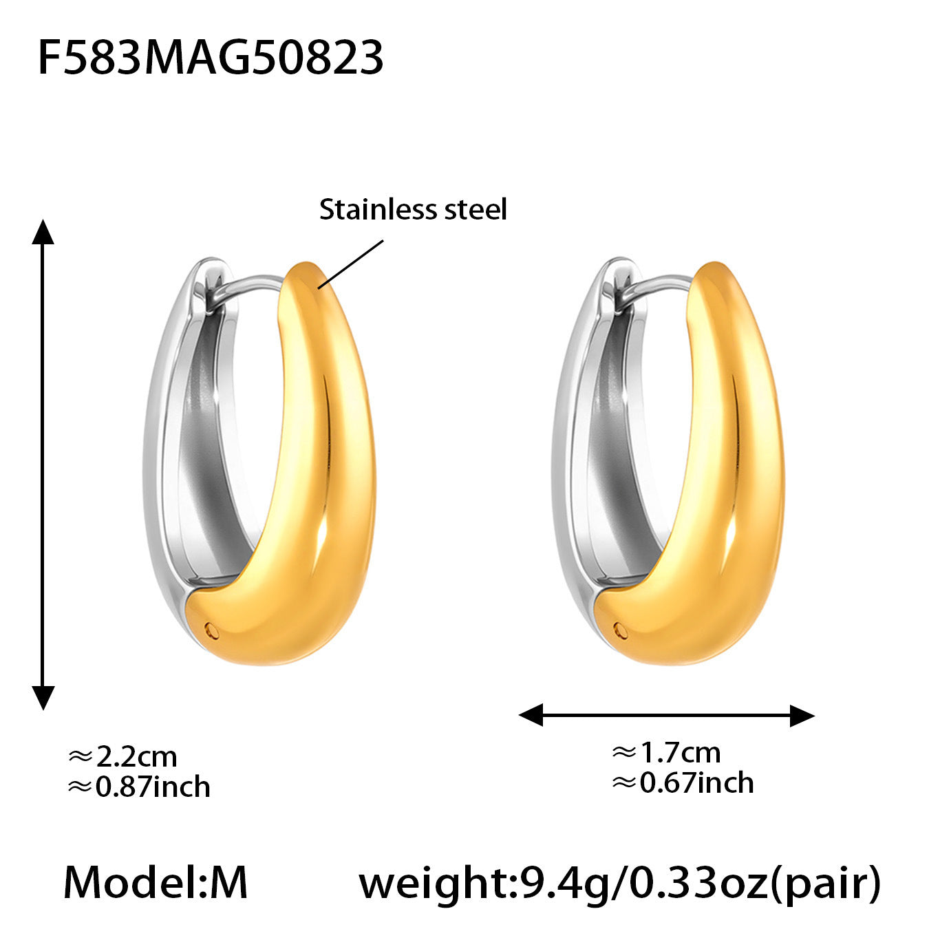 B廠【F583】精拋卡扣U型雙色間電耳環不鏽鋼鍍18k真金耳環歐美百搭新款 25.08-5
