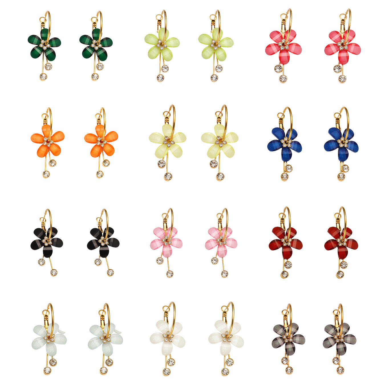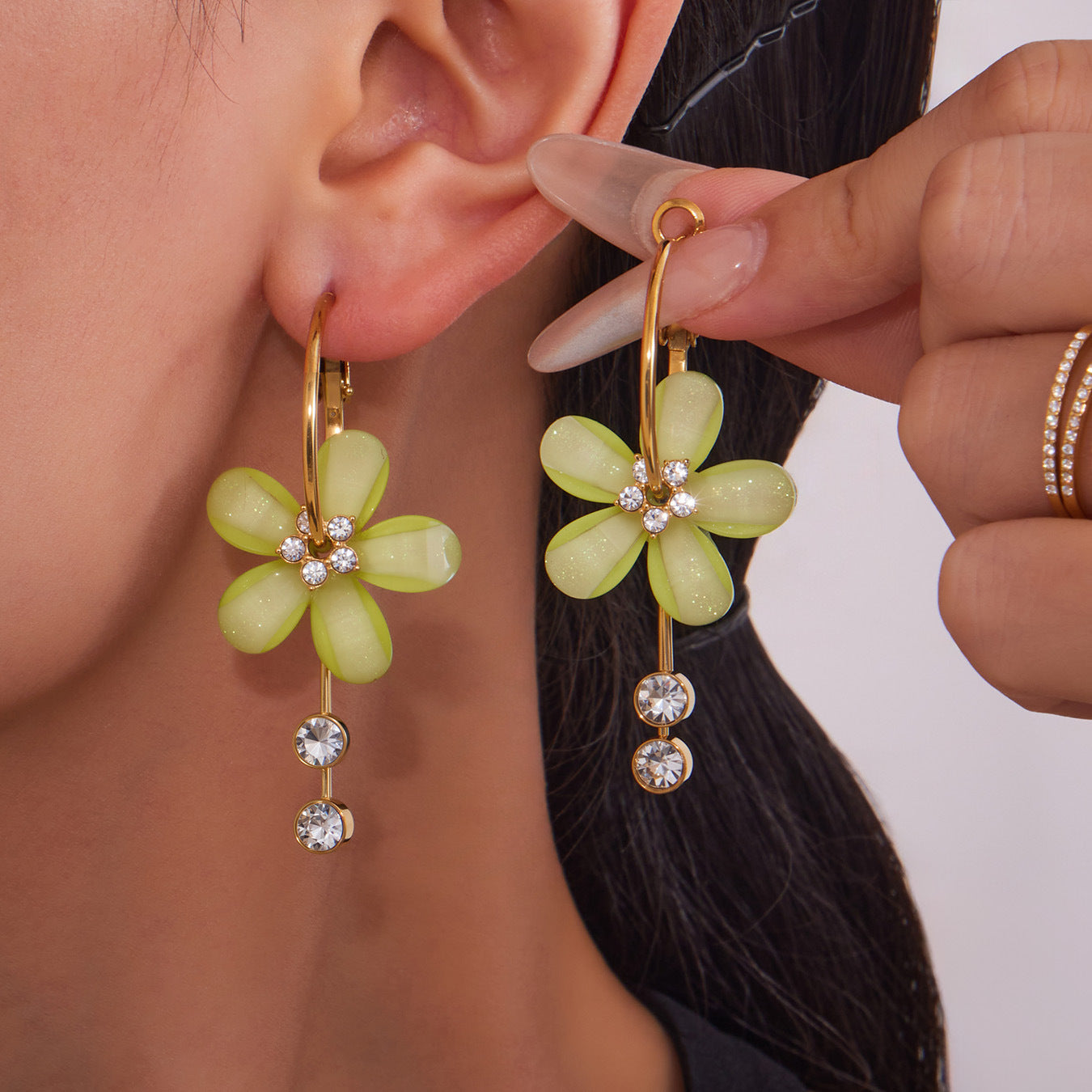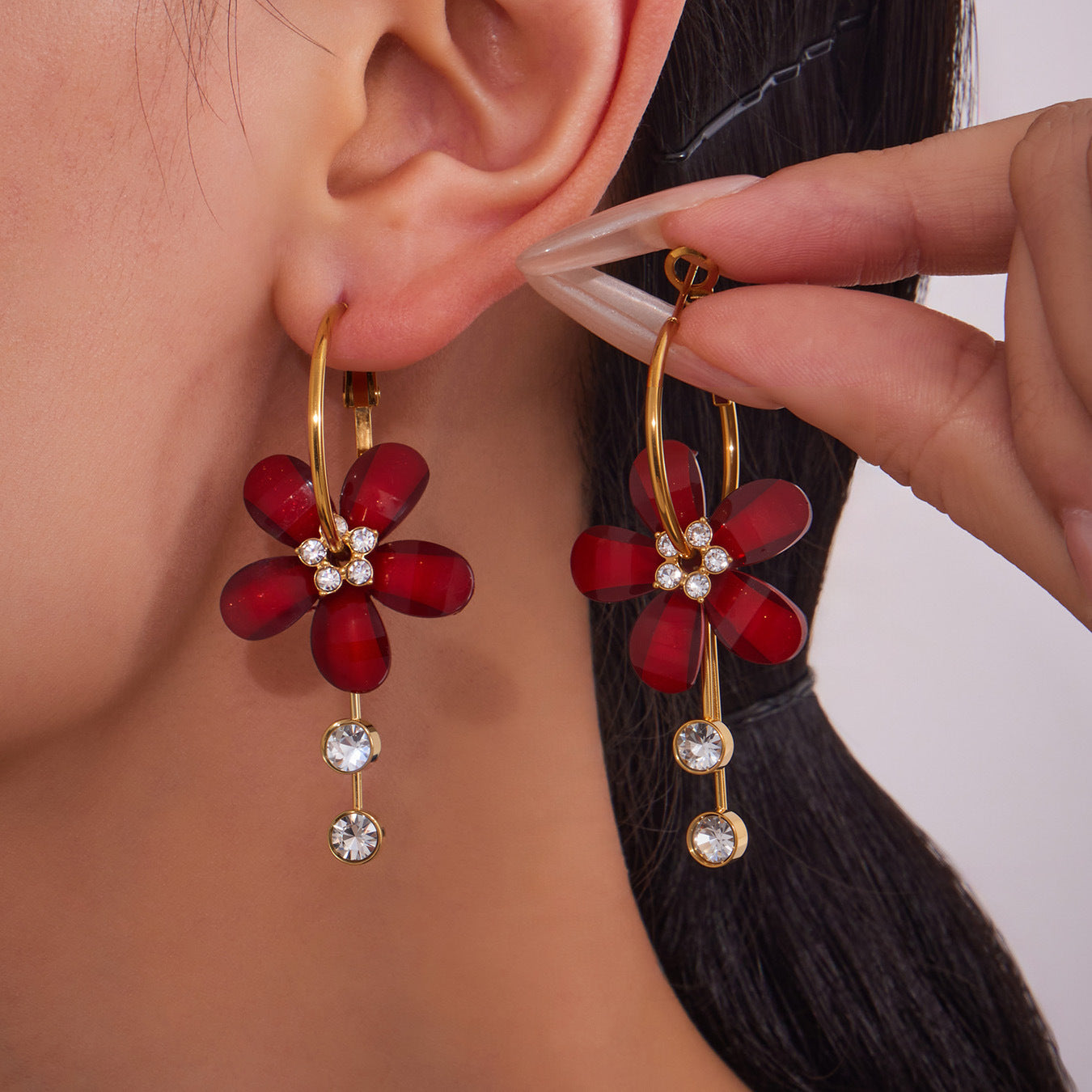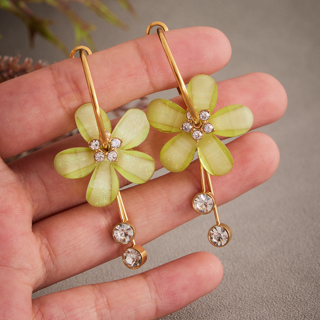 B廠【F607】超仙甜美氣質花朵帶鑽流蘇耳環不鏽鋼飾品鍍18k真金不掉色 25.09-1