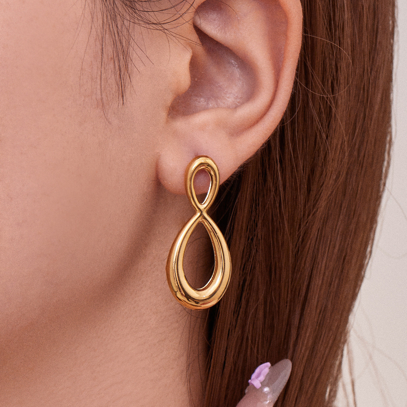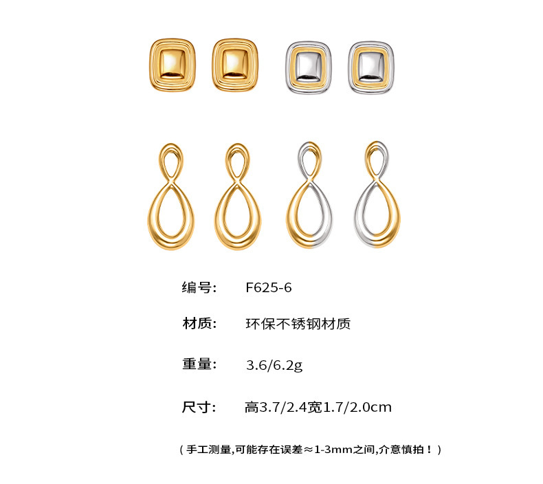 B廠【F625】跨境新款不鏽鋼空心8子耳環ins小眾設計耳環鍍18k金不掉色 25.11-1
