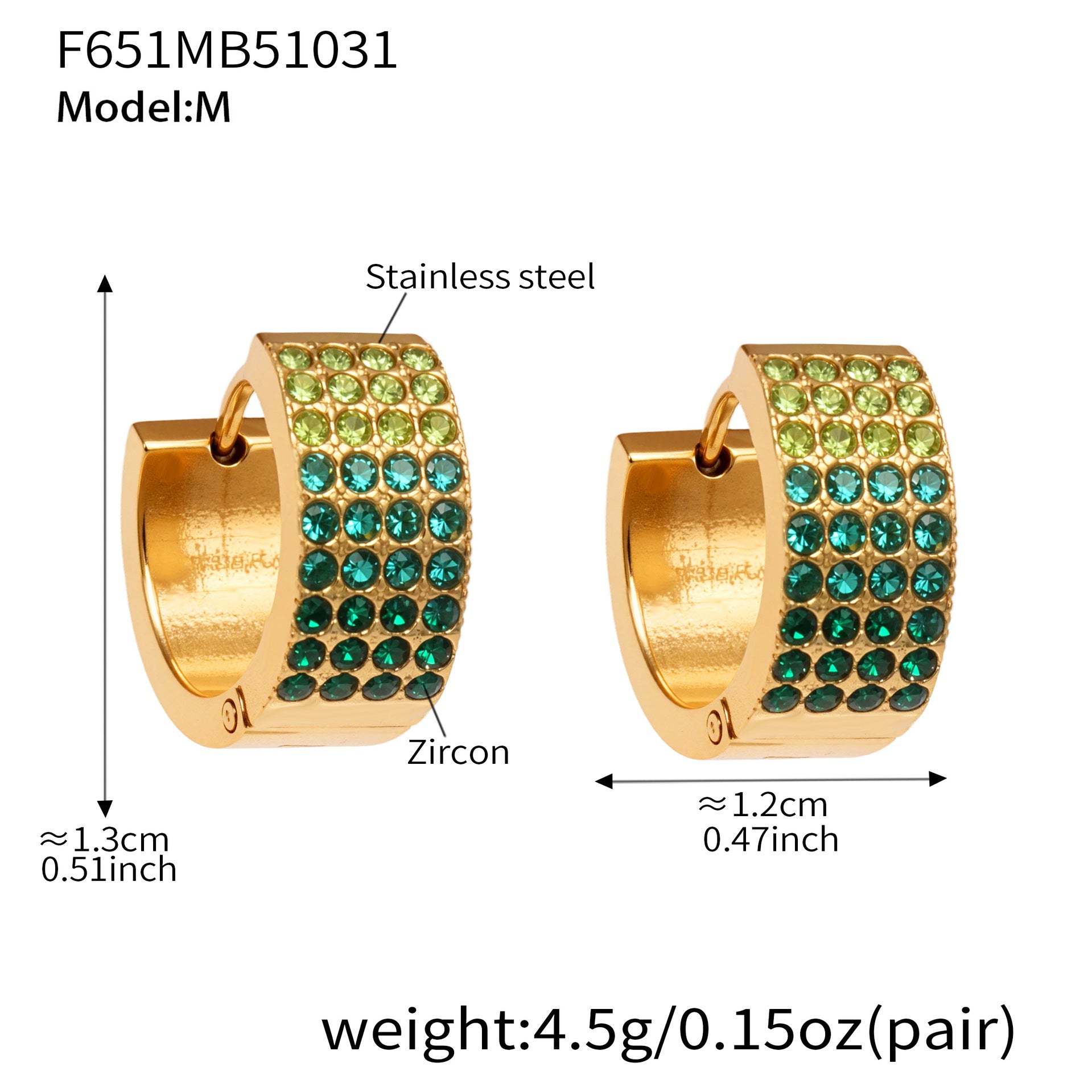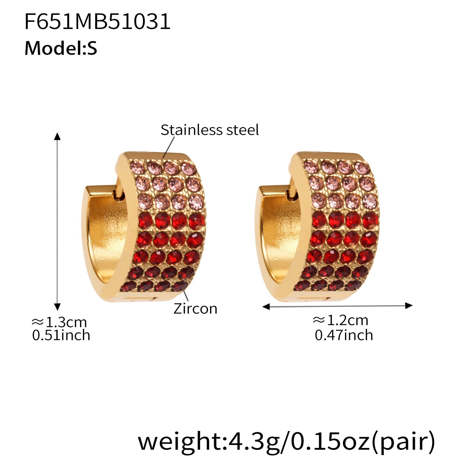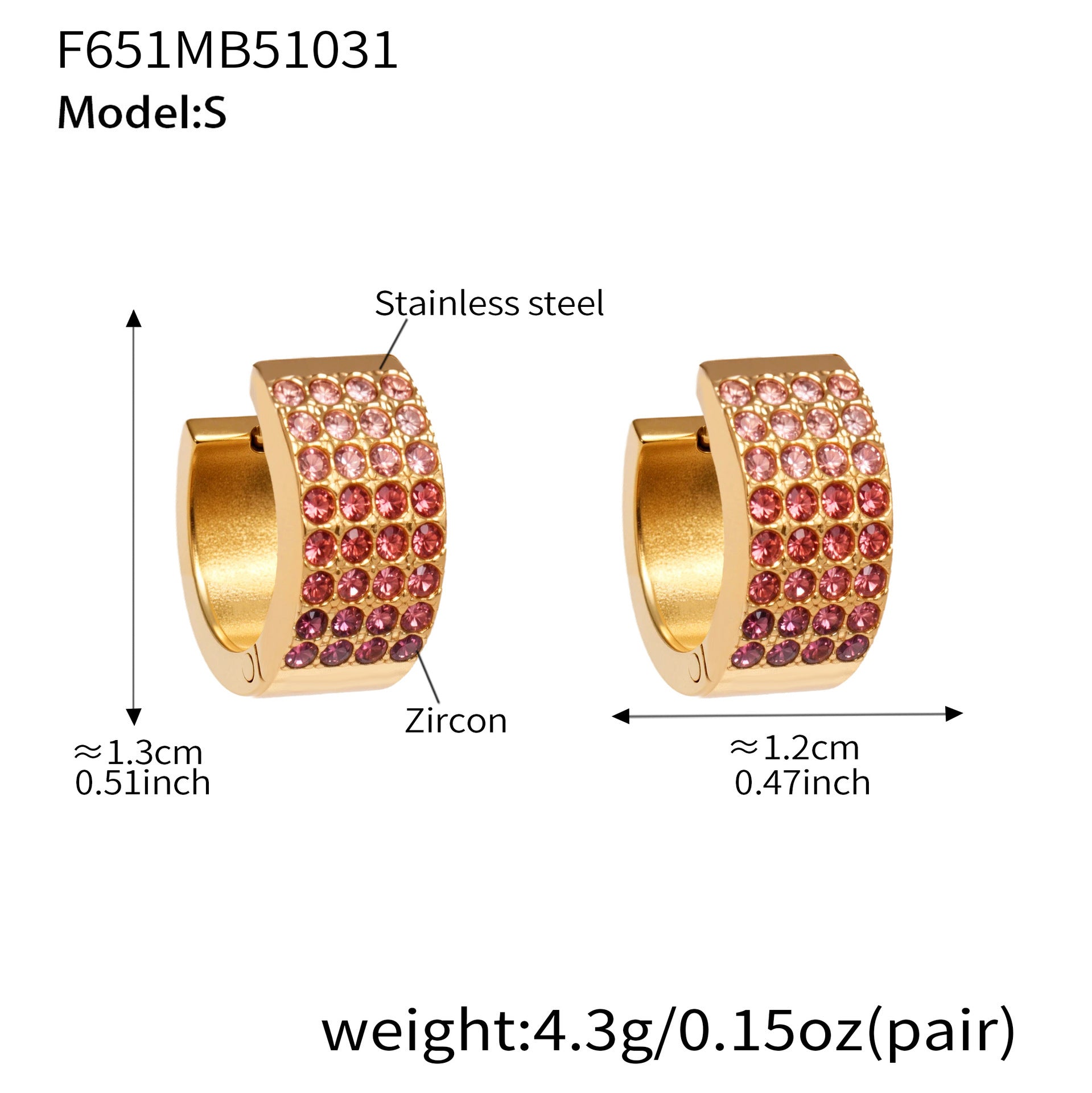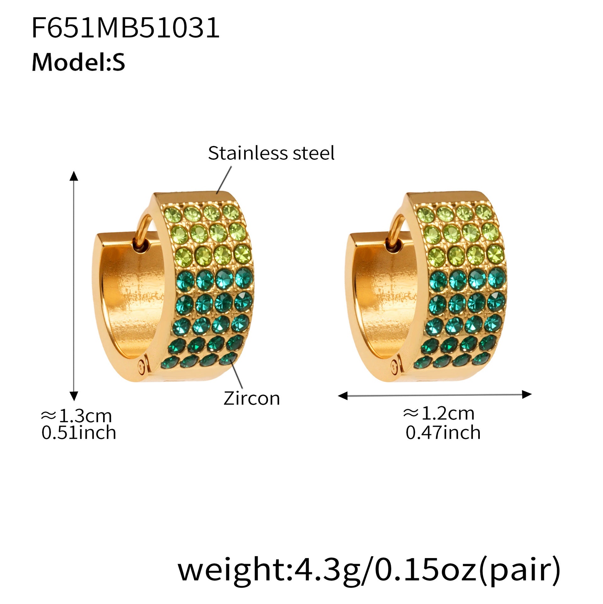 B廠【F651】彩鑽四排鋯石精緻卡扣耳環不鏽鋼鍍18k金時尚百搭個性耳飾 25.11-1