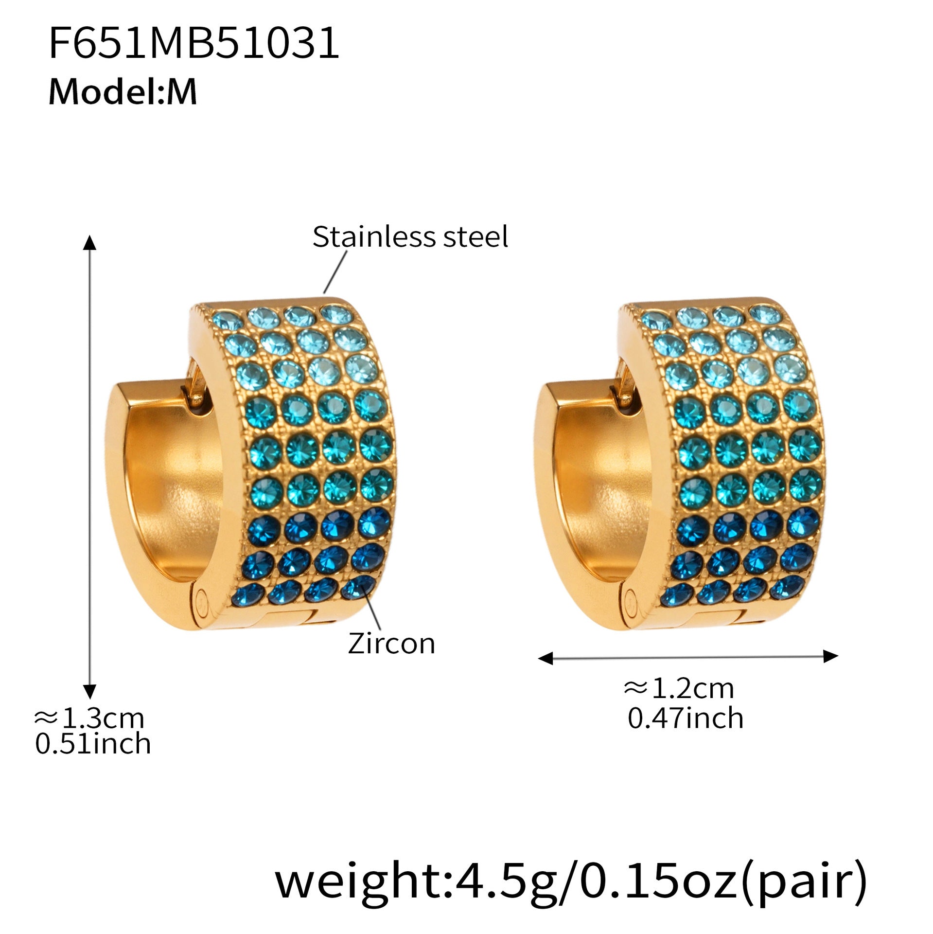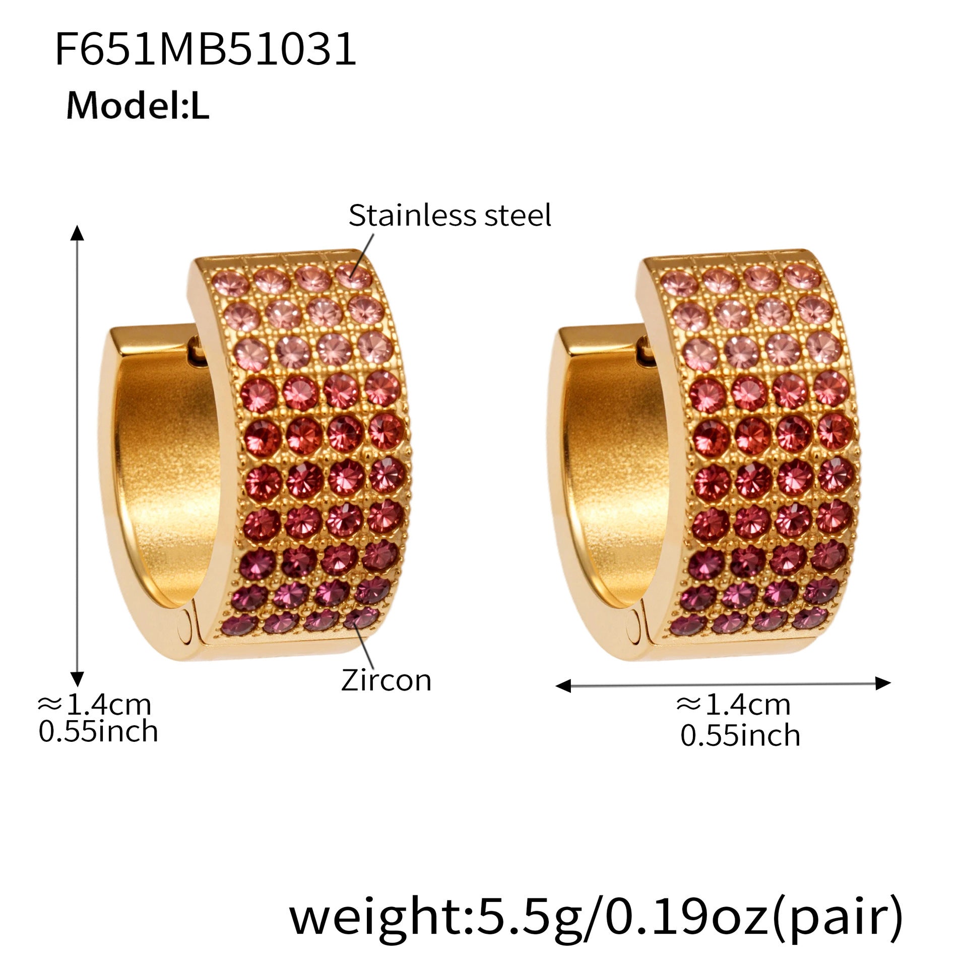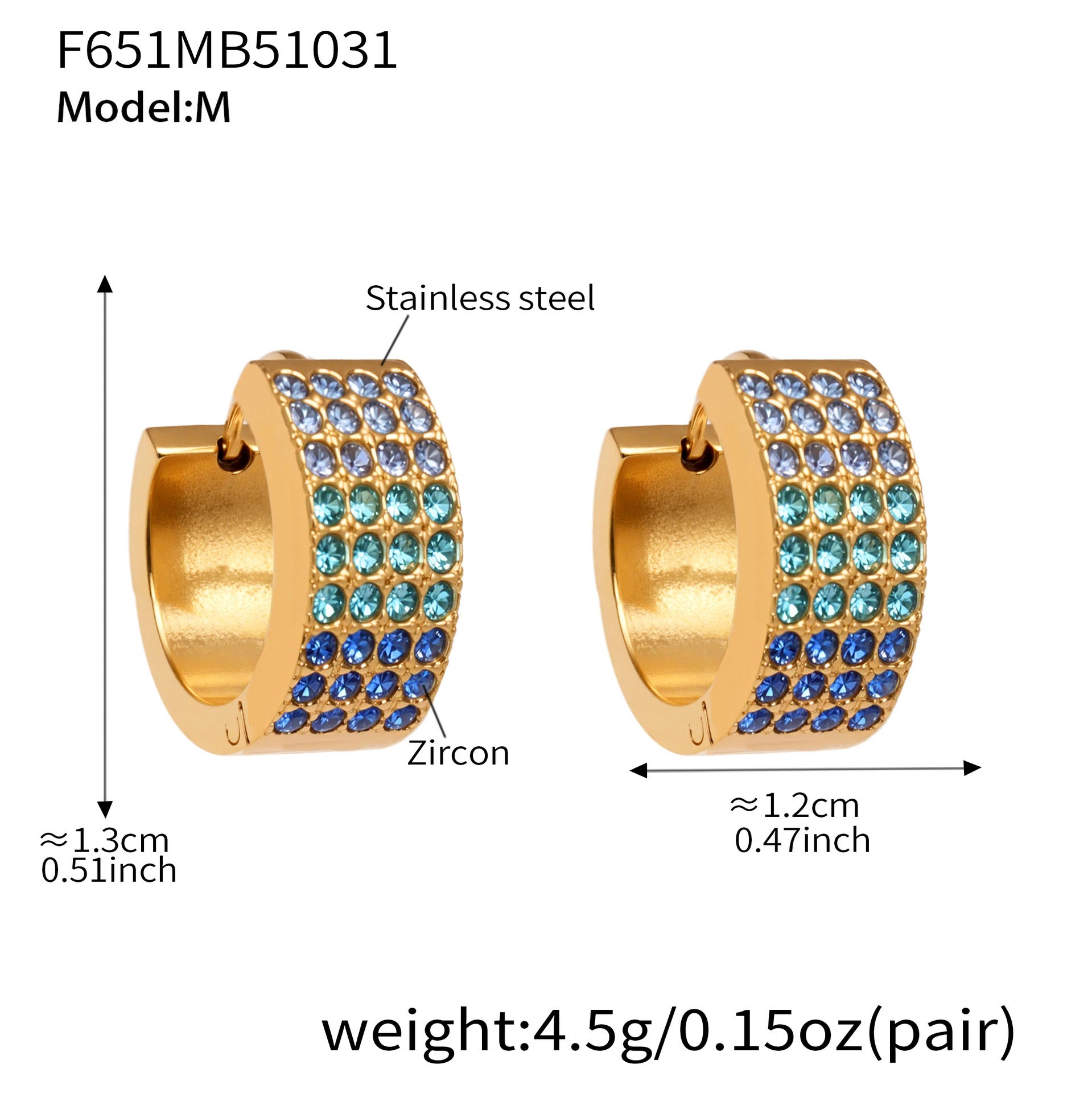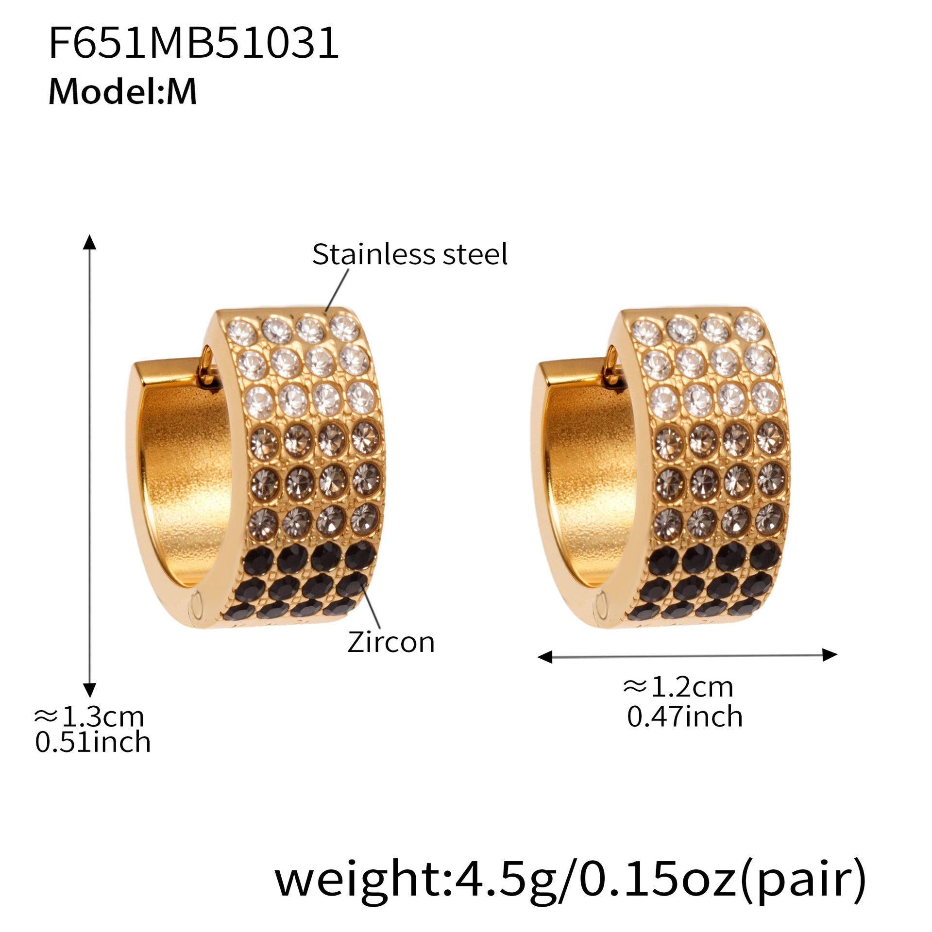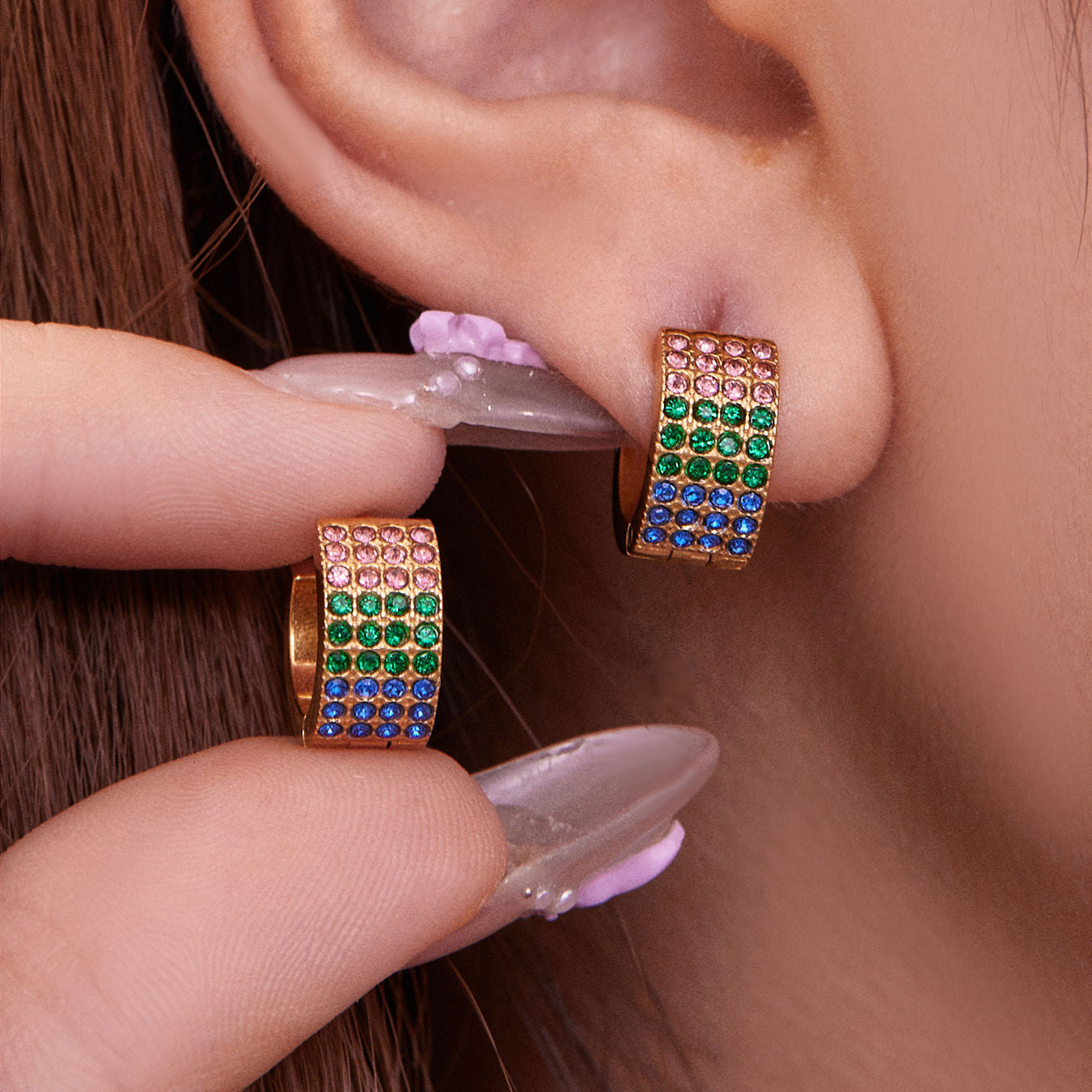 B廠【F651】彩鑽四排鋯石精緻卡扣耳環不鏽鋼鍍18k金時尚百搭個性耳飾 25.11-1