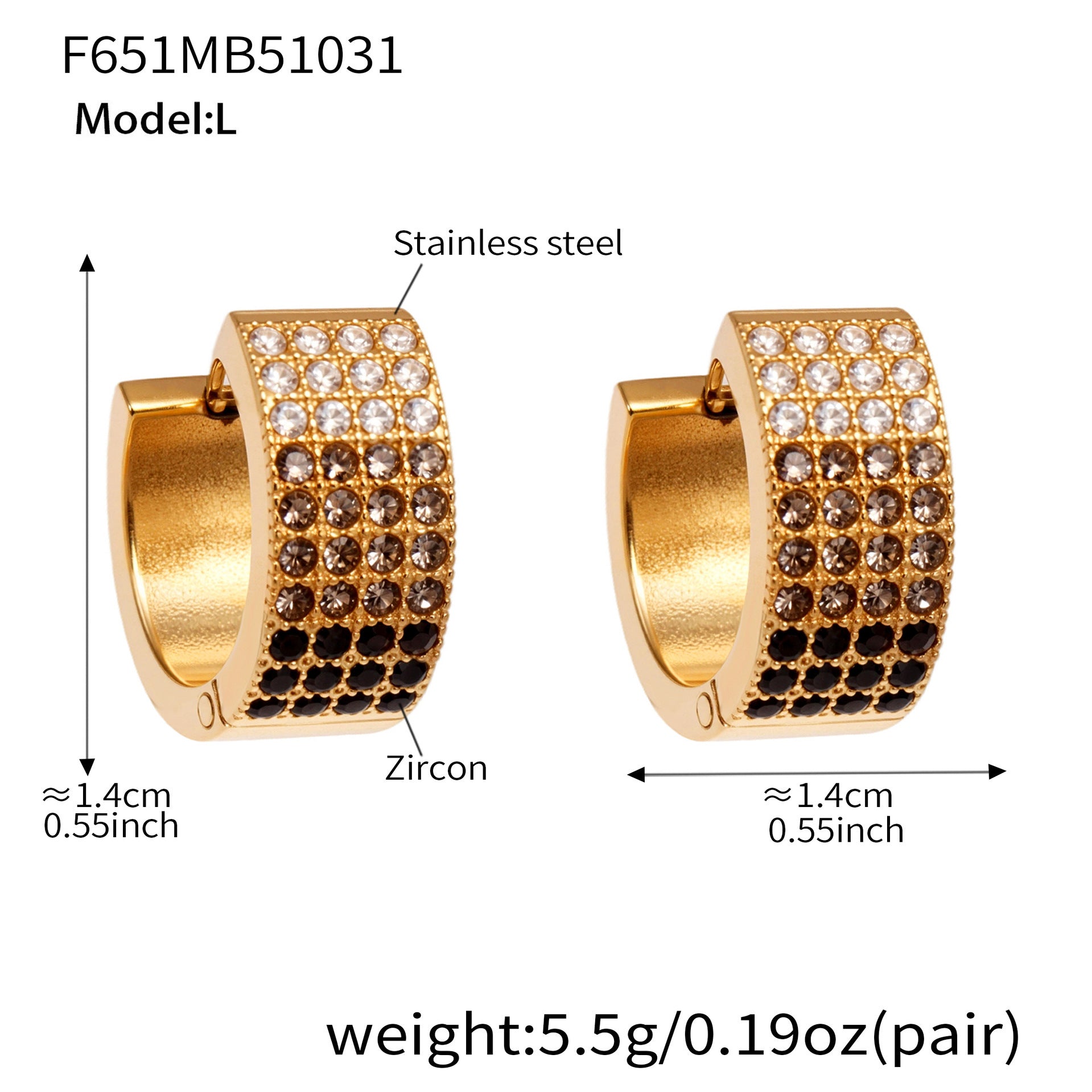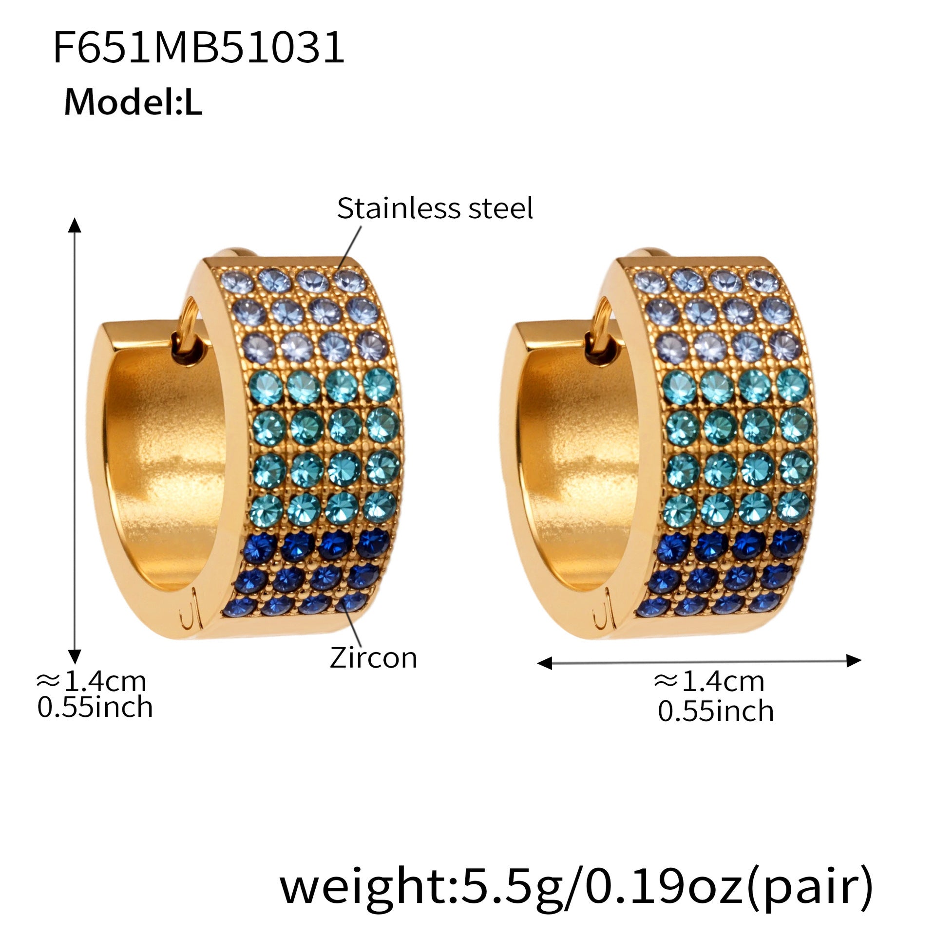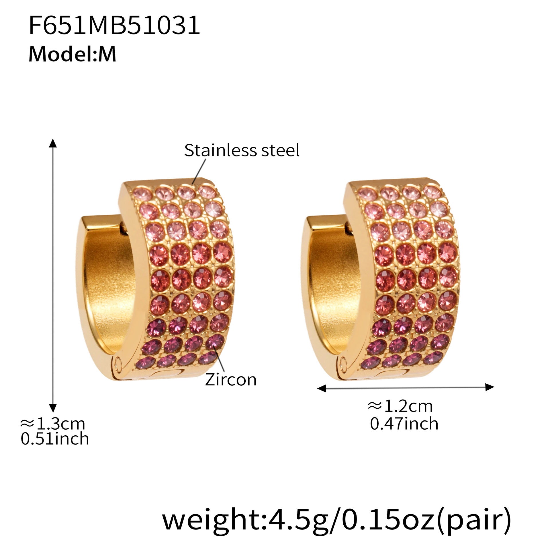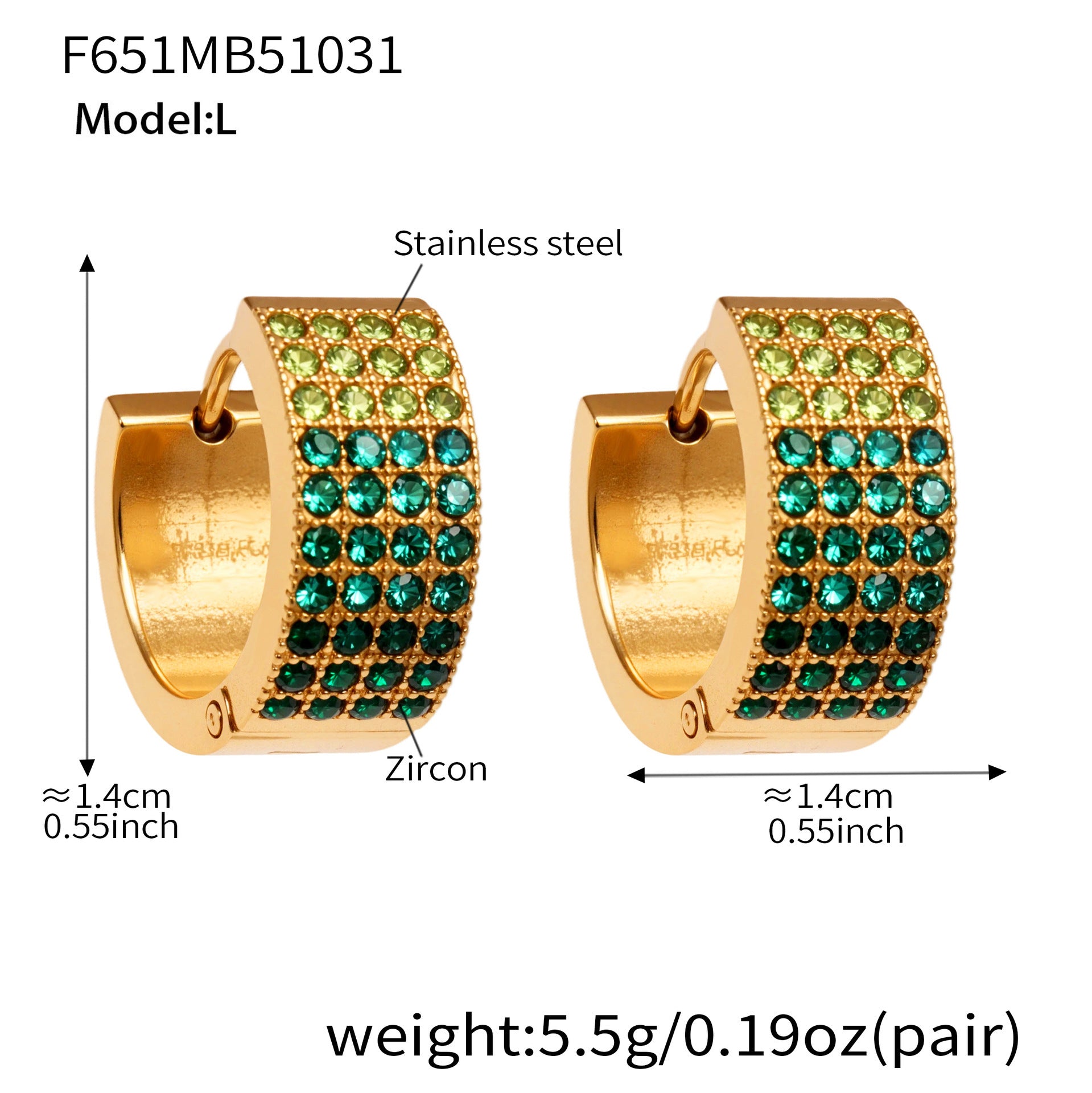 B廠【F651】彩鑽四排鋯石精緻卡扣耳環不鏽鋼鍍18k金時尚百搭個性耳飾 25.11-1