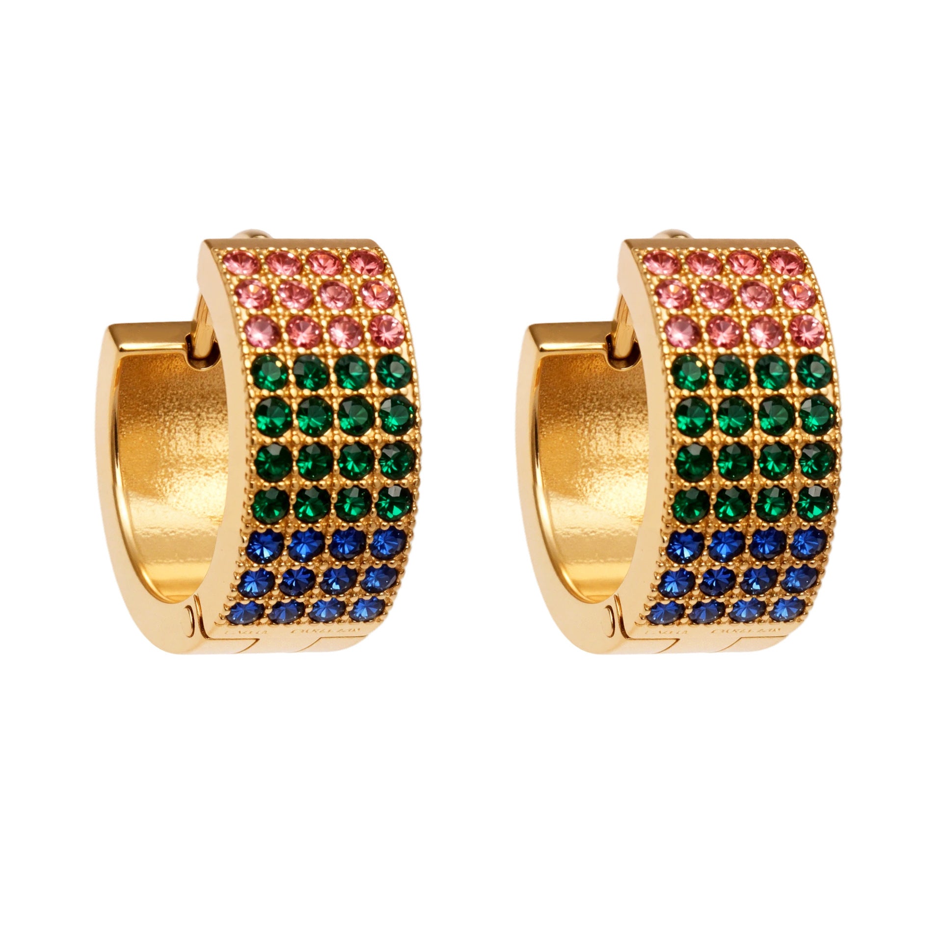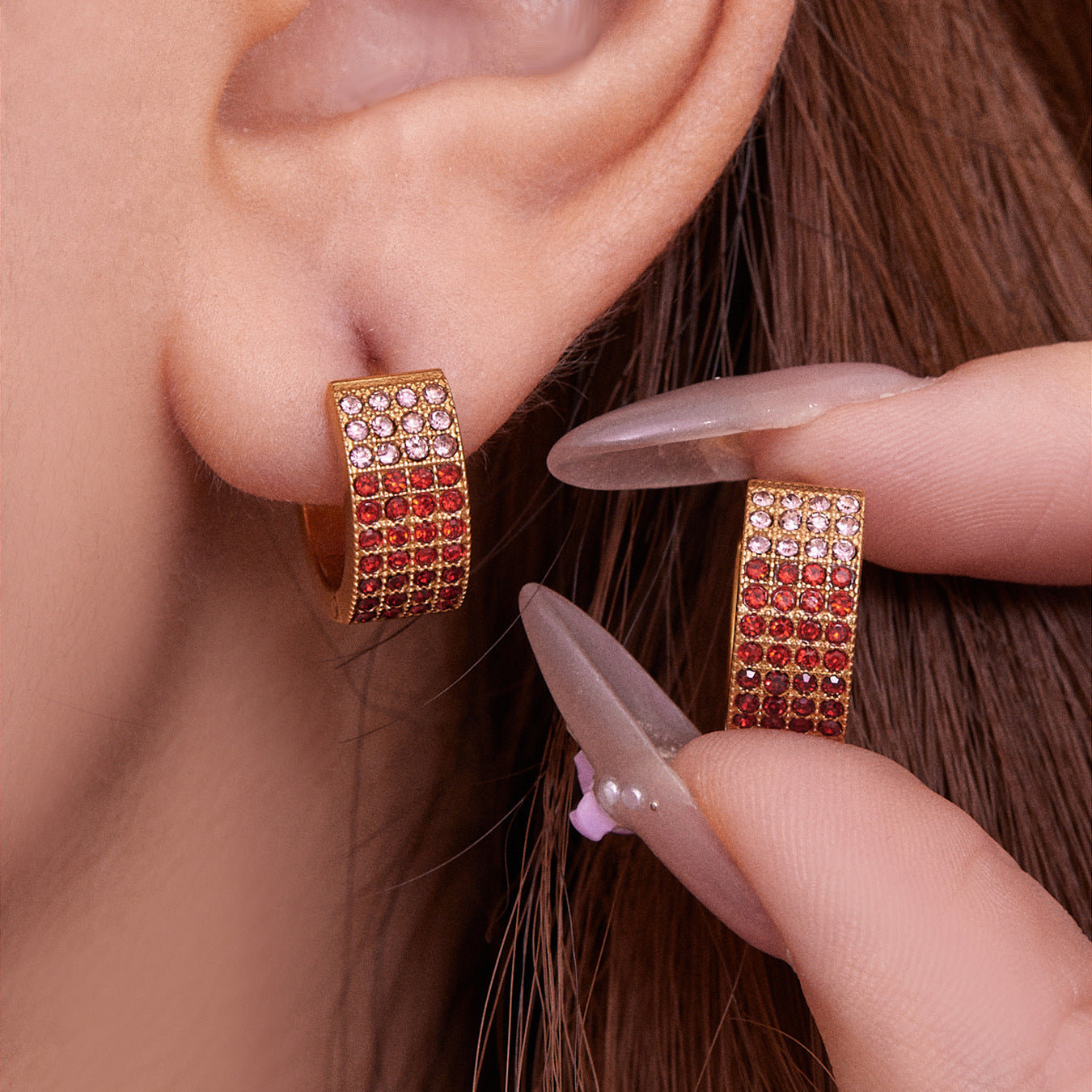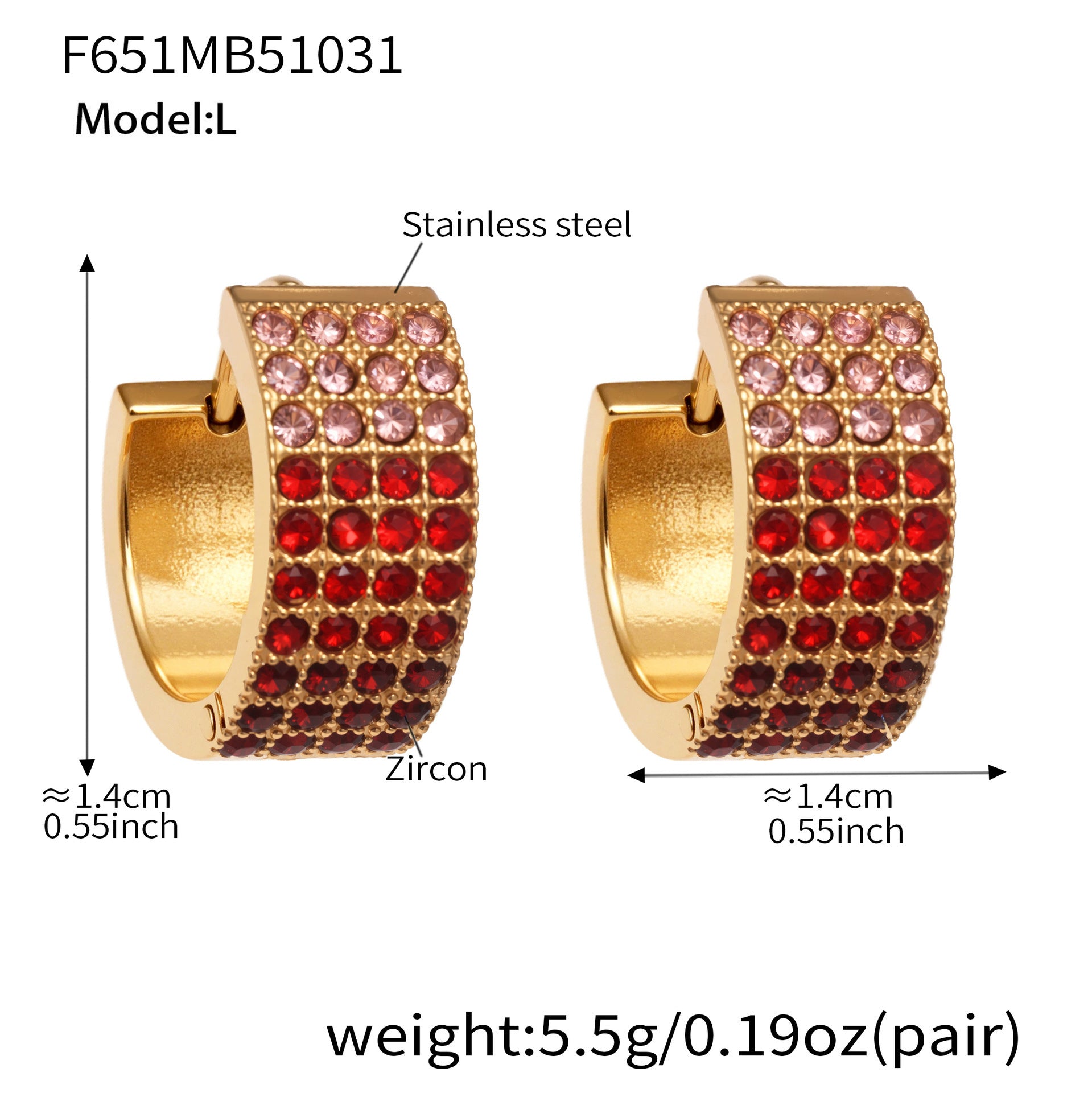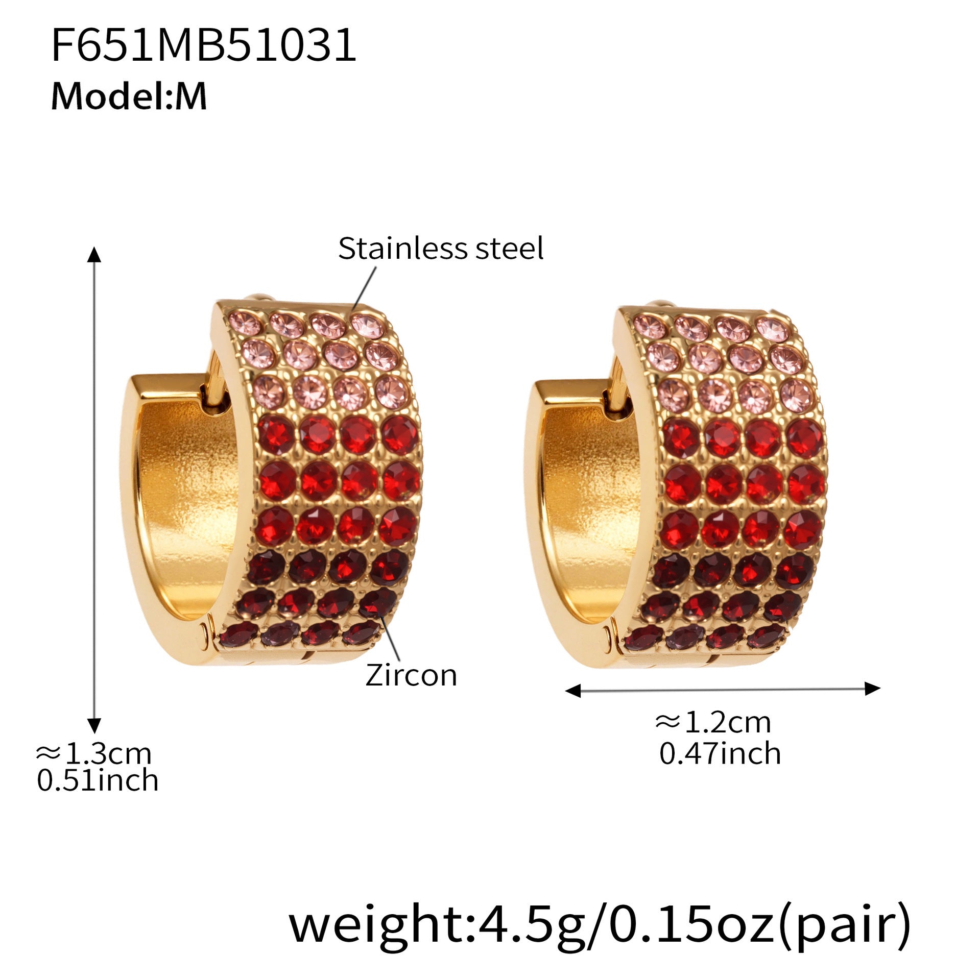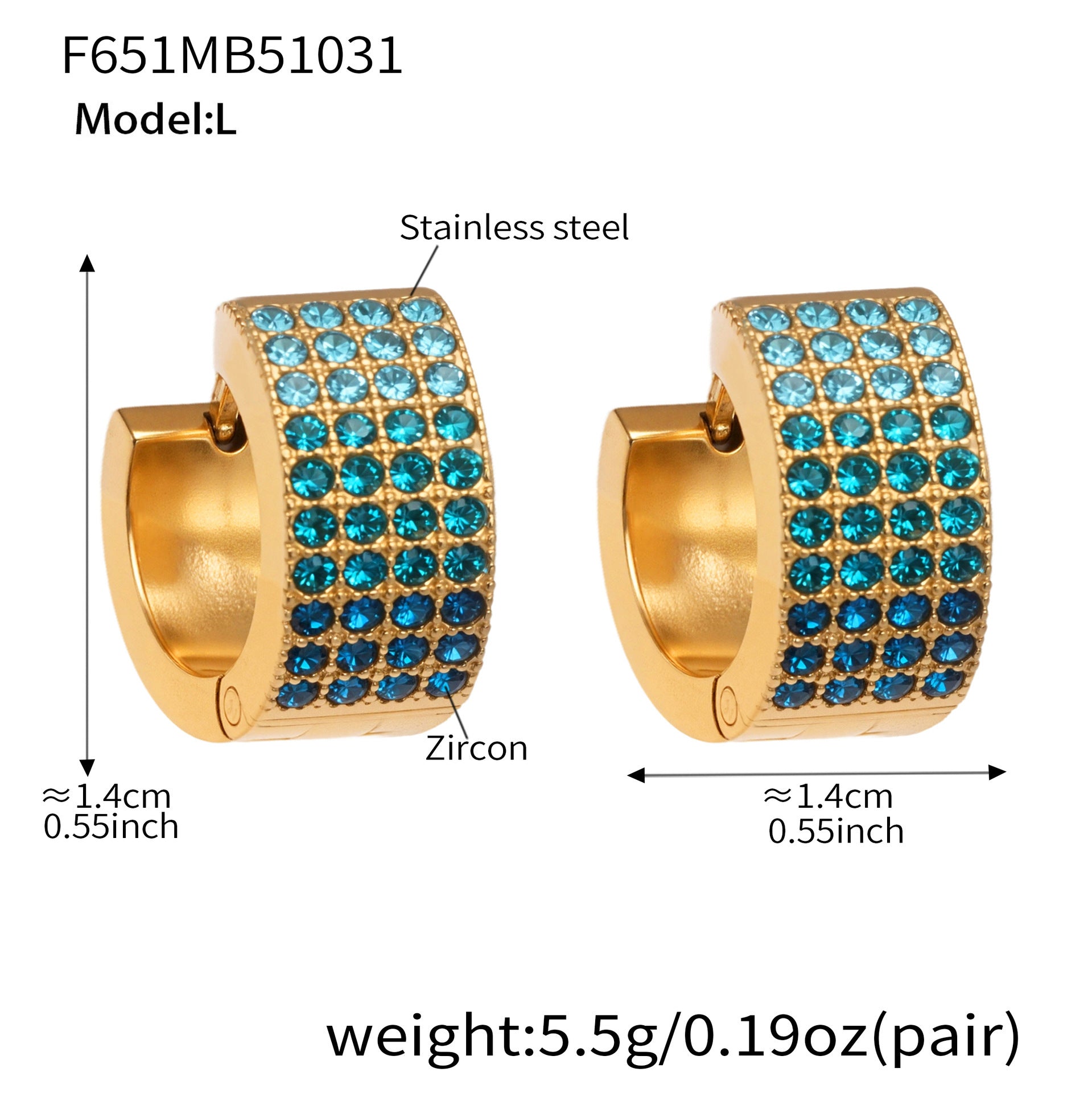 B廠【F651】彩鑽四排鋯石精緻卡扣耳環不鏽鋼鍍18k金時尚百搭個性耳飾 25.11-1