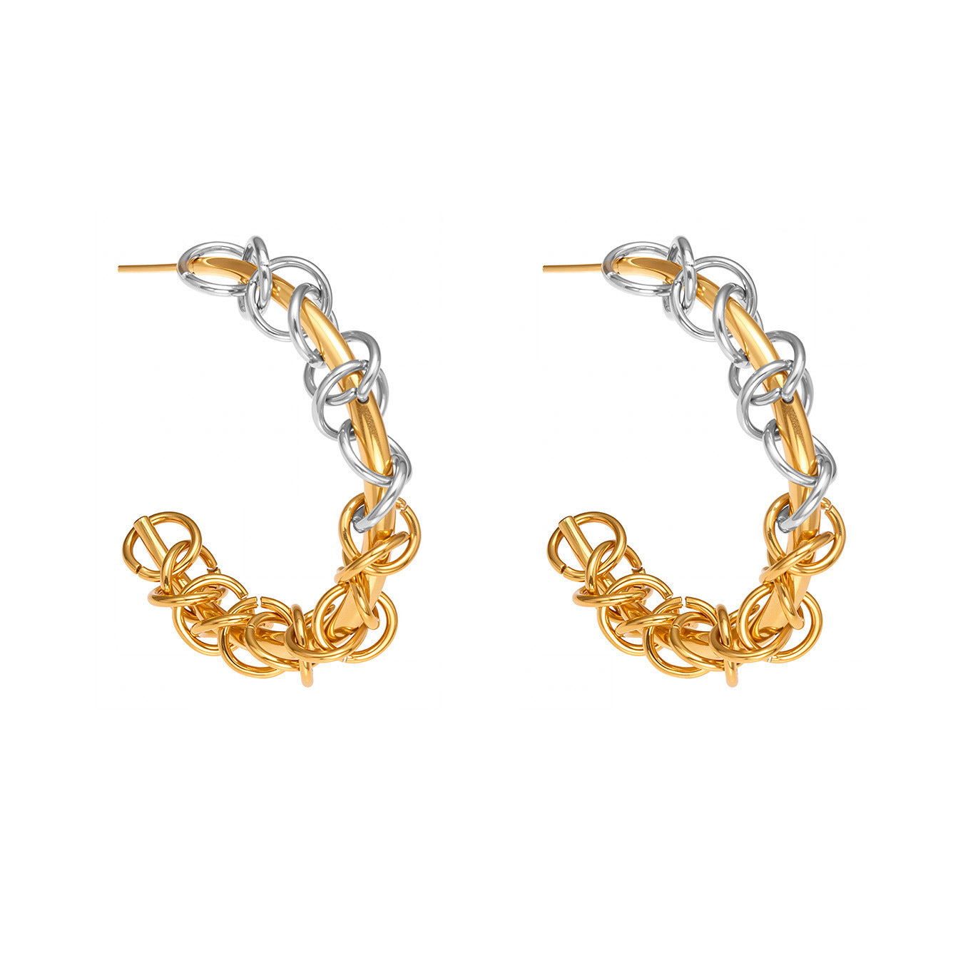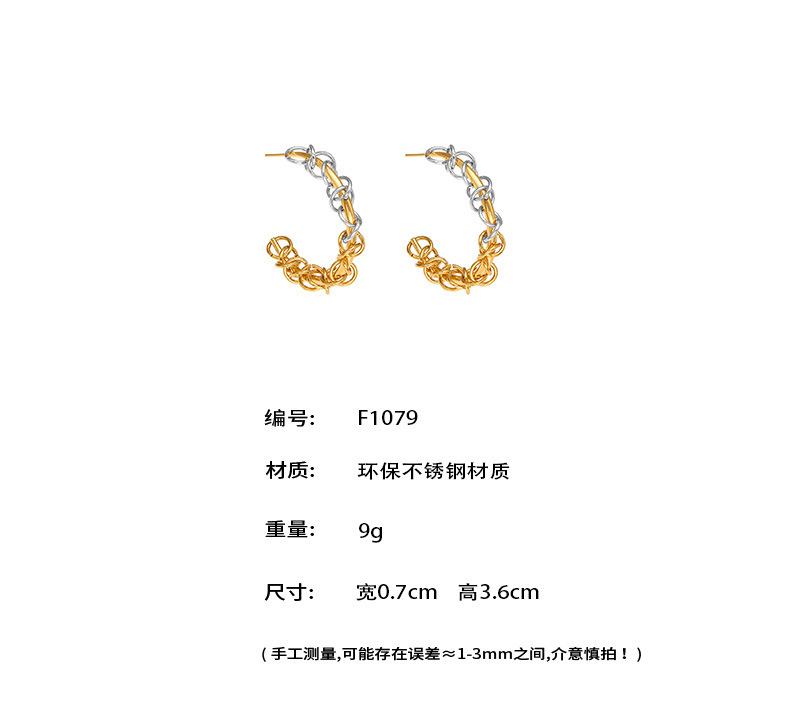 B廠【F677】不鏽鋼嘻哈環扣纏繞C型拼色間電耳環歐美小眾耳飾鍍18k真金 25.11-1