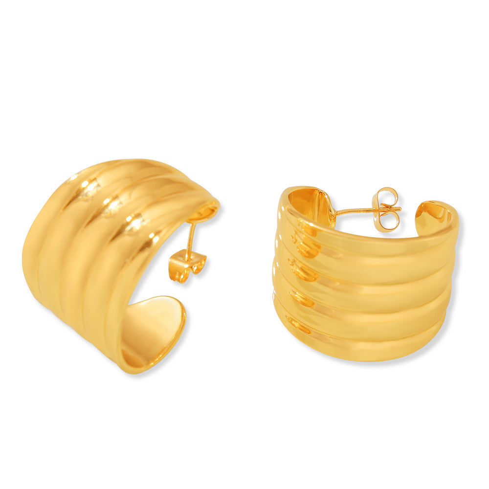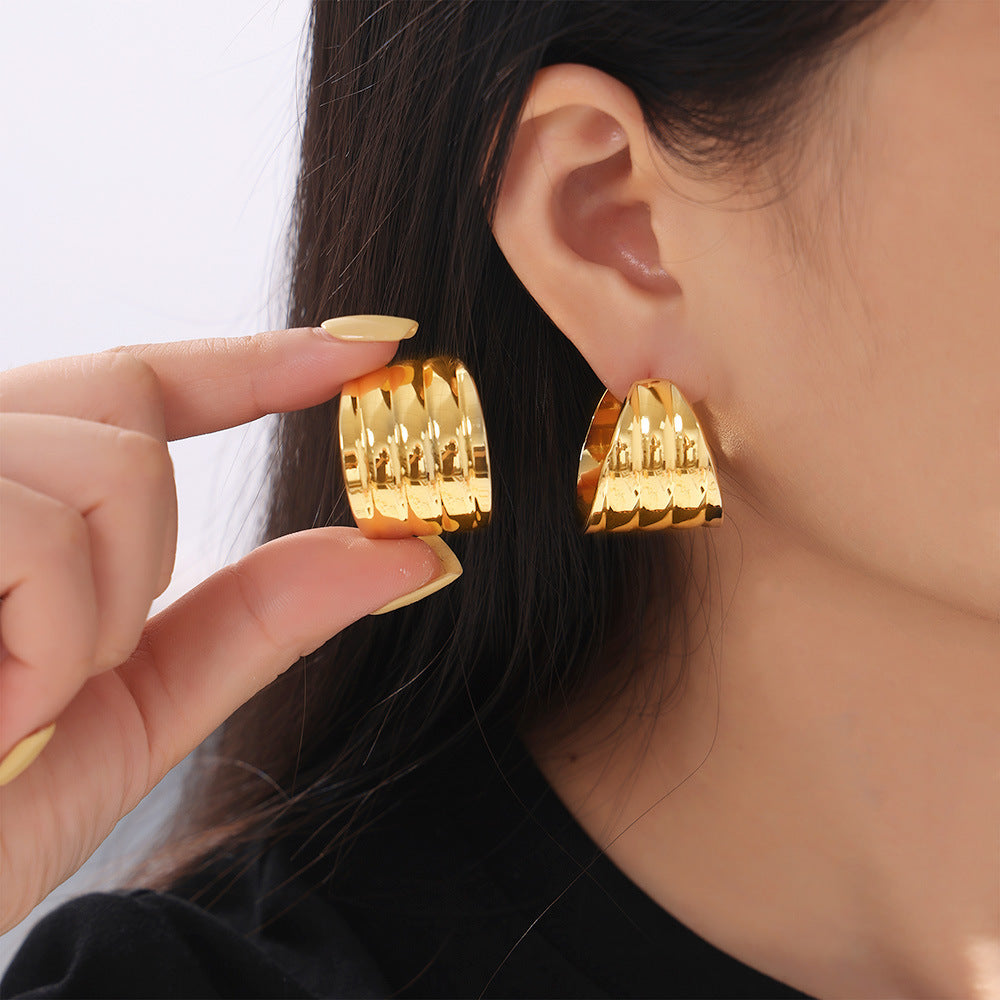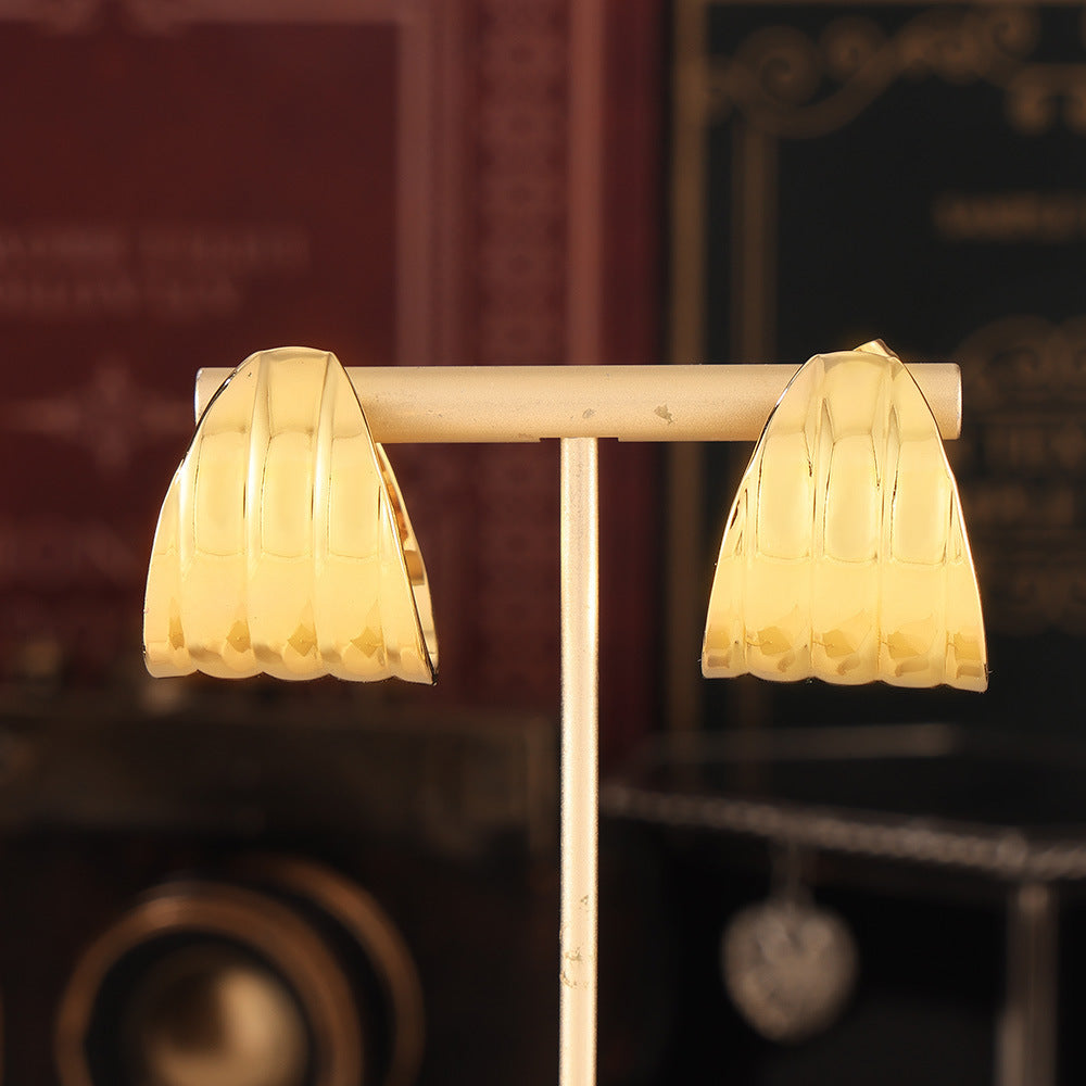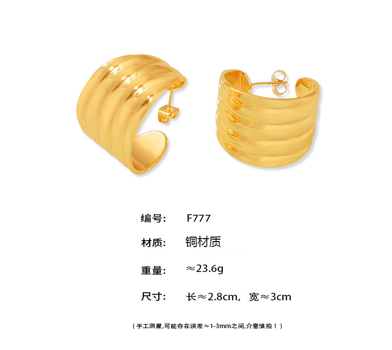B廠【F777】歐美chic風金色寬面復古耳環小眾氣質設計銅材質鍍金耳飾女 24.07-4