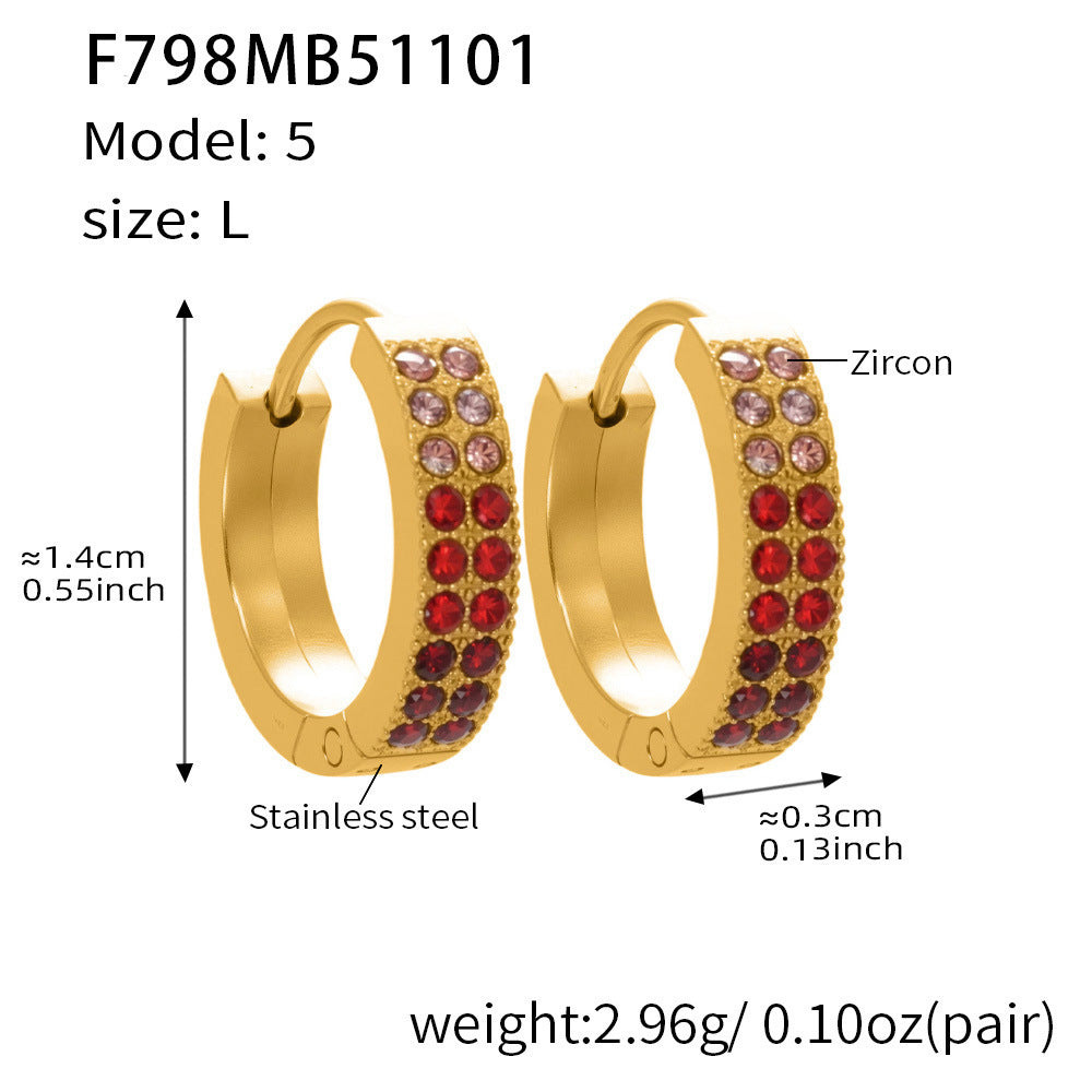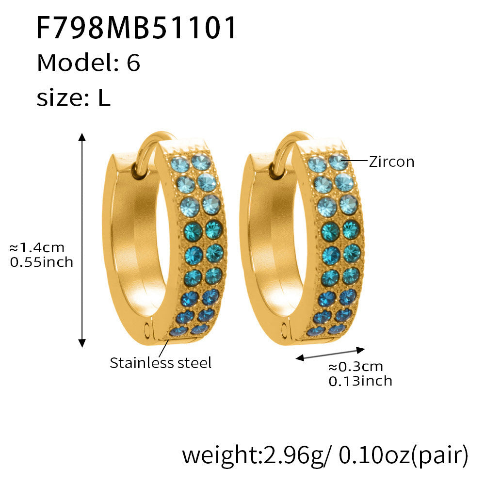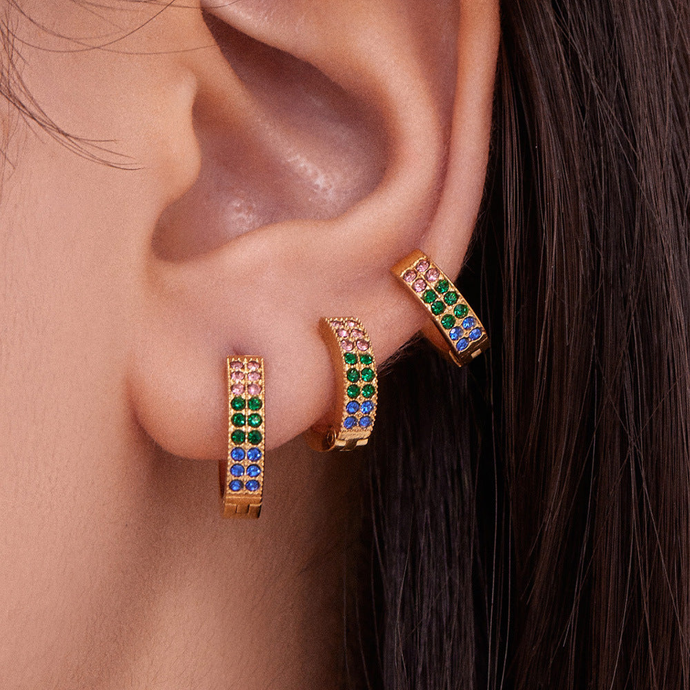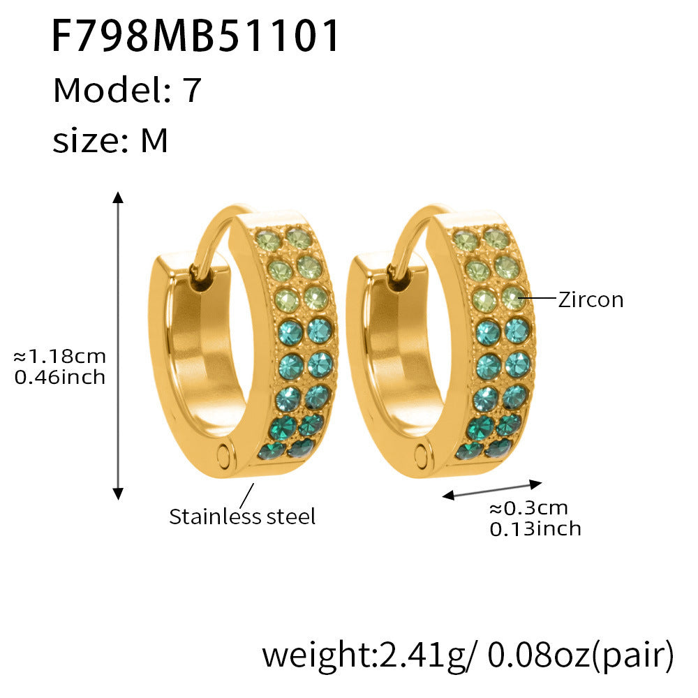 B廠【F798】簡約C型鑲彩鑽拼色鋯石耳扣不鏽鋼鍍18k真金輕奢小眾耳環女 25.11-1
