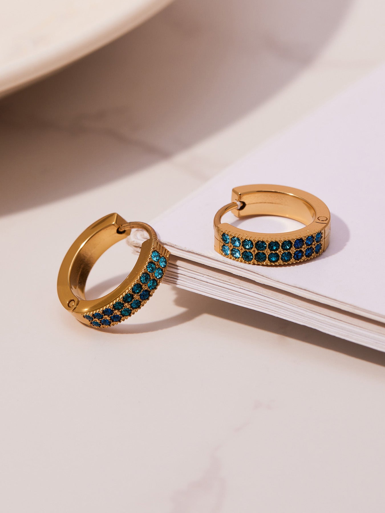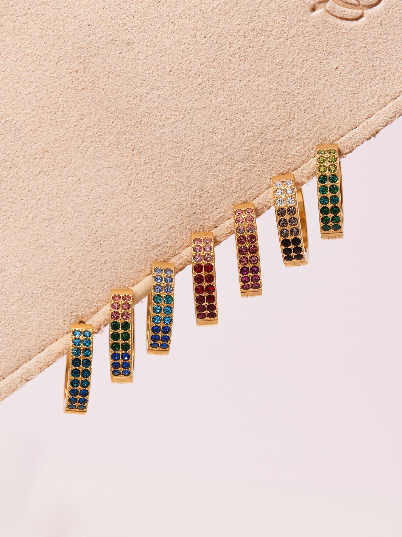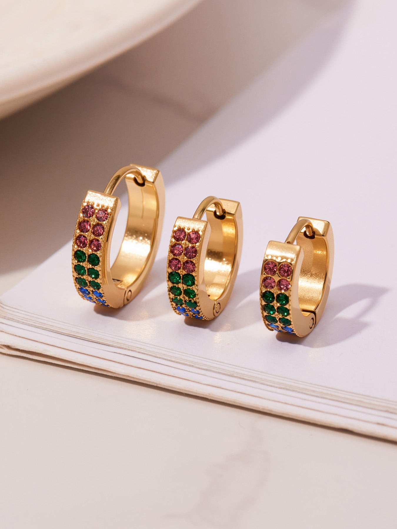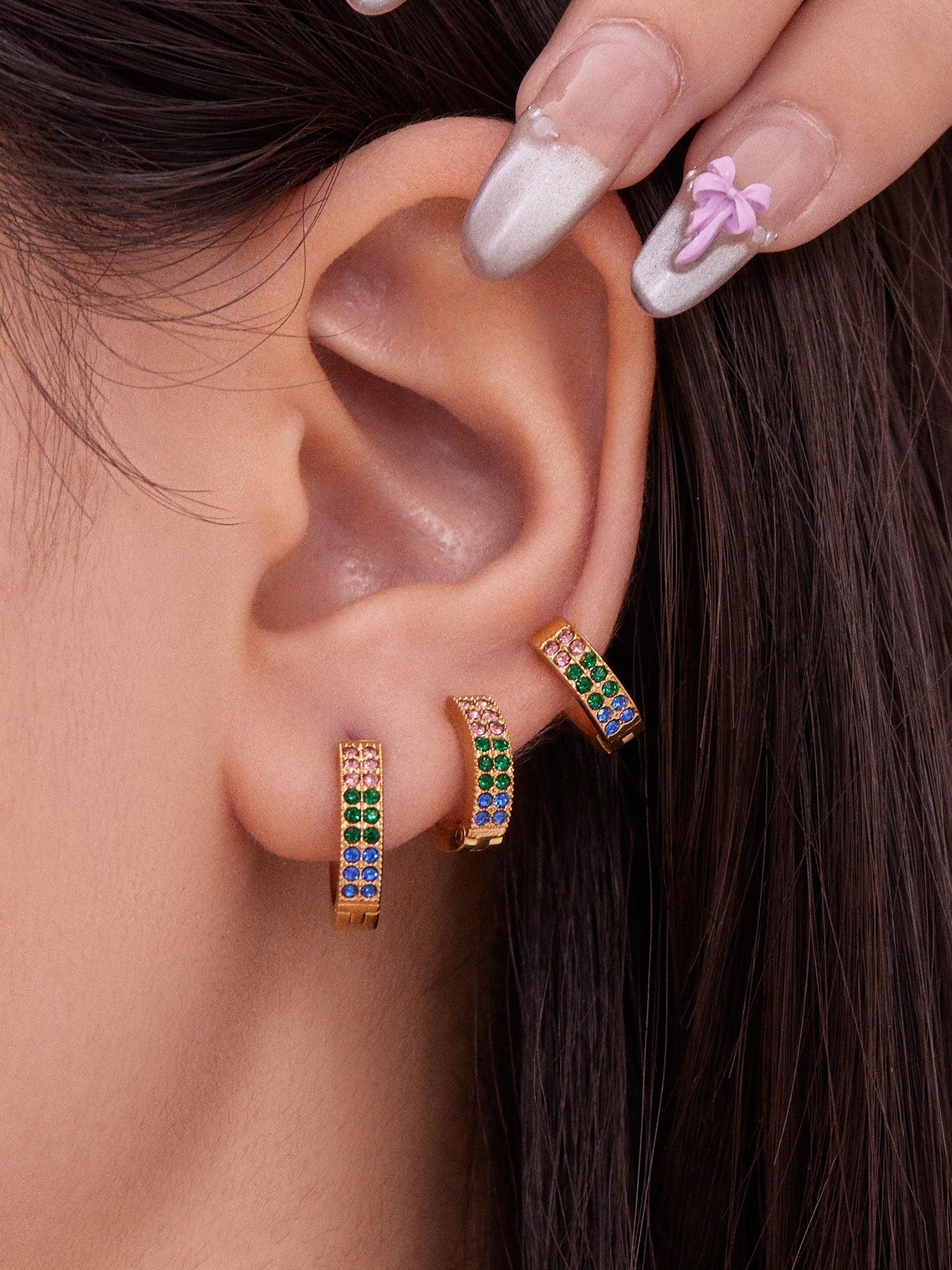 B廠【F798】簡約C型鑲彩鑽拼色鋯石耳扣不鏽鋼鍍18k真金輕奢小眾耳環女 25.11-1
