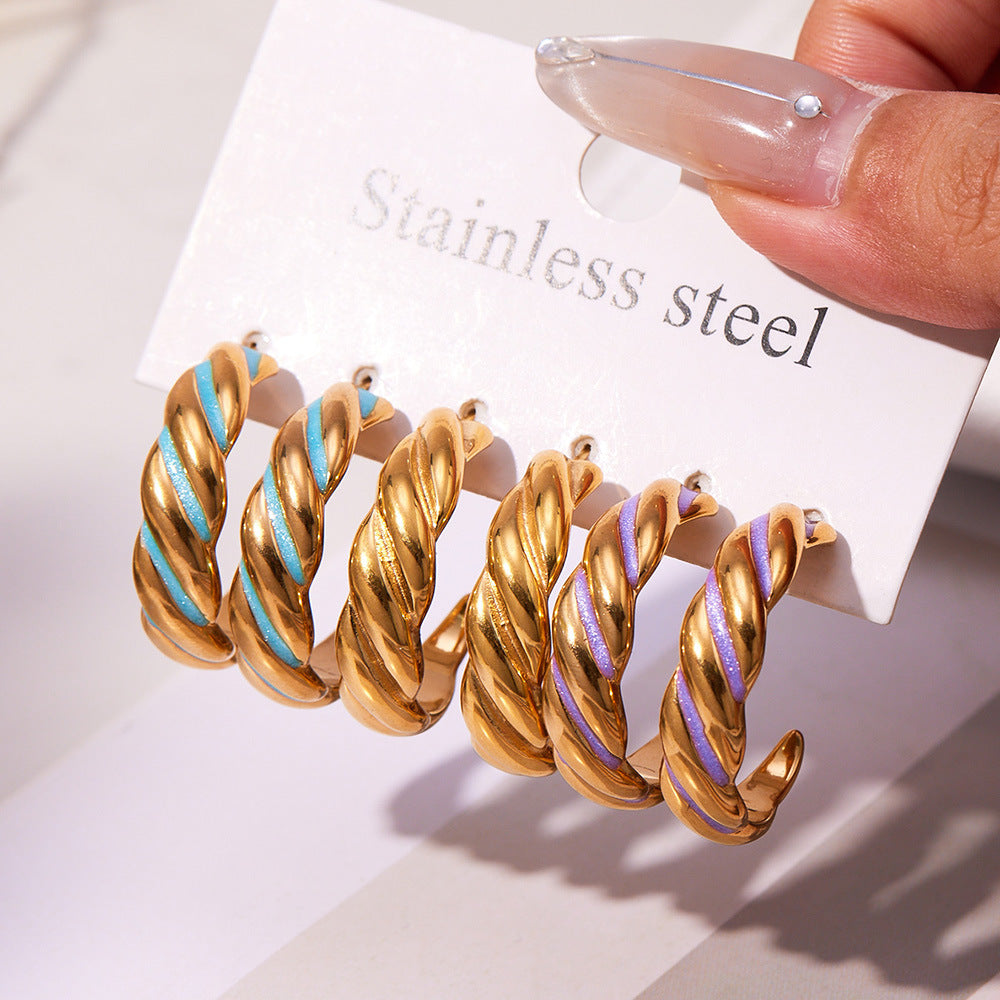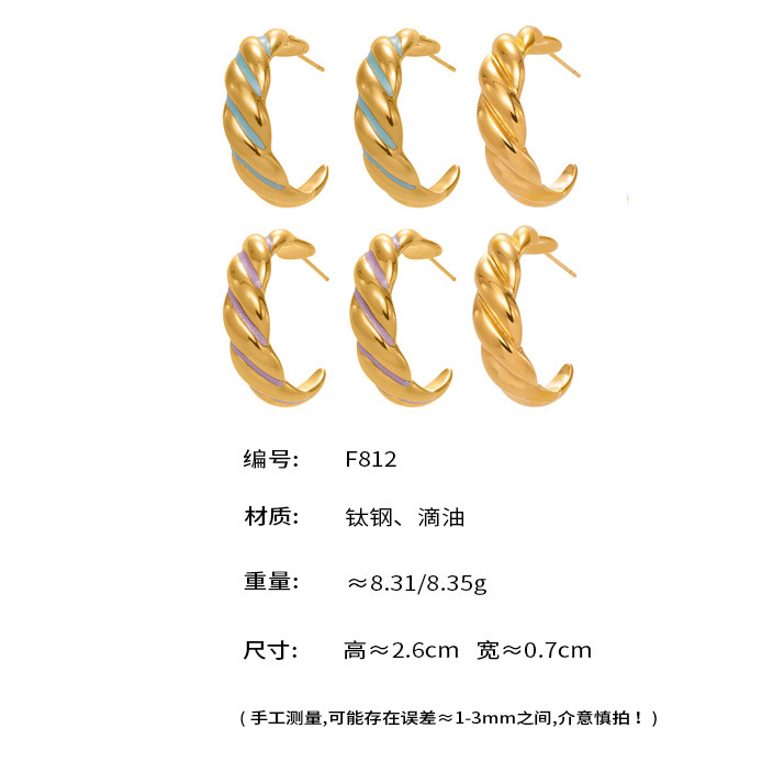 B廠【F812】新款不鏽鋼幾何扭紋滴油耳環琺瑯彩釉時尚個性耳飾鍍18k金 25.11-1