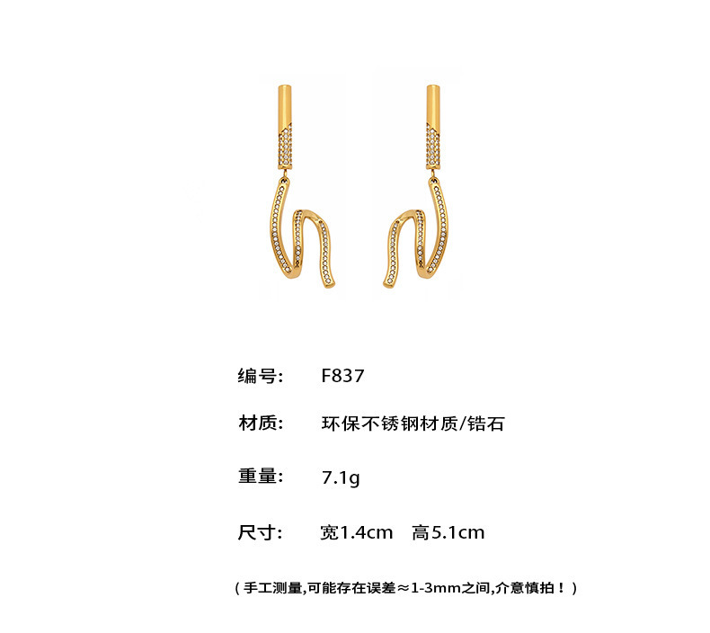 B廠【F837】不鏽鋼幾何N字母吊墜排鑽鋯石耳環個性流行時尚創意耳環鍍18k真金 25.12-4