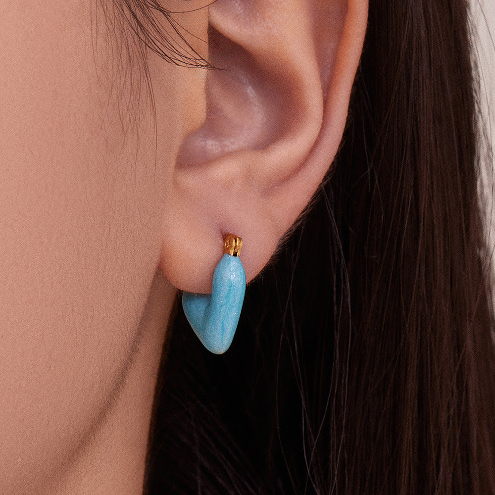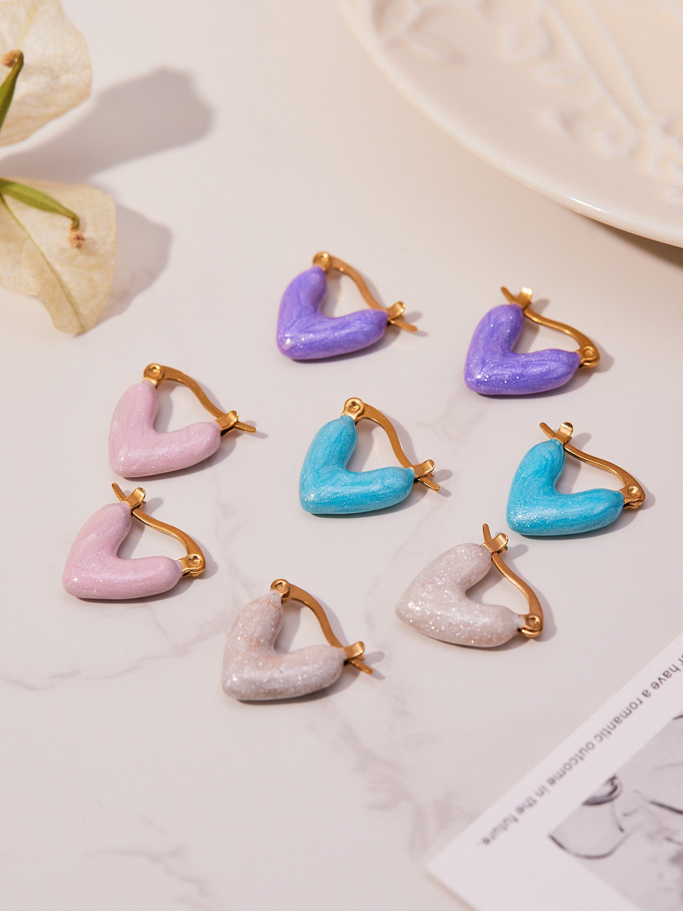 B廠【F924】ins跨境熱銷款不對稱滴油愛心耳環輕奢高質感耳扣鍍18k真金 25.11-2