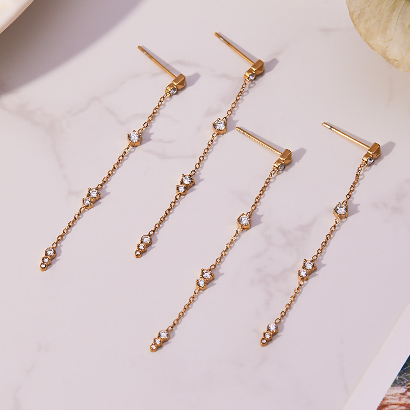B廠【F932】不鏽鋼流蘇鋯石耳環鍍18k真金chic風歐美時尚輕奢百搭耳飾 25.11-2