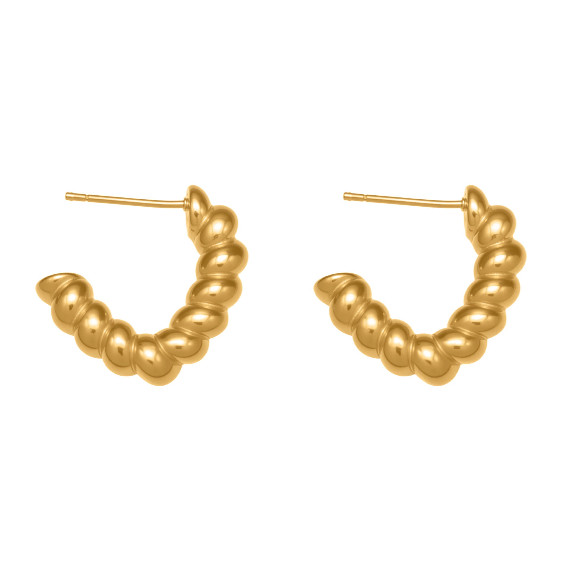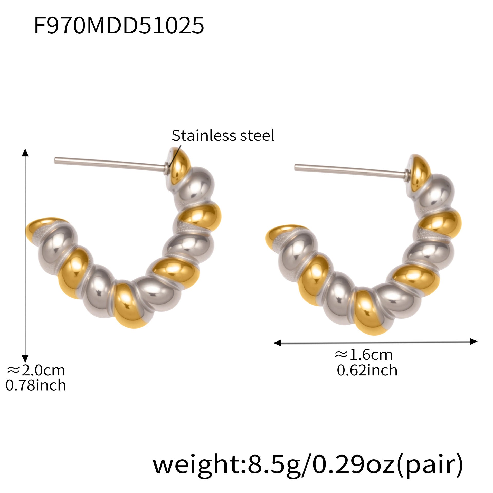 B廠【F970】不鏽鋼重工螺紋麻花形狀耳環拼色間電鍍18k金簡約新潮耳環 25.10-5