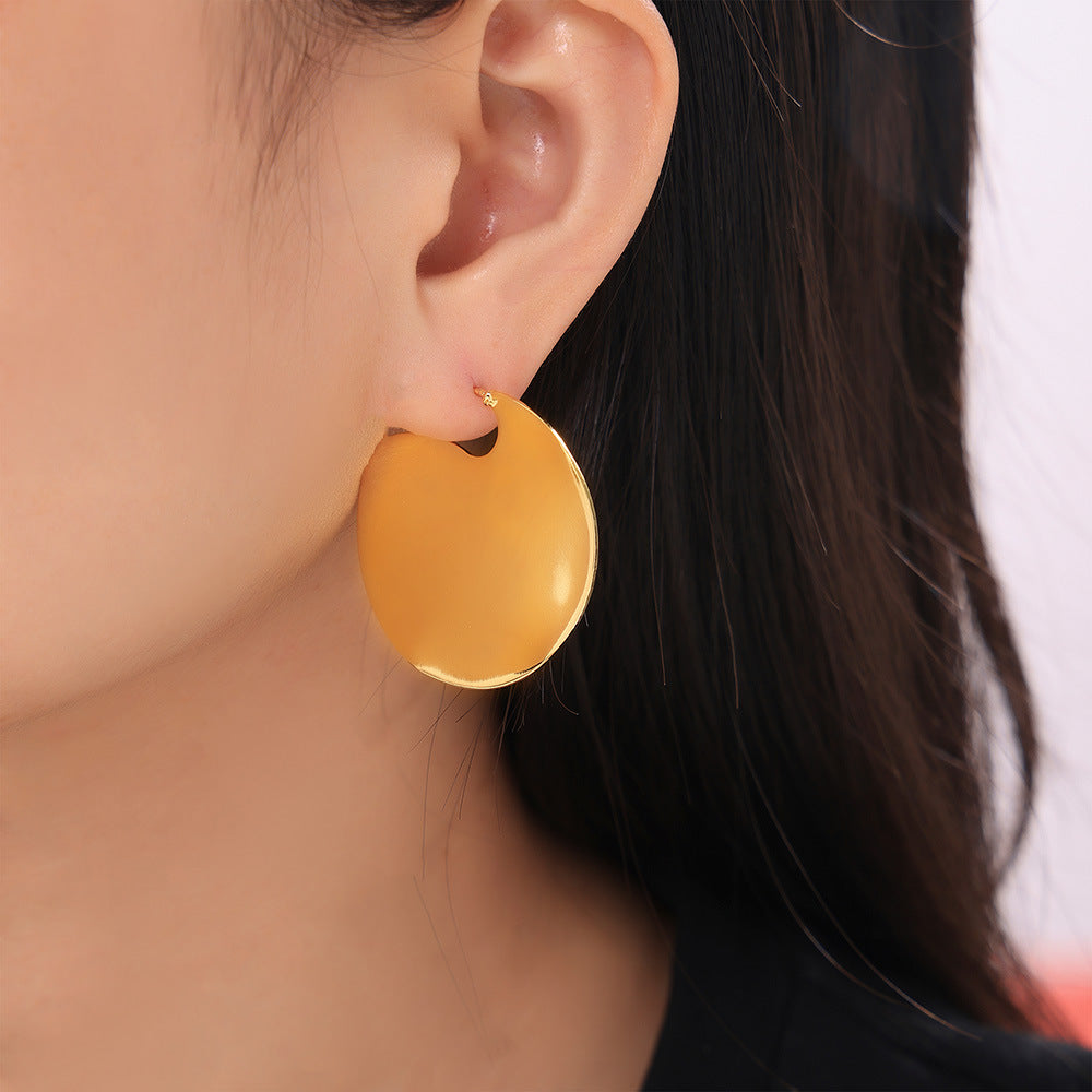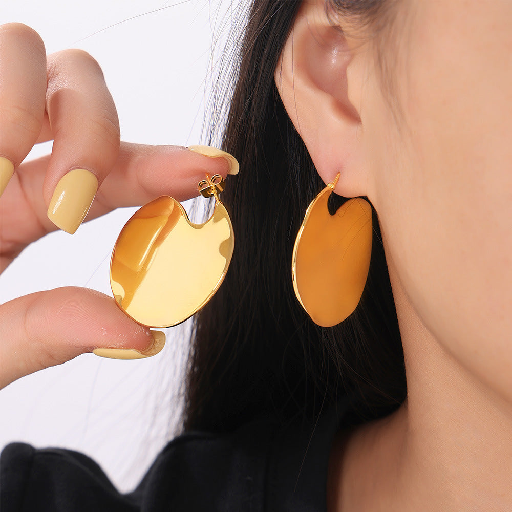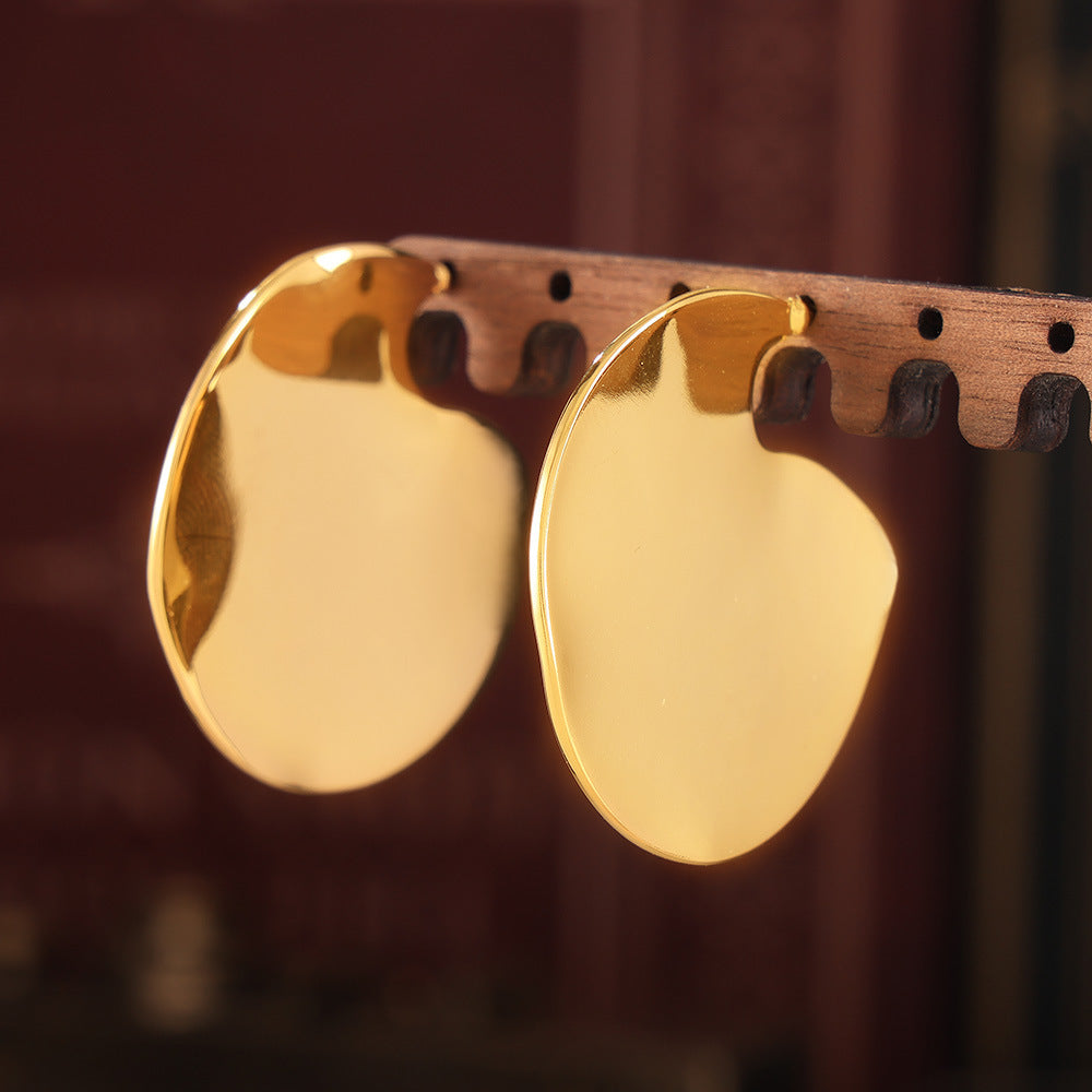 B廠【F979】歐美ins風不規則圓圈光面耳環小眾誇張設計銅材質鍍18k金復古耳環 24.07-4