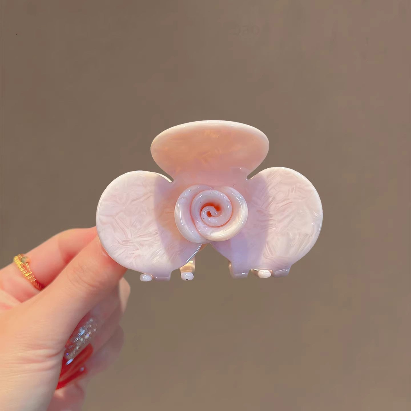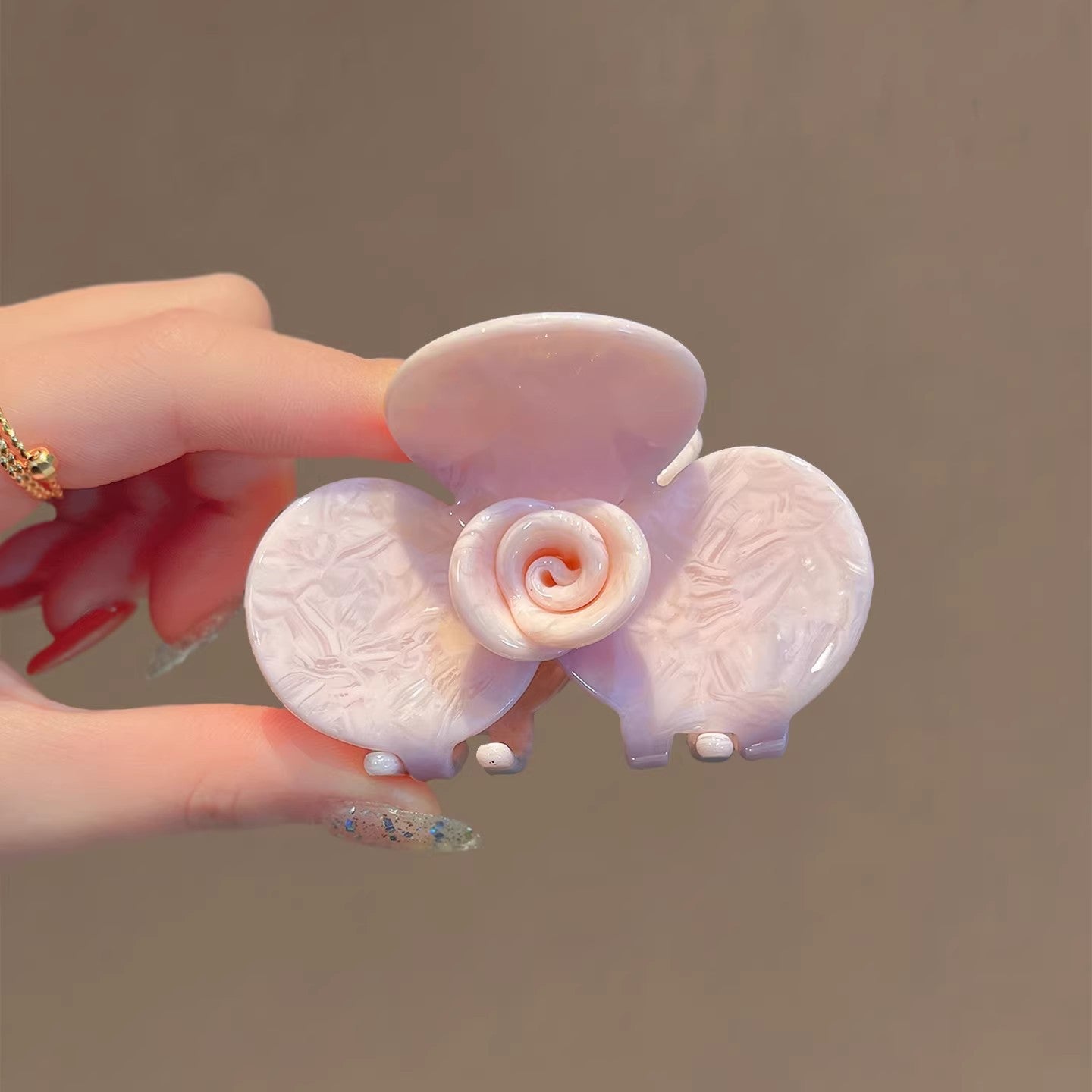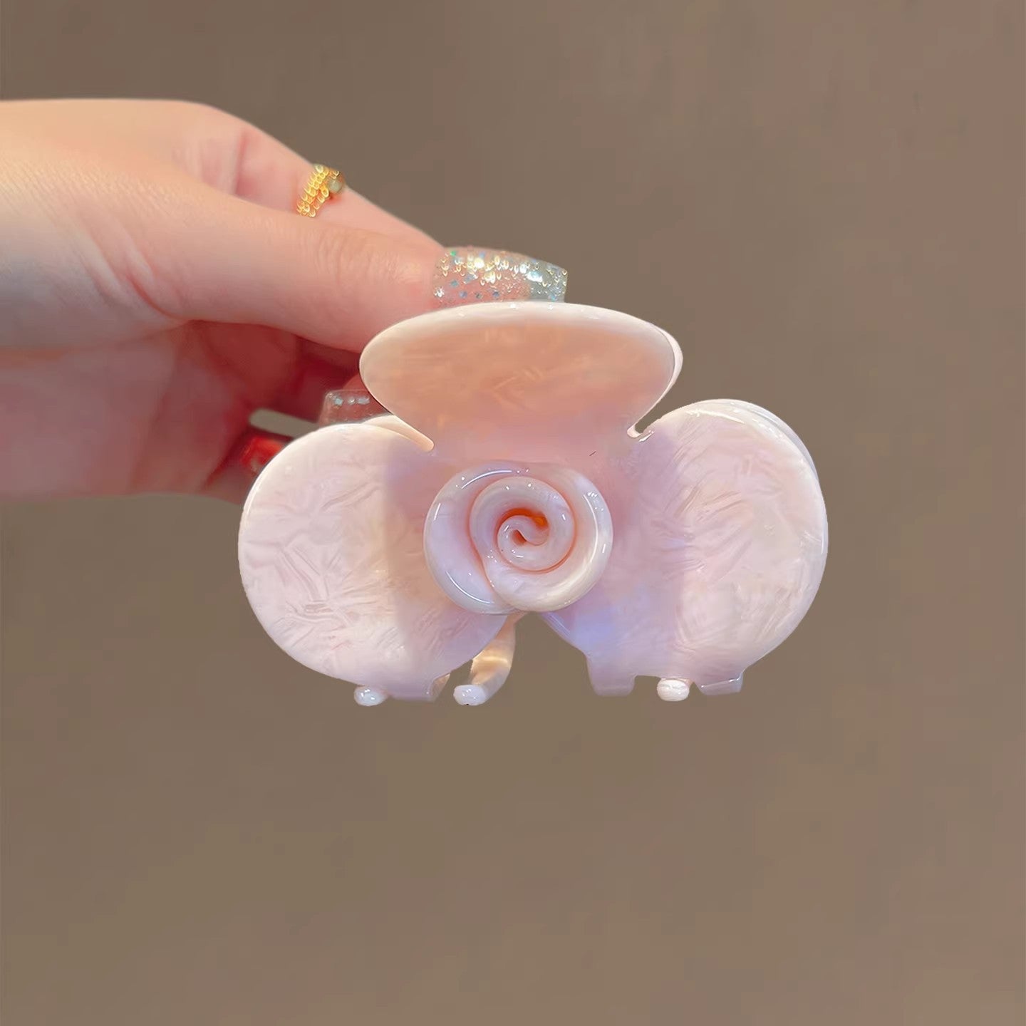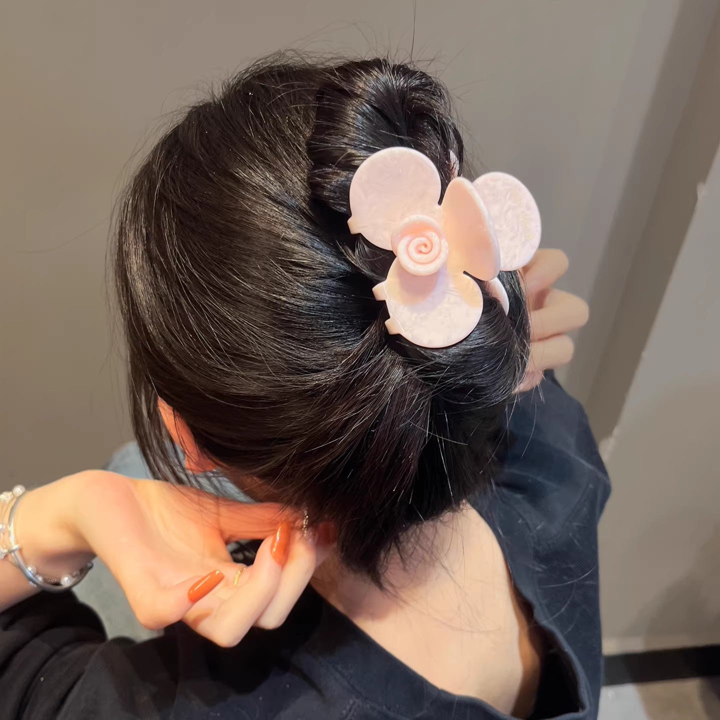 C廠【G46】品質醋酸抓夾淡粉色玫瑰花髮夾2026新款後腦勺髮量少半紮髮鯊魚夾 26.04-3