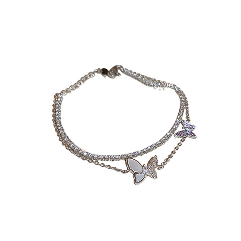 A廠【HB1569】甜美輕奢風鋯石蝴蝶雙層手鍊時尚百搭氣質手環小眾高級感手飾 24.08-3