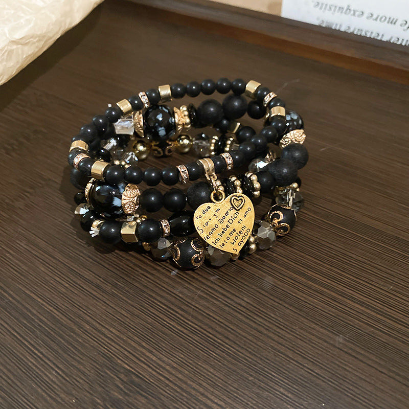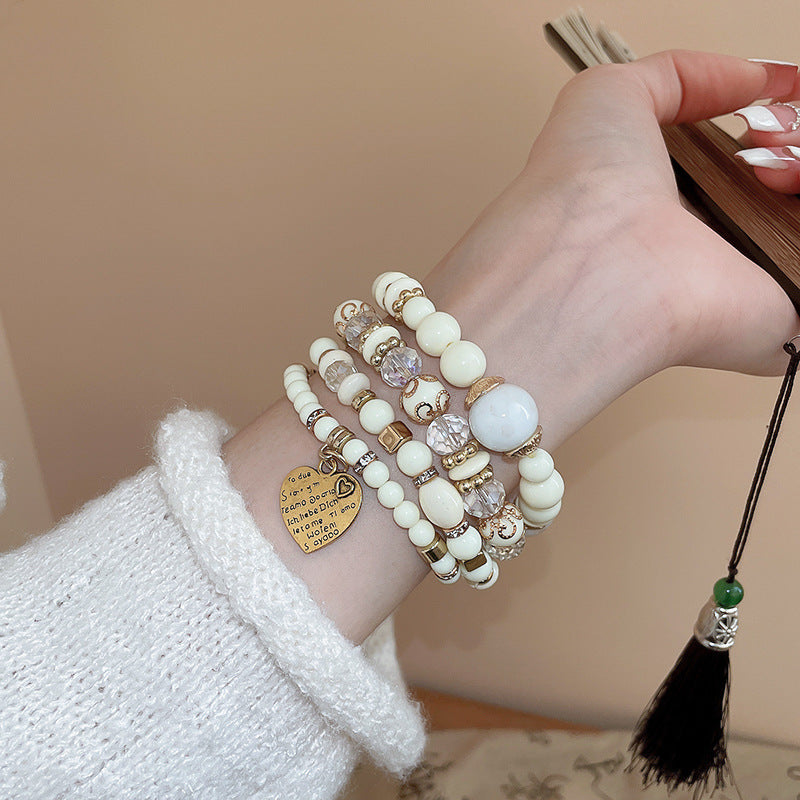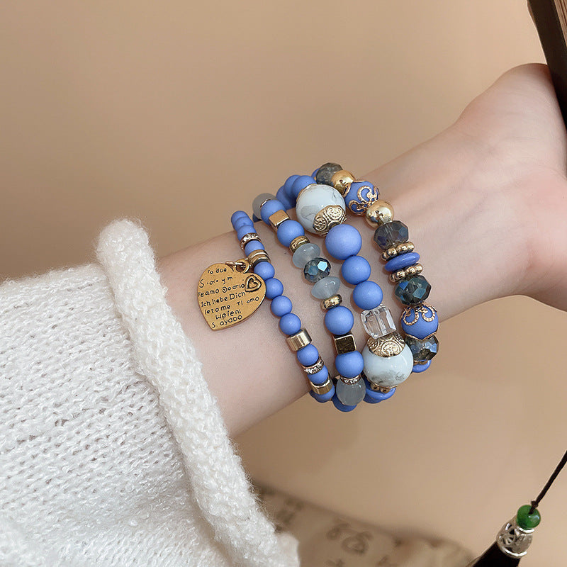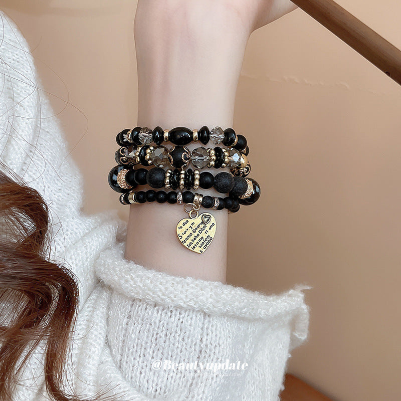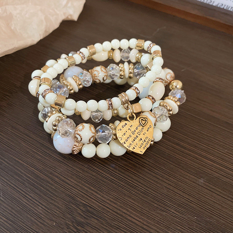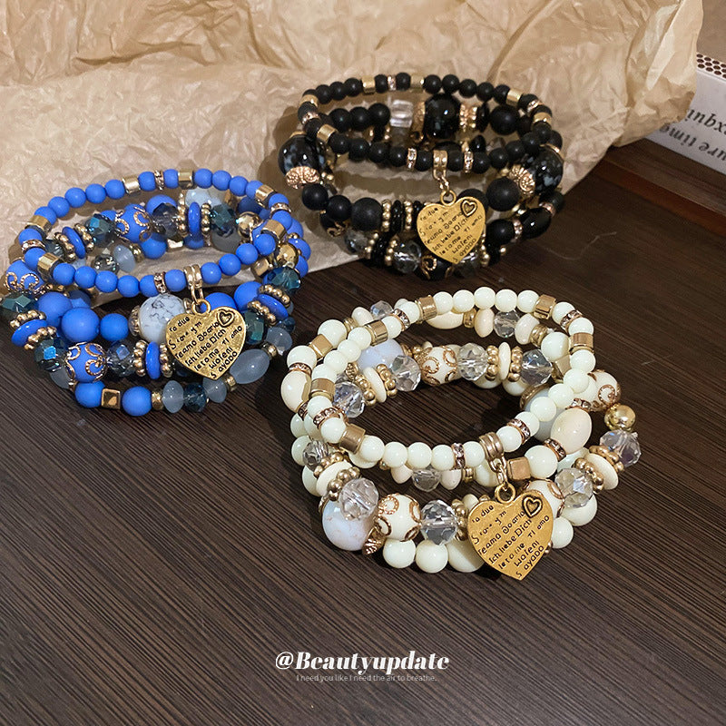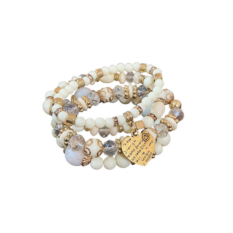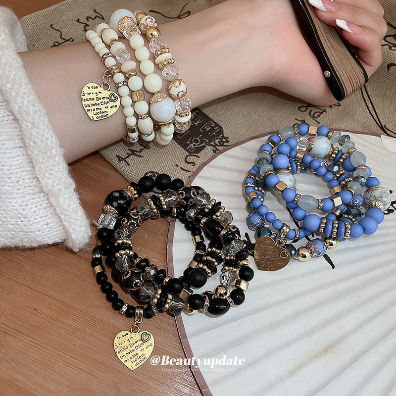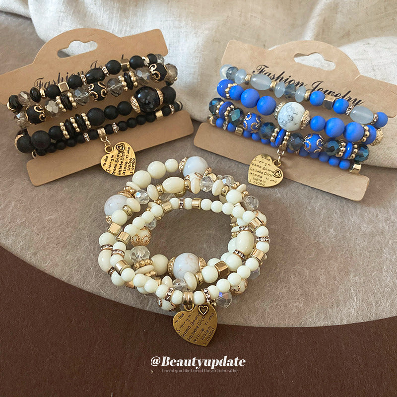 A廠【HB1624】水晶款串珠愛心字母吊墜手鍊四件套跨境民族風手串潮流設計感手飾 24.09-2