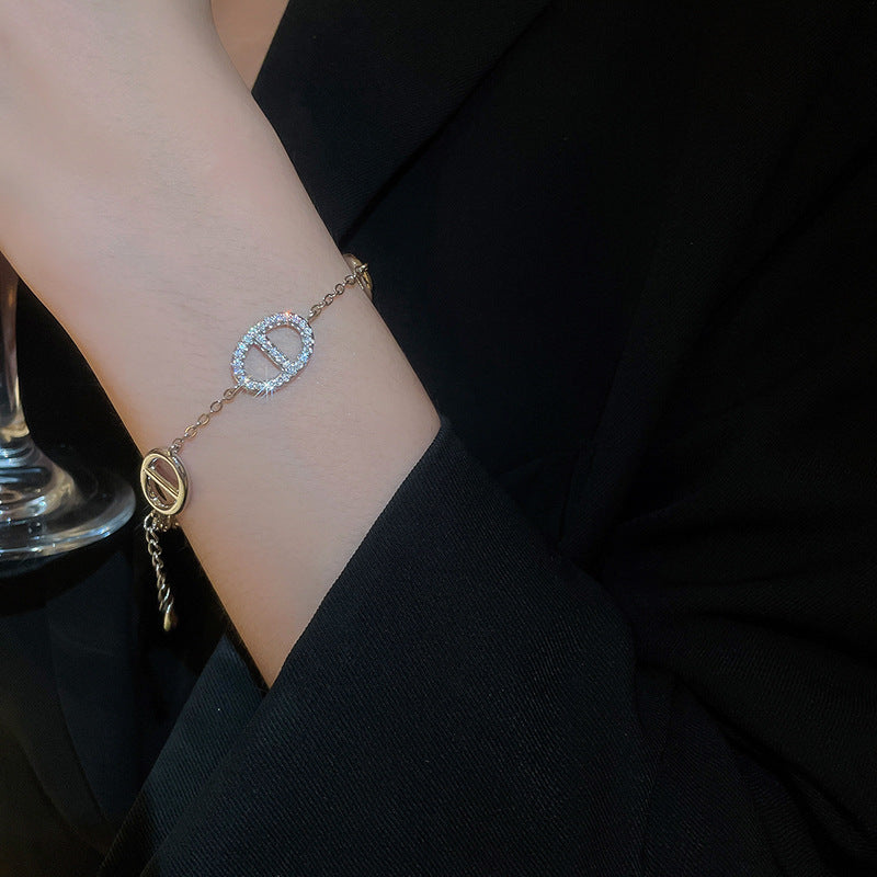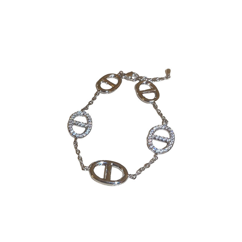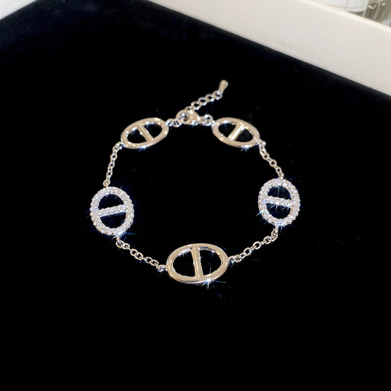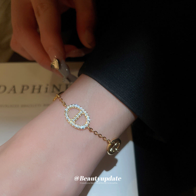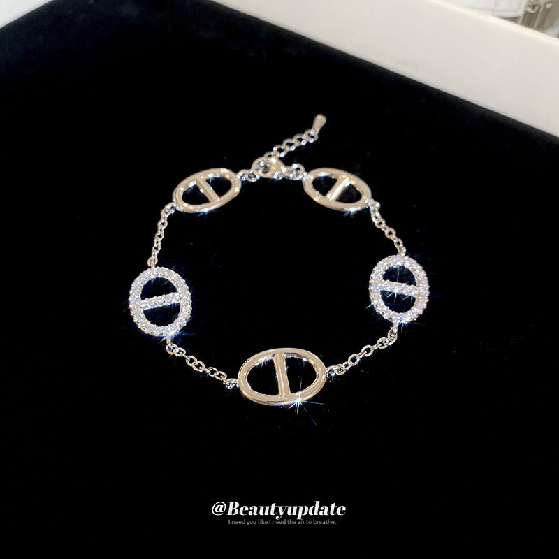 A廠【HB1856】真金電鍍小眾高級感鋯石橢圓手鍊潮流時尚手環個性輕奢通勤手飾女 24.08-4