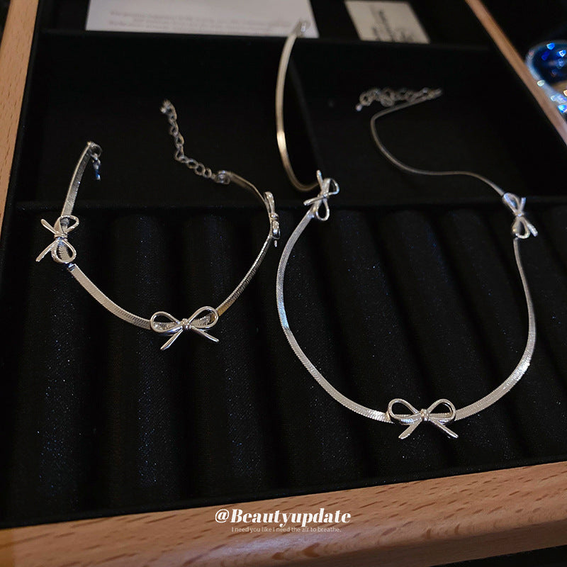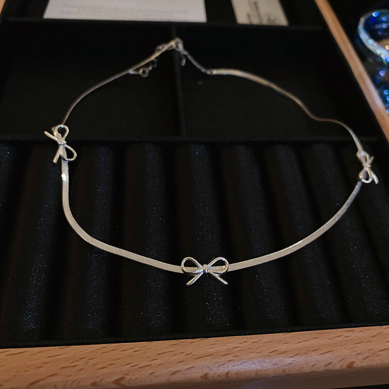 A廠【HB2220-HN5854】新款冷淡風蝴蝶結刀片鏈項鍊簡約高級感氣質頸鍊時尚小眾個性項鍊 24.04-4