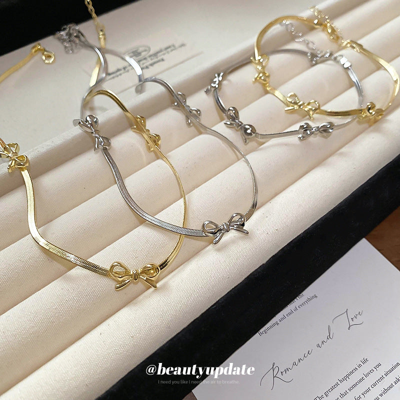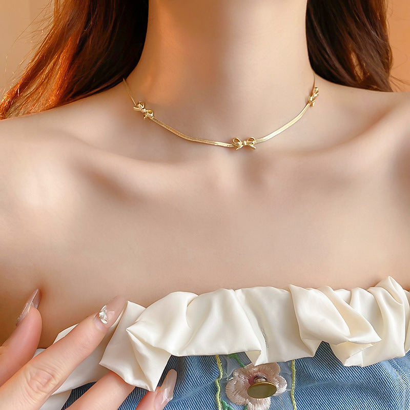 A廠【HB2245-HN5946】簡約蝴蝶結choker項鍊套裝氣質高級感個性鎖骨鏈時尚通勤項鍊 24.05-1