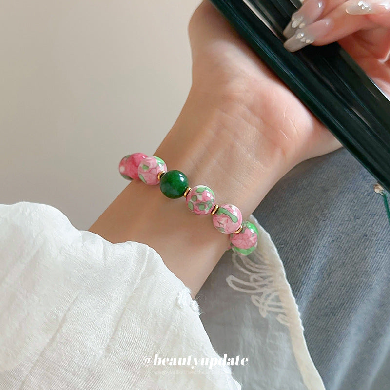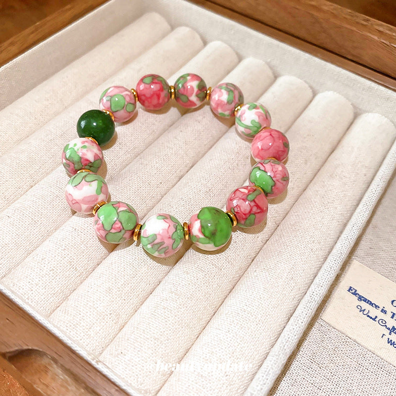 A廠【HB2635】真金電鍍紅綠漸層琉璃手鍊新中式優雅百搭手串國潮甜美氣質手飾女 24.06-1