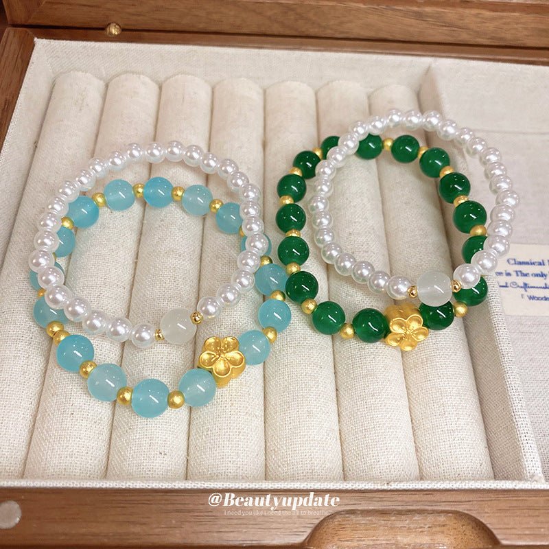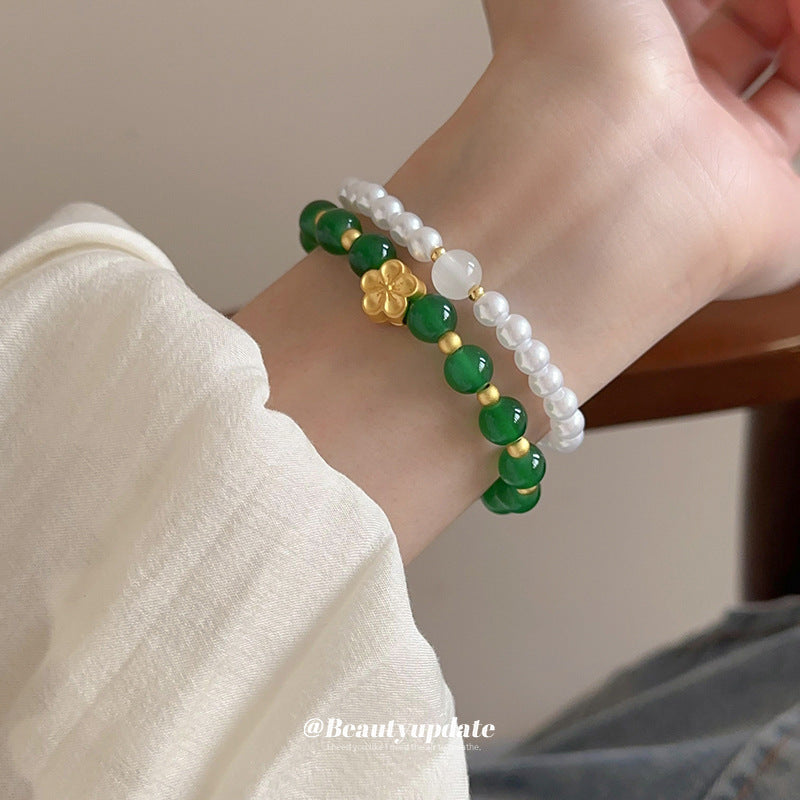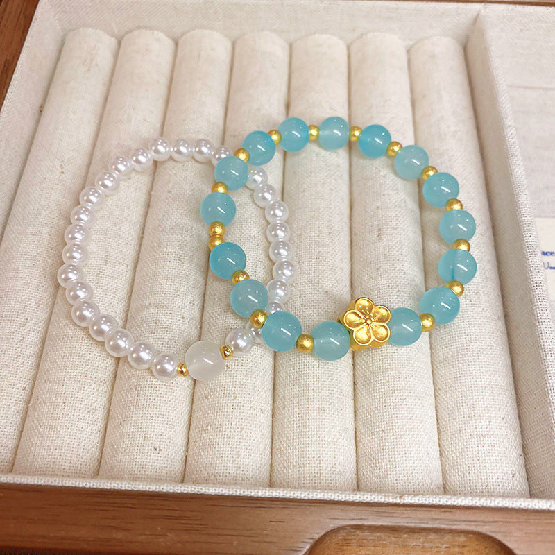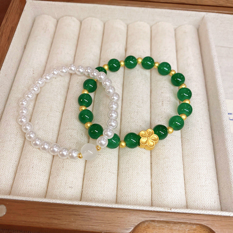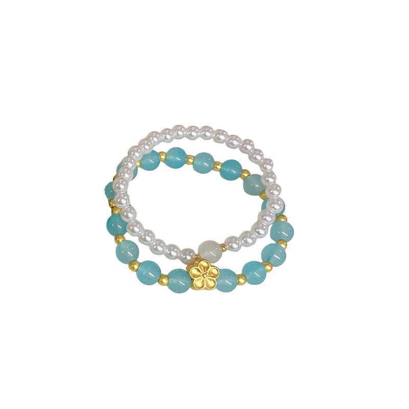 A廠【HB2665】新中式花朵珍珠串珠手鍊兩件組復古漢服配件手串個性百搭手環手飾 24.06-2