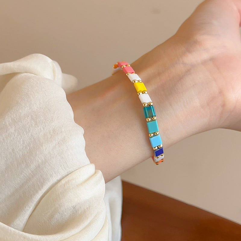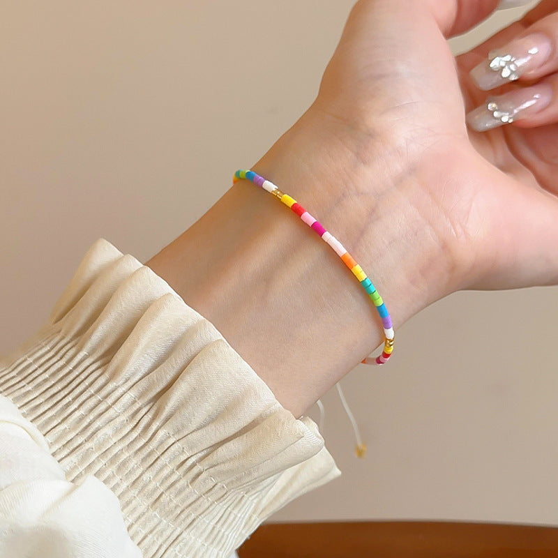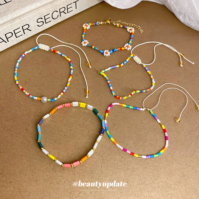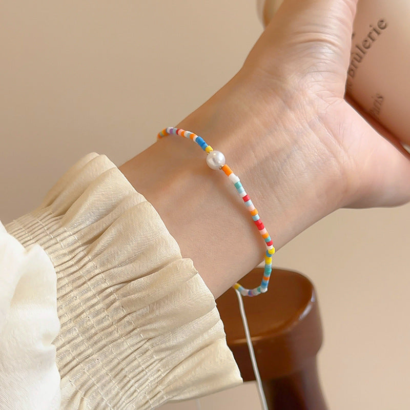 A廠【HB2682】多巴胺珍珠米珠串珠手鍊ins風小清新手串小眾文藝少女心手環配件 24.07-1