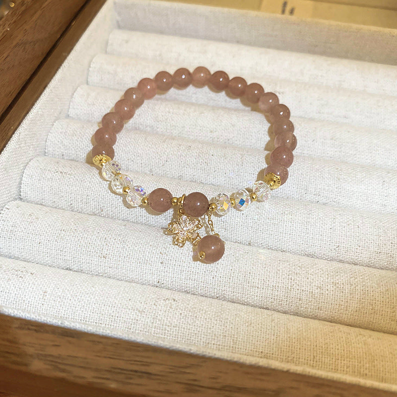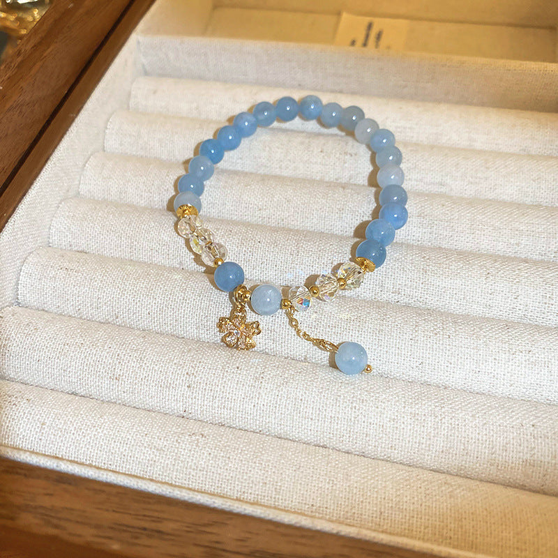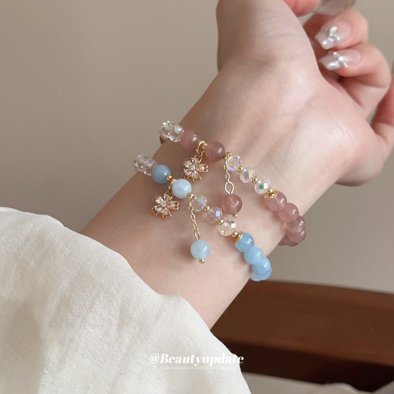 A廠【HB2684】小清新藍粉水晶花朵串珠手鍊復古個性優雅手串少女心甜美百搭手飾 24.06-2