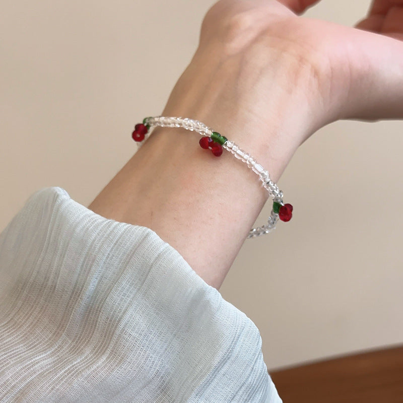 A廠【HB2714】小清新水晶櫻桃手鍊小眾時尚設計感手串夏季女高級感輕奢手飾 24.07-1