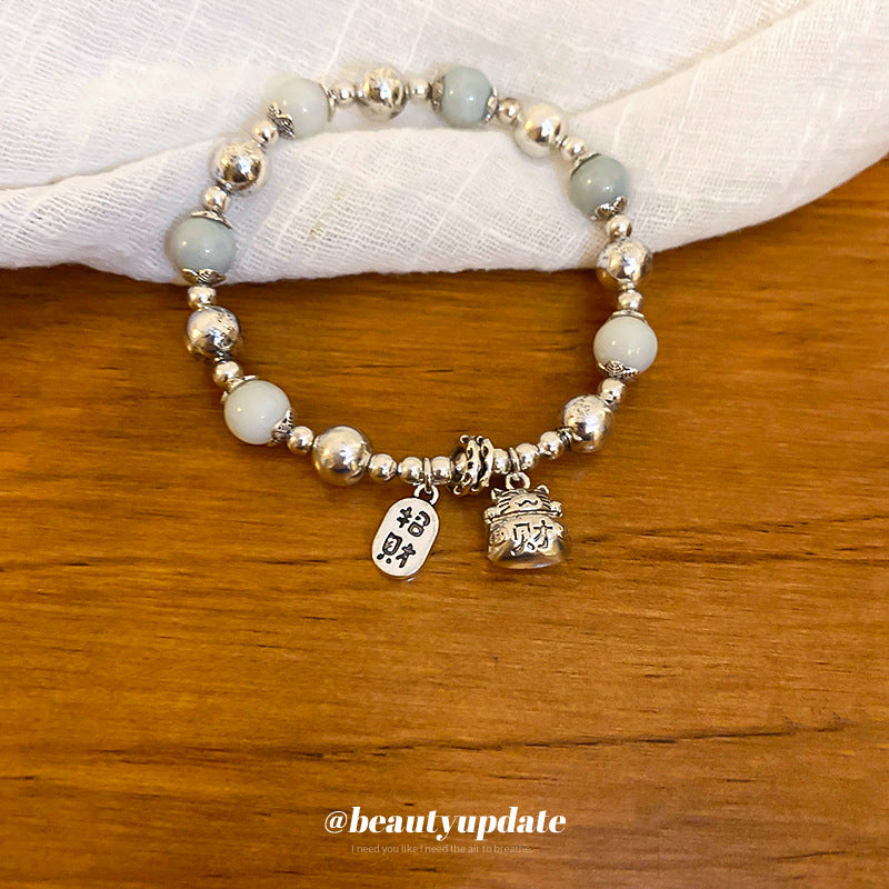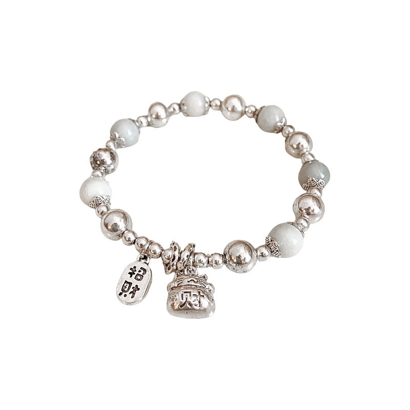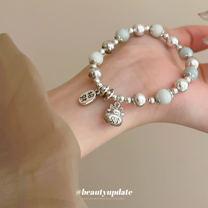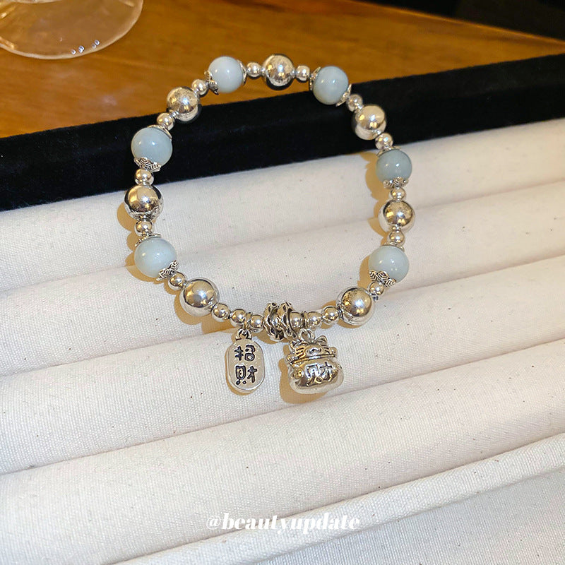A廠【HB2753】新中式銀白陶瓷串珠手鍊國潮福字招財貓手串古風小眾高級感手環女 24.06-3