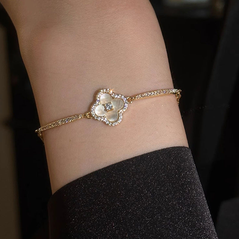 A廠【HB2979】真金電鍍鋯石貝母手鍊跨境輕奢氣質手環小眾時尚高級感手飾 24.08-2
