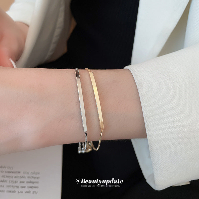 A廠【HB3105】冷淡風跨境金屬風弧形抽拉手鍊簡約時尚手環網紅輕奢高級感手飾女 24.09-2