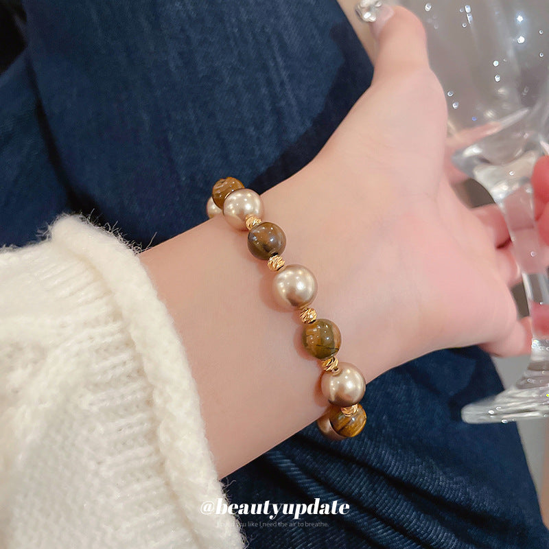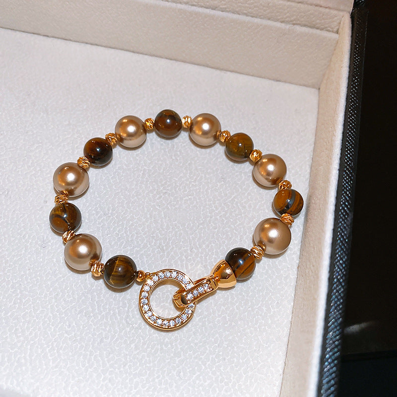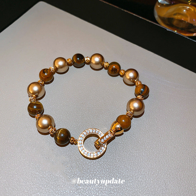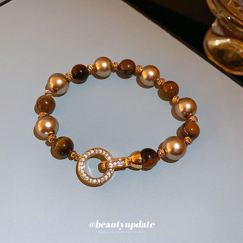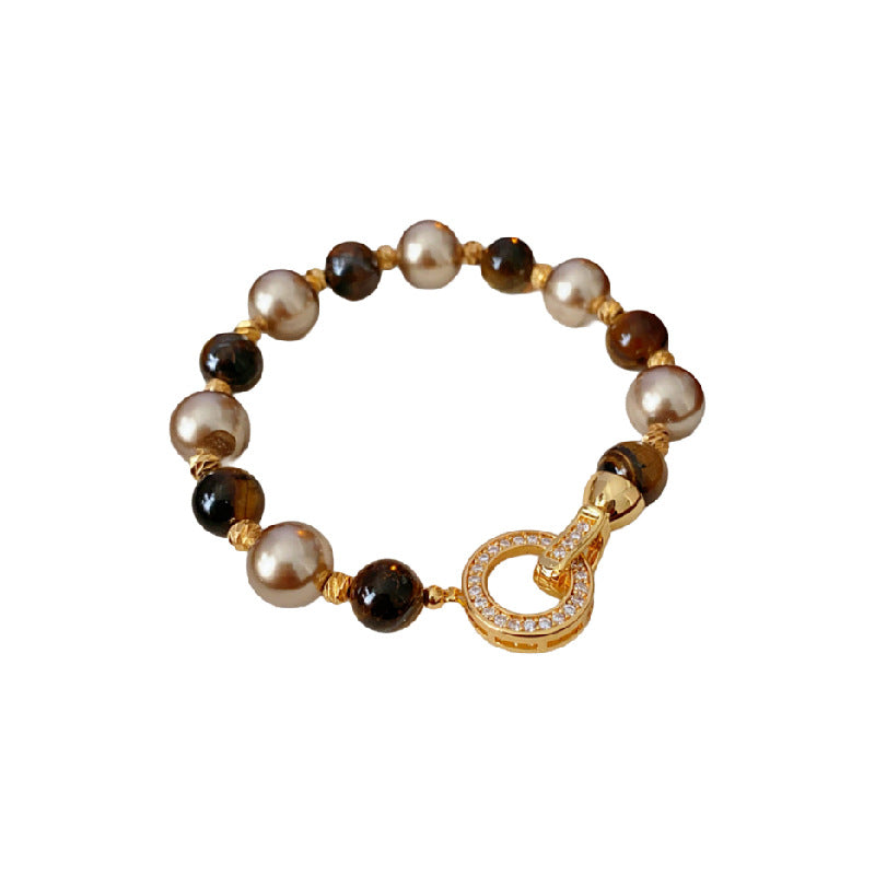 A廠【HB3255】真金電鍍鋯石圓形珍珠手鍊女復古國風新中式手串輕奢時尚手飾 24.11-2