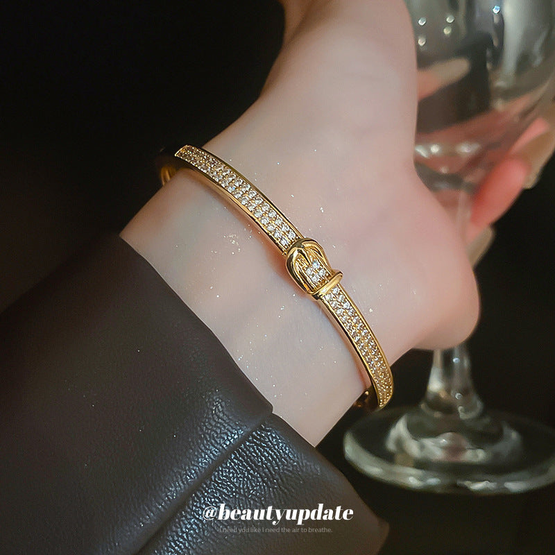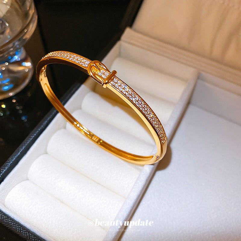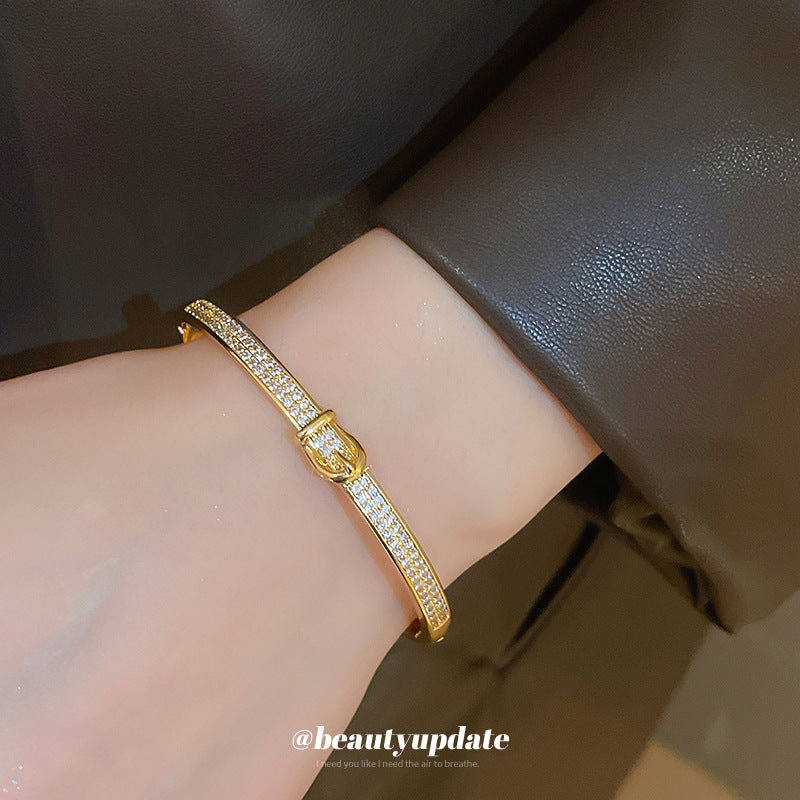 A廠【HB3265】跨境鋯石馬蹄扣手鐲歐美時尚輕奢高級感手環小眾百搭氣質手飾 24.11-3