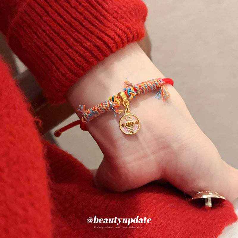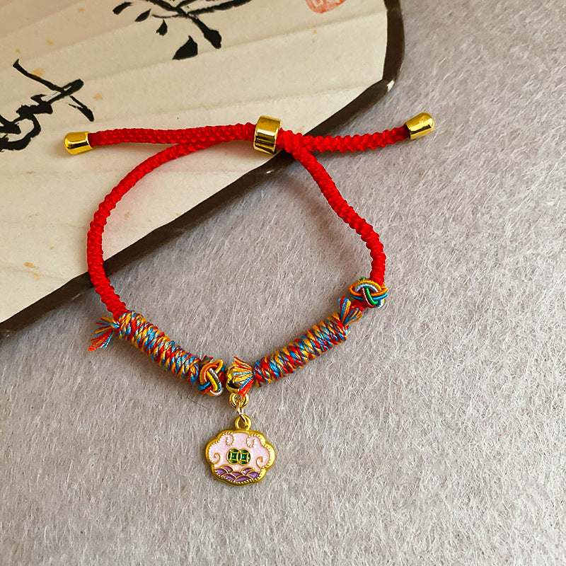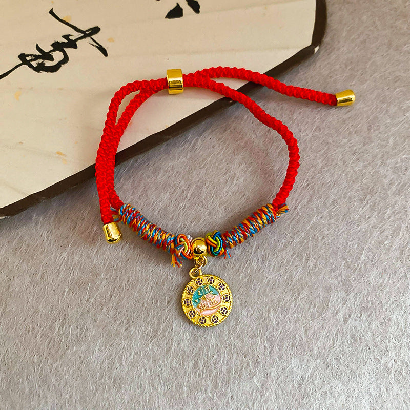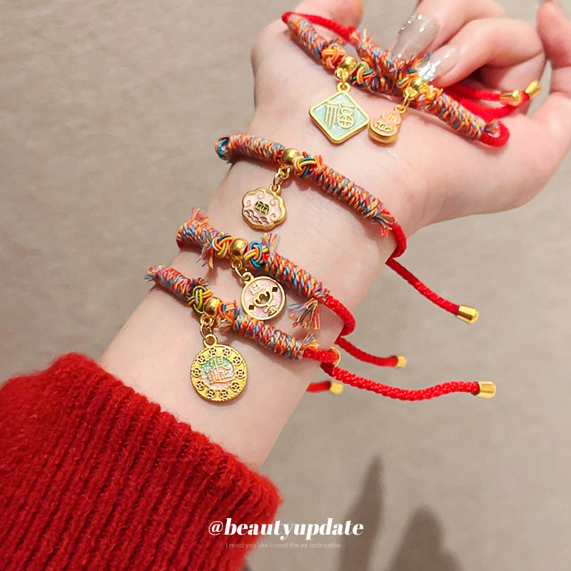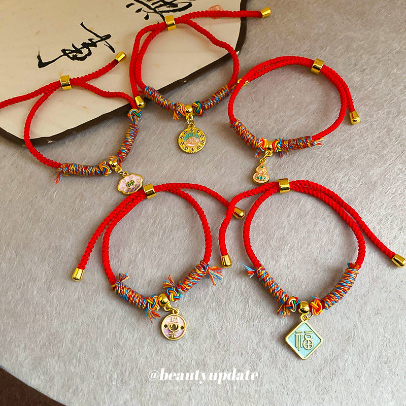 A廠【HB3335】新中式滴油菱形福字新年紅繩手鍊時尚百搭手繩手環輕奢高級感手飾 24.12-3