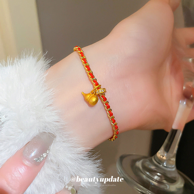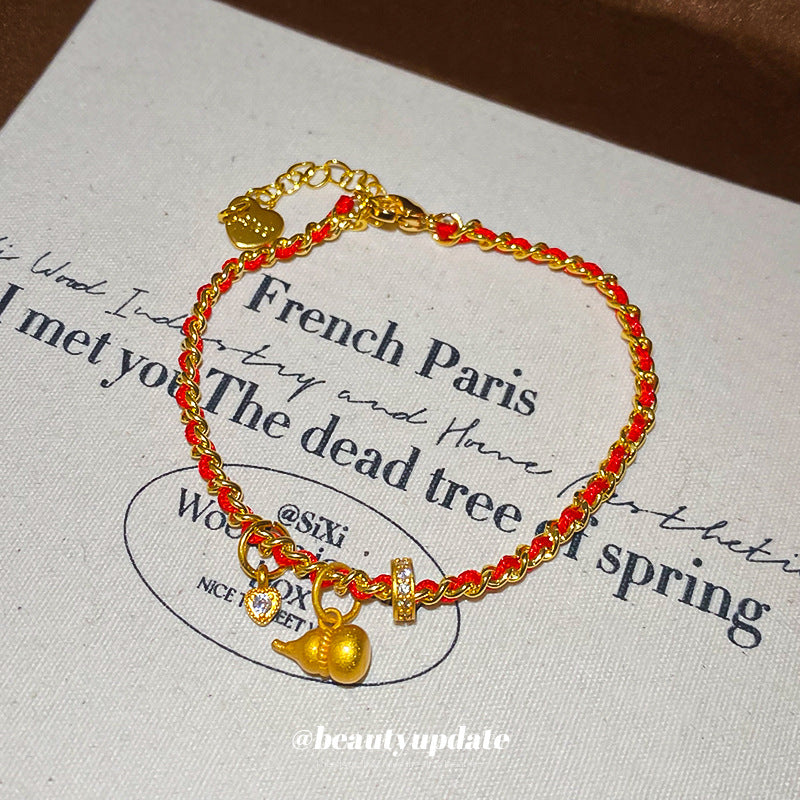 A廠【HB3372】真金電鍍鋯石愛心葫蘆手鍊女復古國潮紅色手環時尚高級感手飾 25.01-1