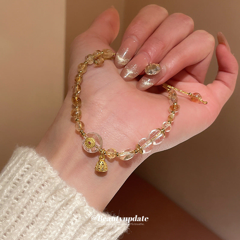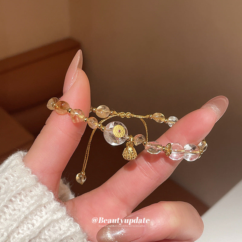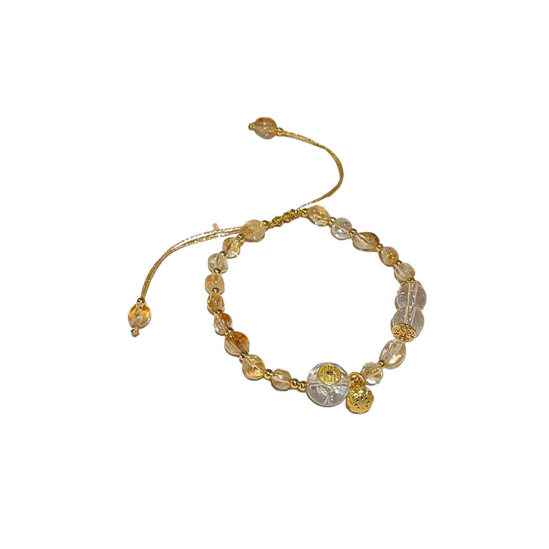 A廠【HB3433】圓形蓮蓬淺黃髮晶白水晶可調式手鍊時尚手鍊女百搭手飾輕奢高級感 25.01-3