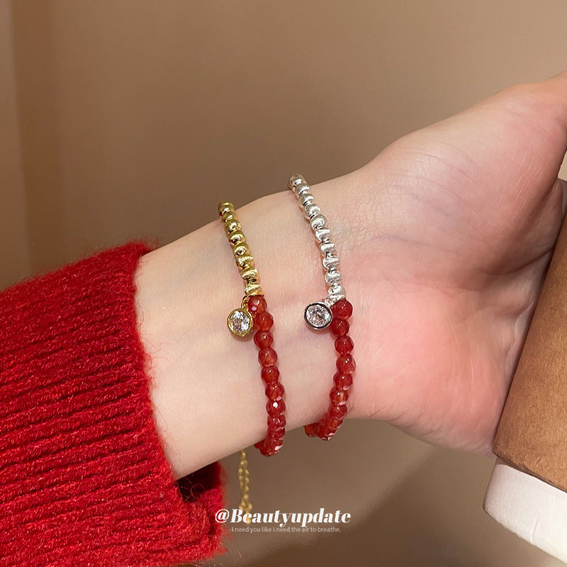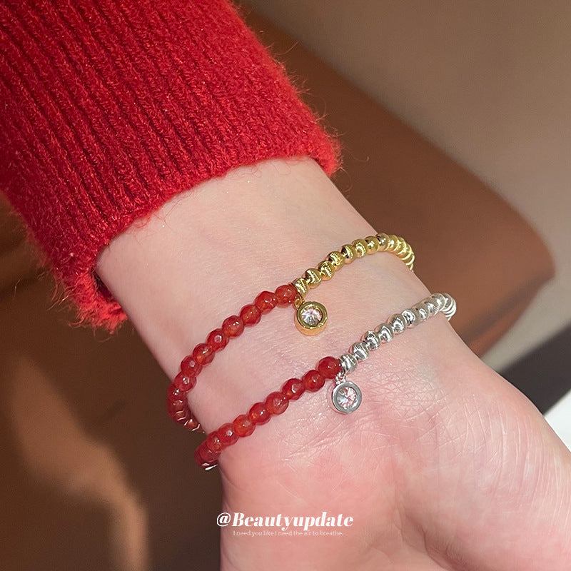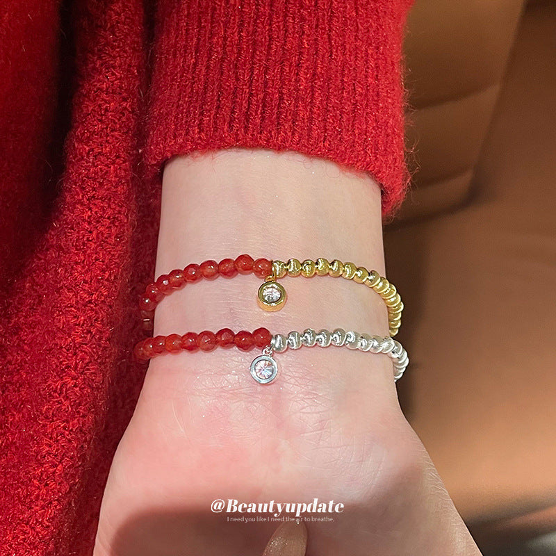 A廠【HB3442】新中式鋯石圓球瑪瑙可調式手鍊時尚百搭手環氣質手環輕奢高級感 25.01-4