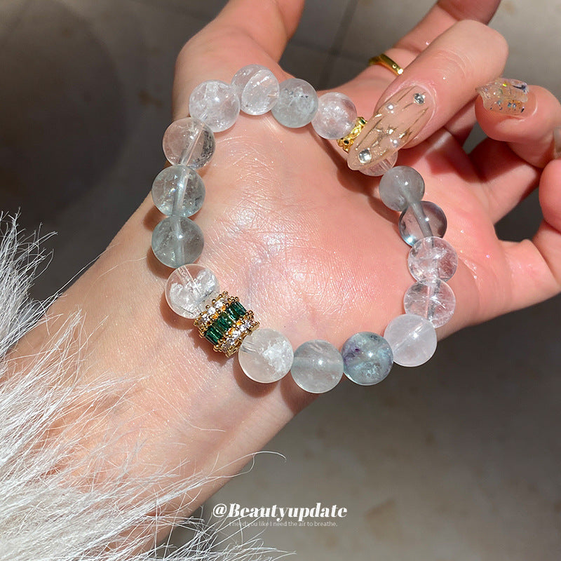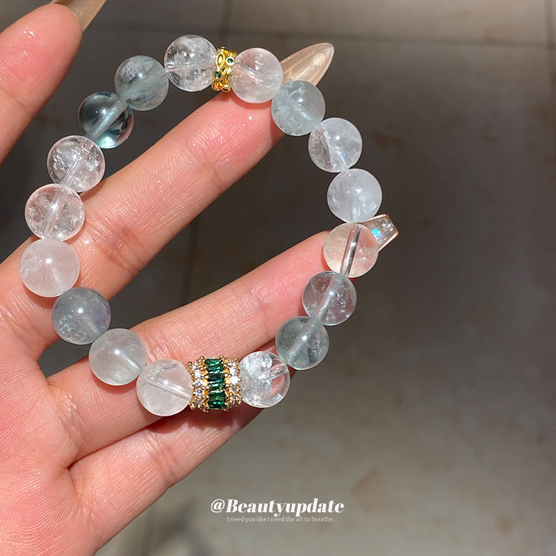 A廠【HB3453】全新中式白水晶彩螢石鋯石串珠手鍊輕奢高級感水晶手環氣質百搭手飾 25.01-4