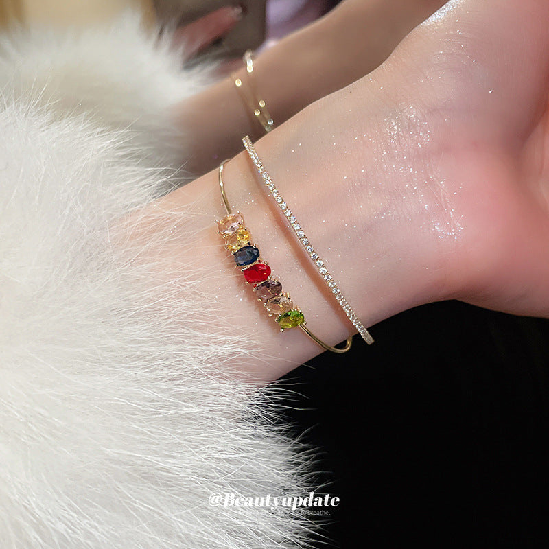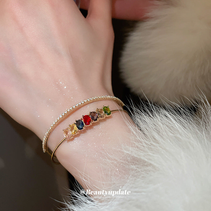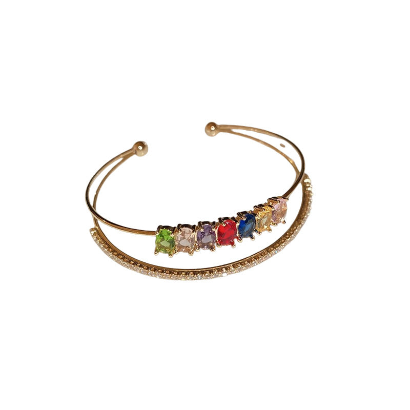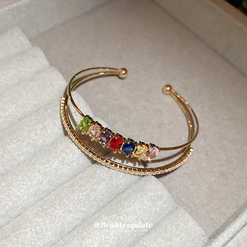 A廠【HB3470】法式雙層鋯石開口手鐲女時尚百搭個性手環輕奢復古設計感手飾 25.01-4