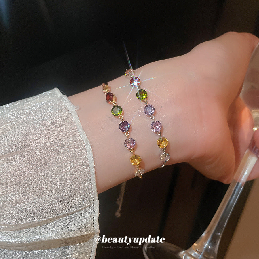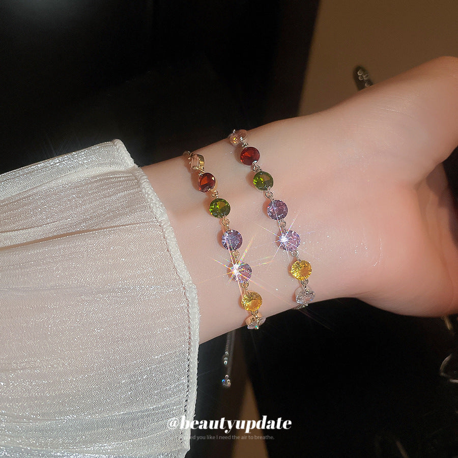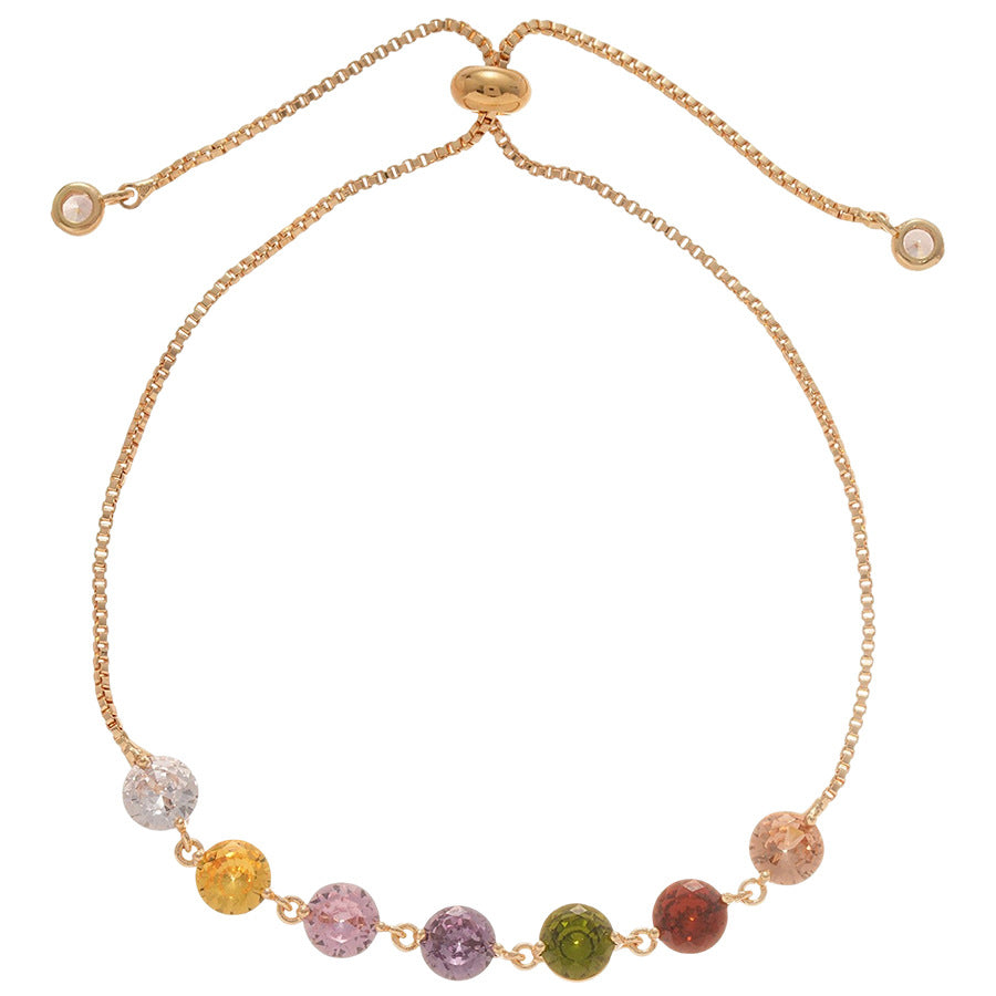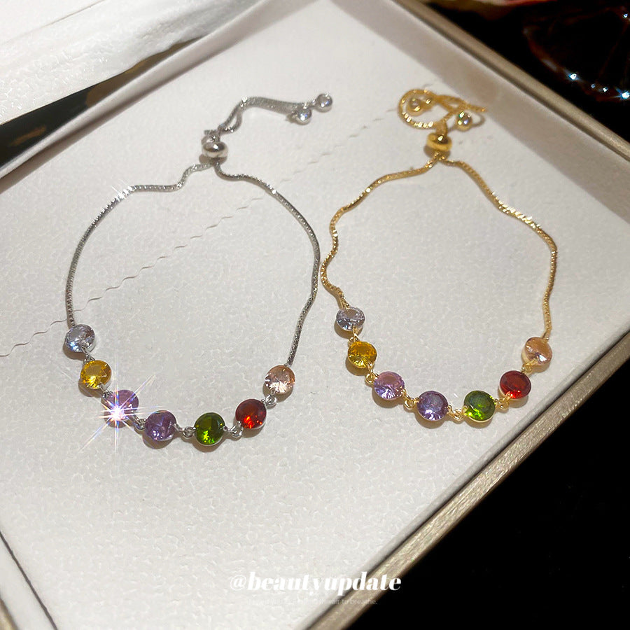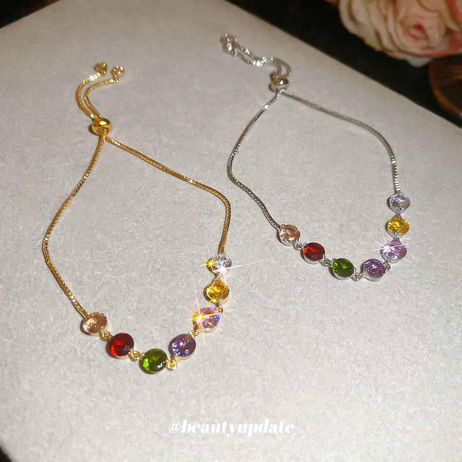 A廠【HB3626】鋯石彩色圓形抽拉式手鍊輕奢高級感手環甜美小眾氣質時尚百搭手飾 25.03-4