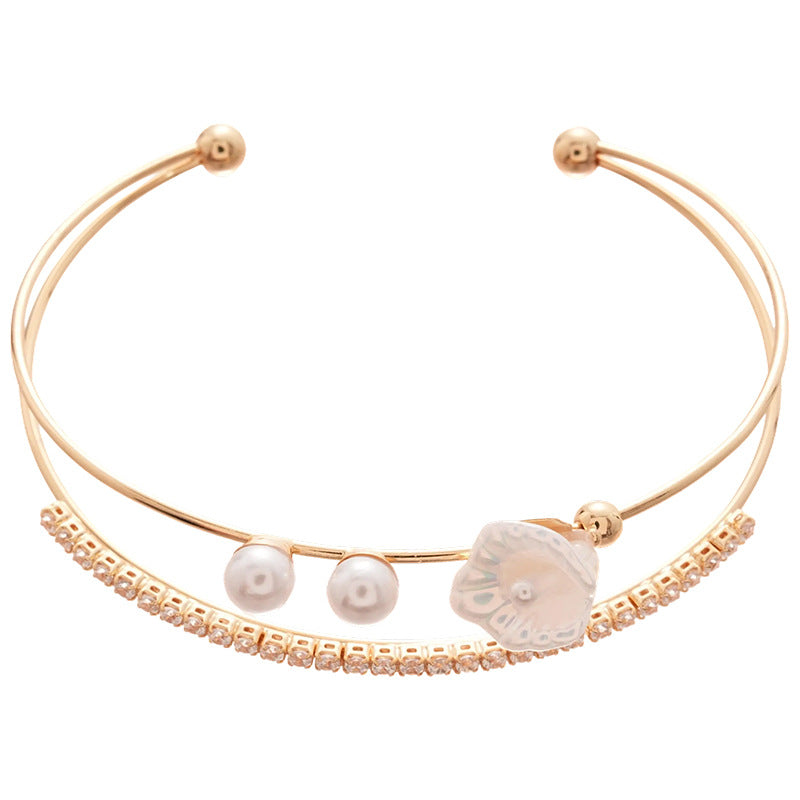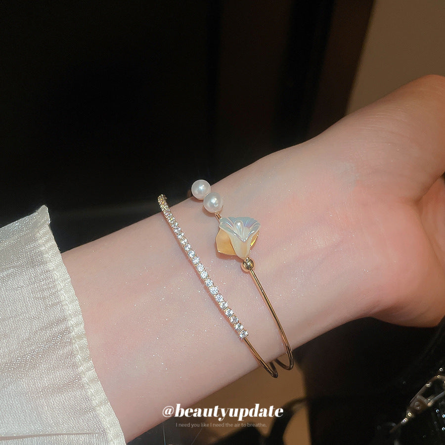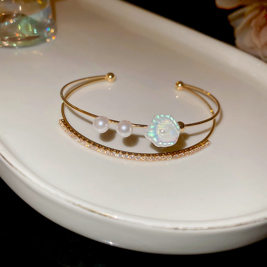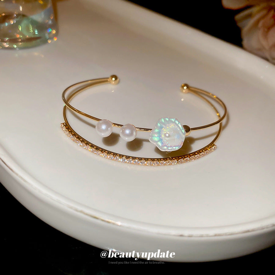 A廠【HB3664】鋯石雙層花朵珍珠開口手鐲2025小眾百搭手環輕奢高級感手飾 25.04-1