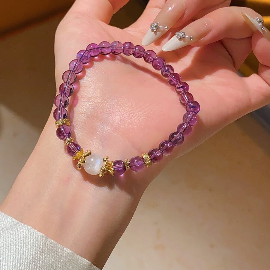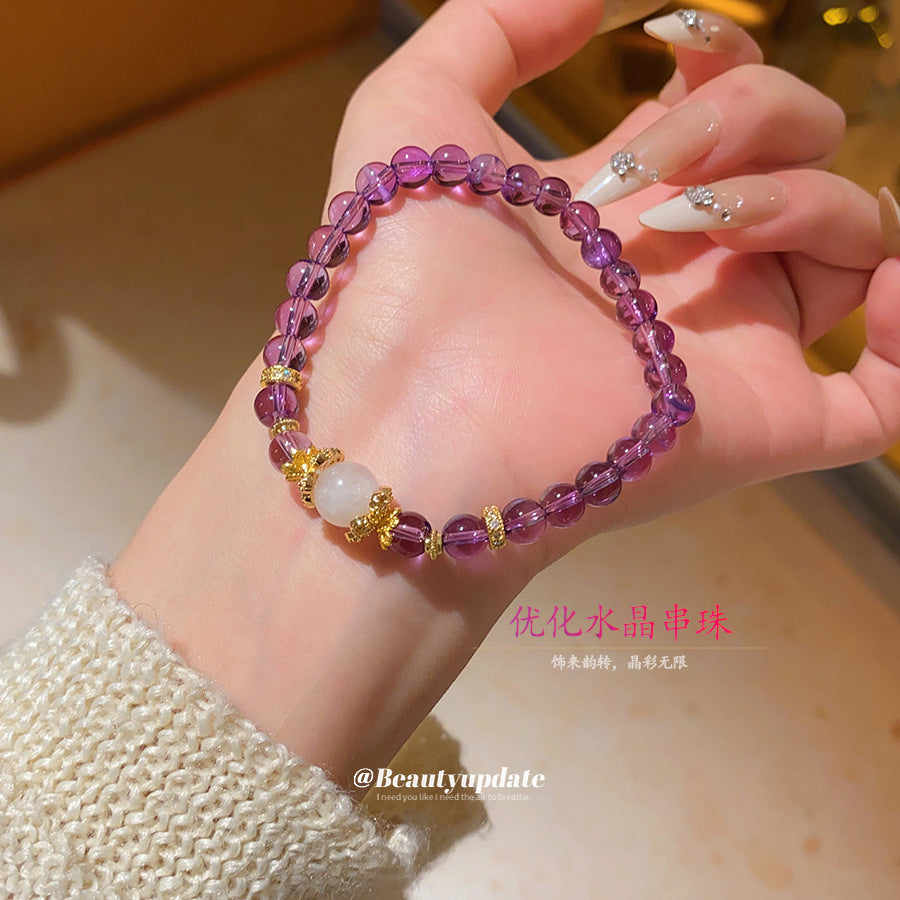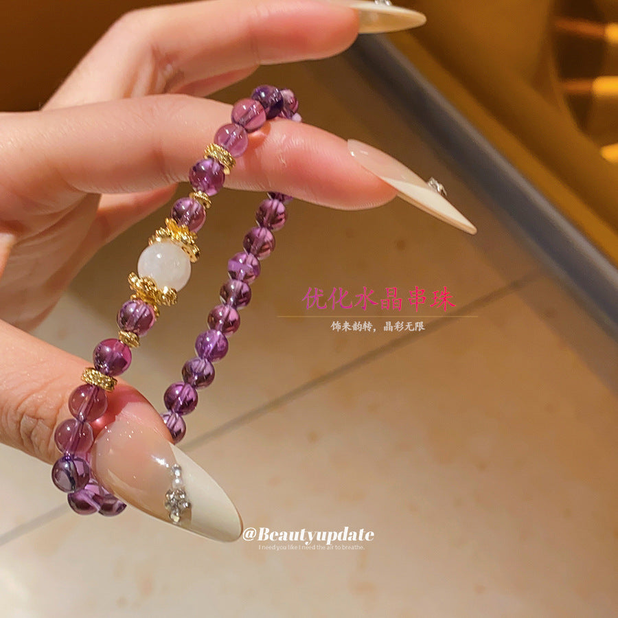 A廠【HB4084】優化紫水晶串珠鋯石手鍊復古新中式文玩手串簡約時尚百搭手飾小眾 25.07-2