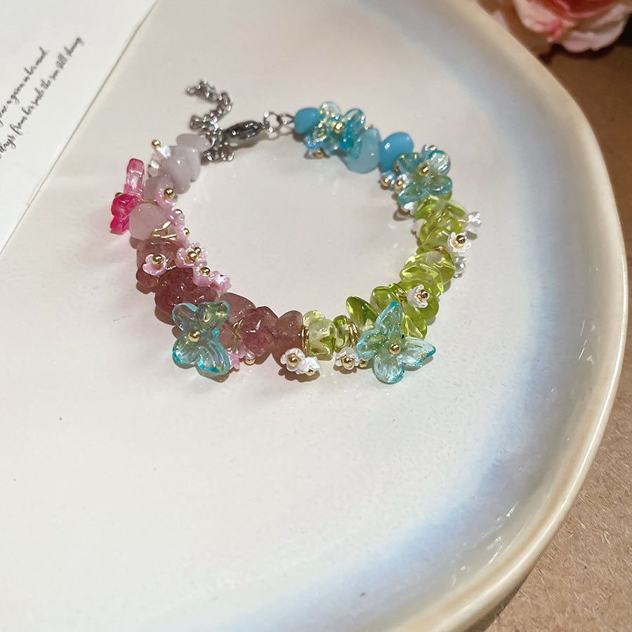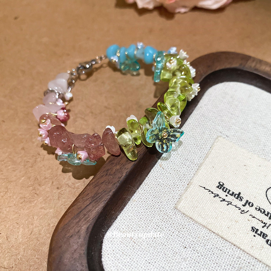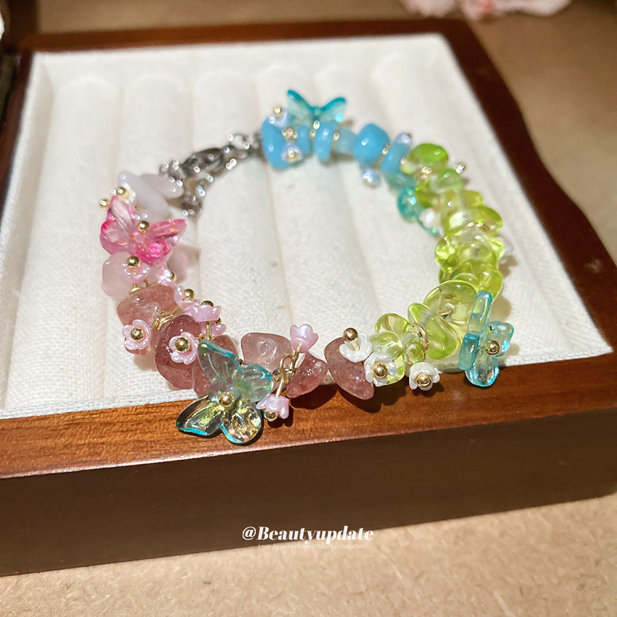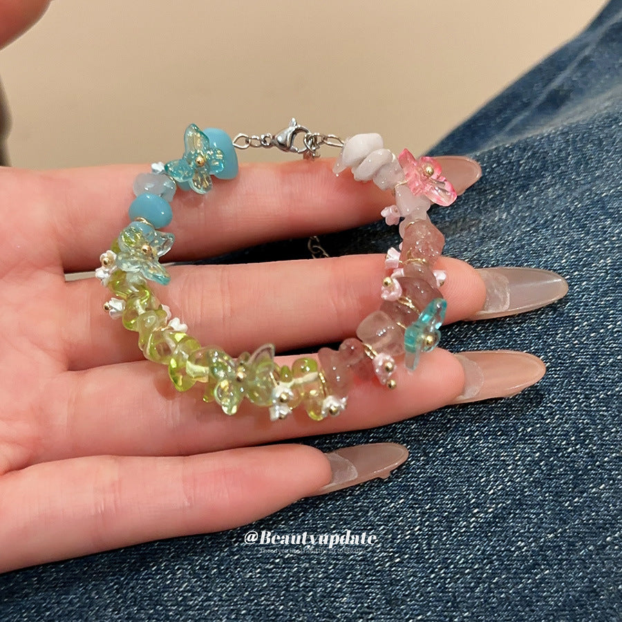 A廠【HB4117】天然石樹脂蝴蝶花朵手鍊夏日小清新甜美氣質手飾小眾設計感飾品女 25.06-4