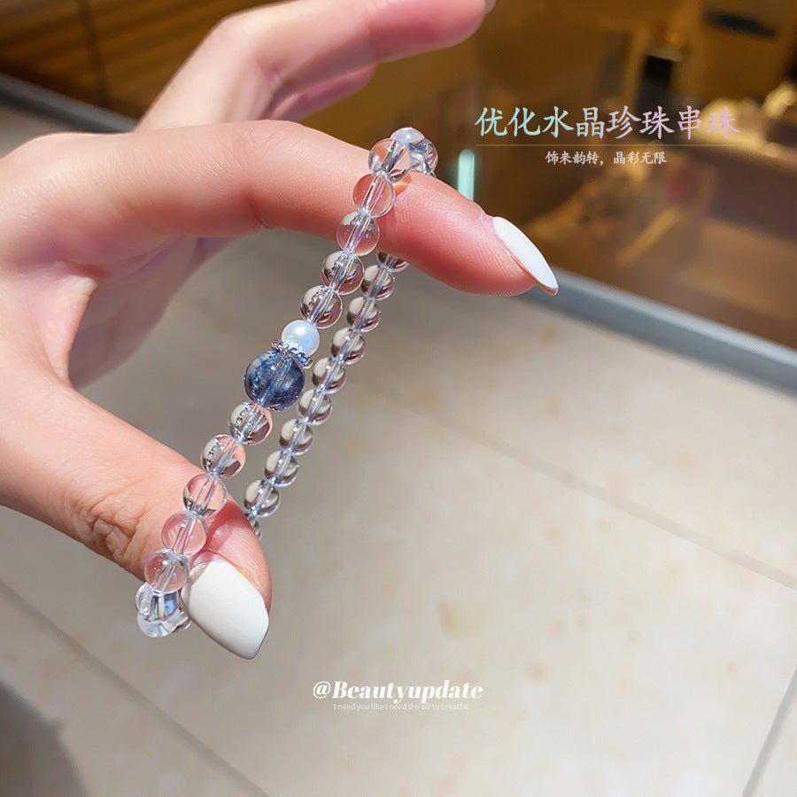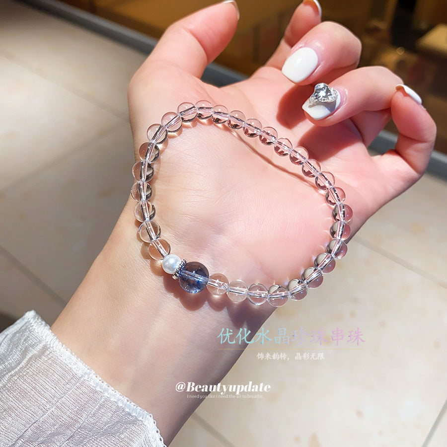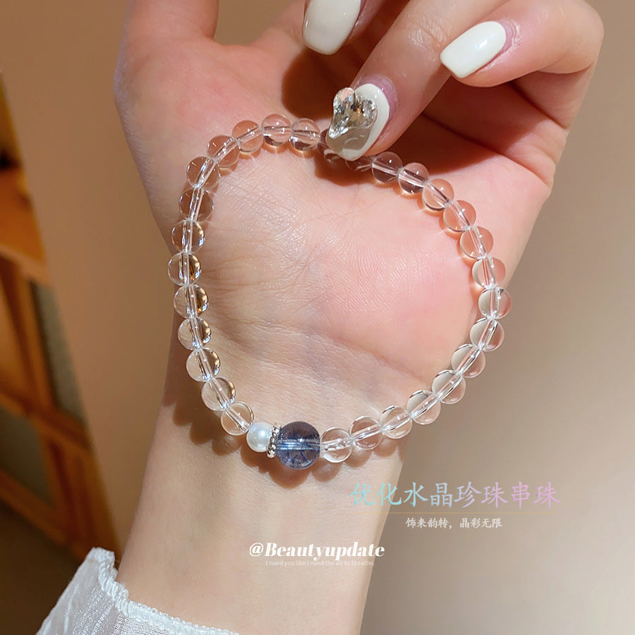A廠【HB4374】優化白水晶圓形珍珠串珠手鍊新中式時尚手串手環小眾設計感手飾女 25.08-2