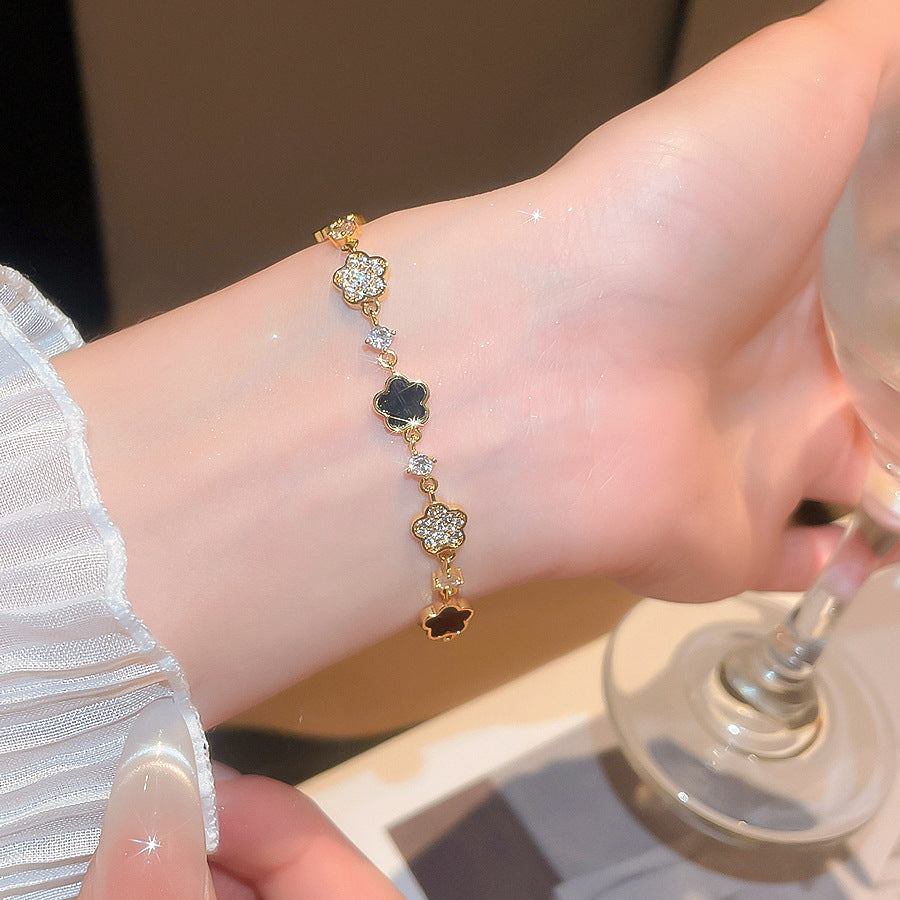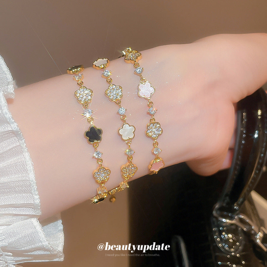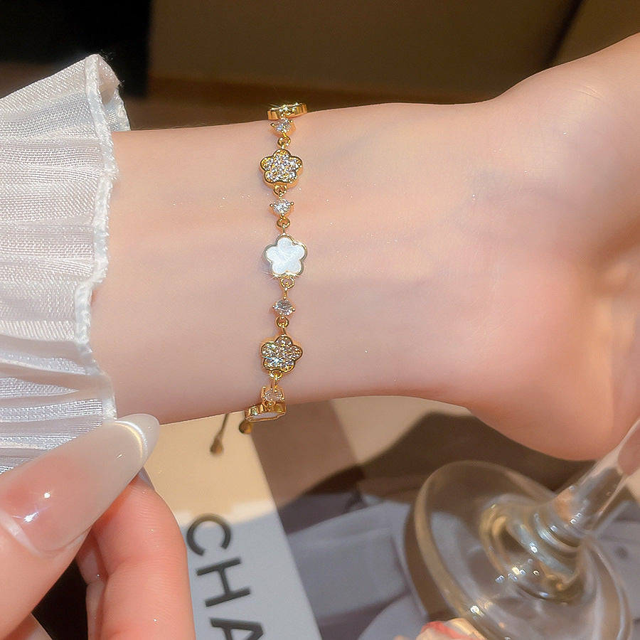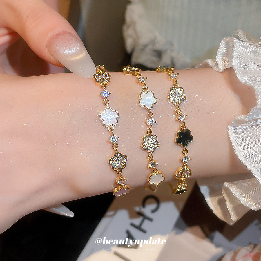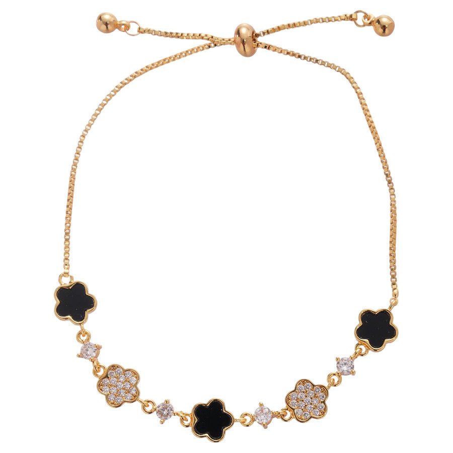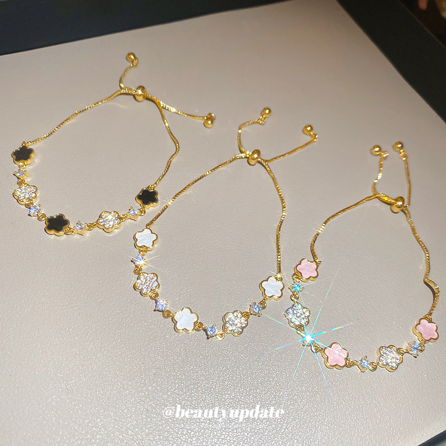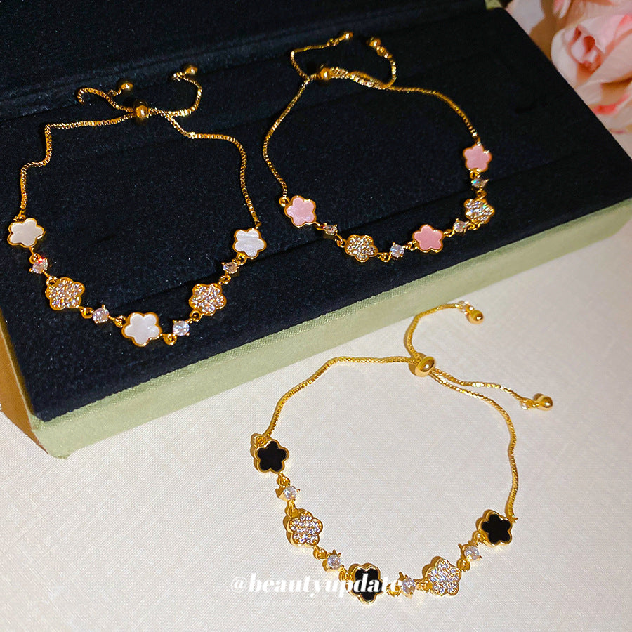A廠【HB4399】醋酸板鋯石花朵吊墜抽拉式手鍊歐美優雅氣質手環輕奢高級感手飾女 25.08-1